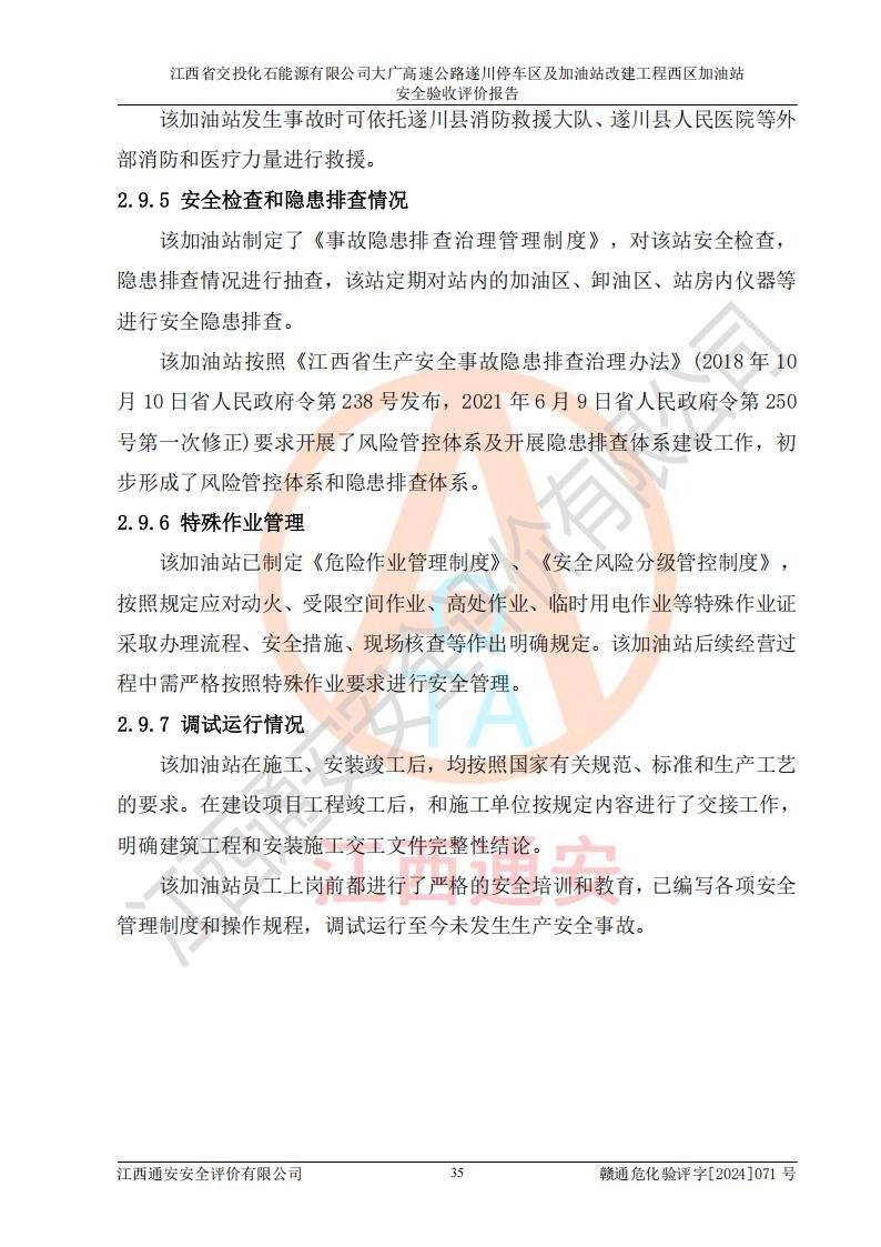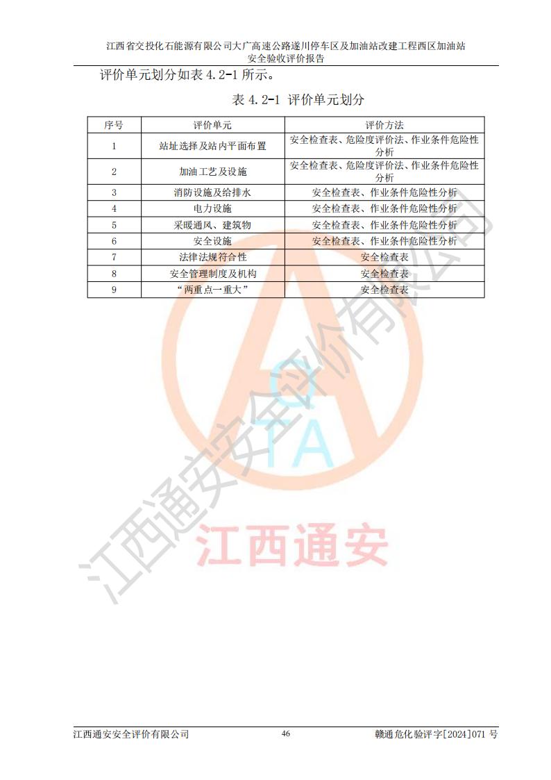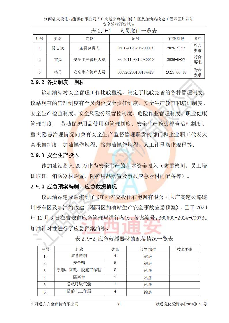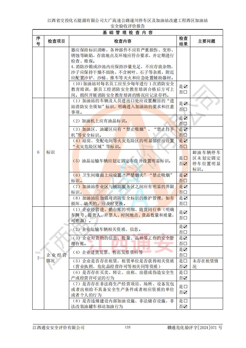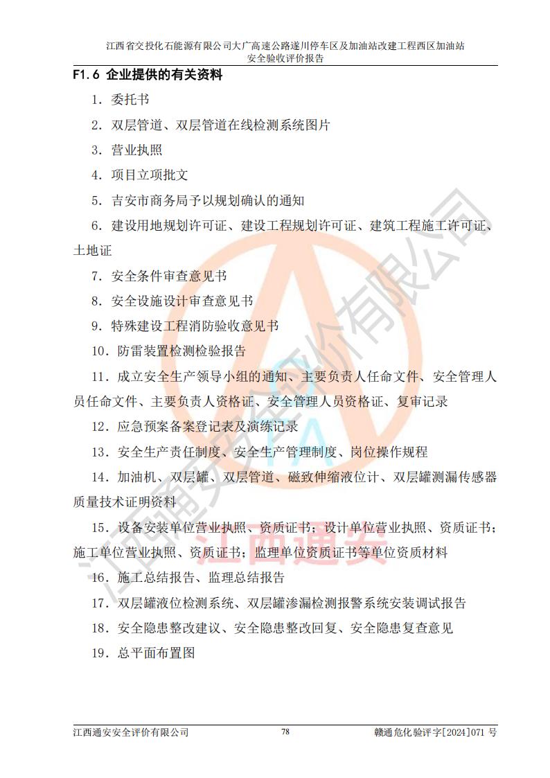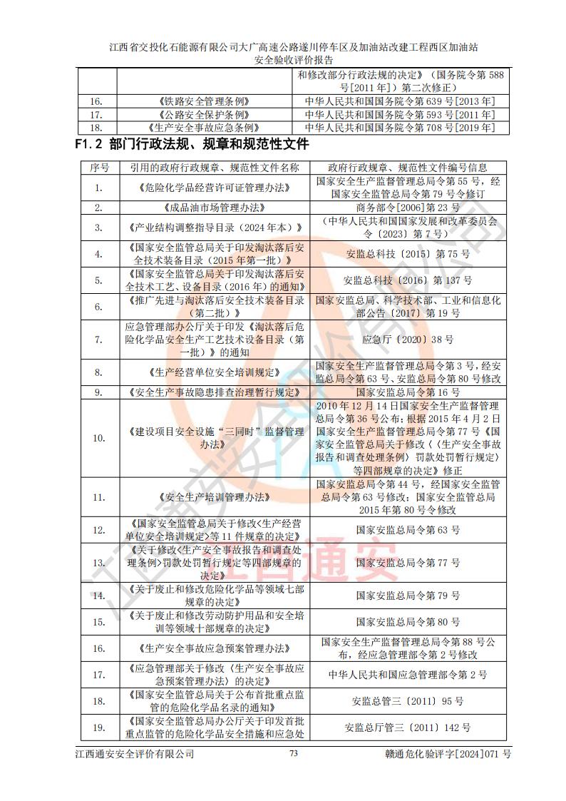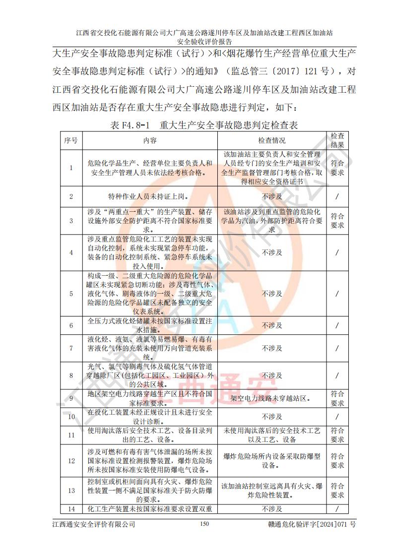 評(píng)價(jià)報(bào)告名稱 | 江西省交投化石能源有限公司大廣高速公路遂川停車區(qū)及加油站改建工程西區(qū)加油站安全驗(yàn)收評(píng)價(jià)報(bào)告 | |||