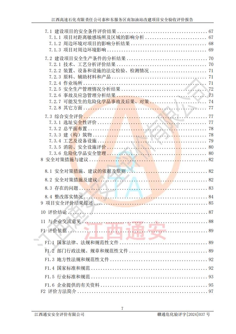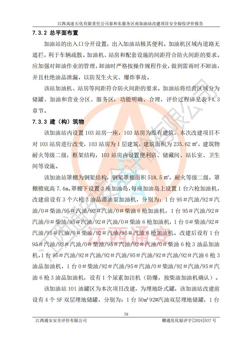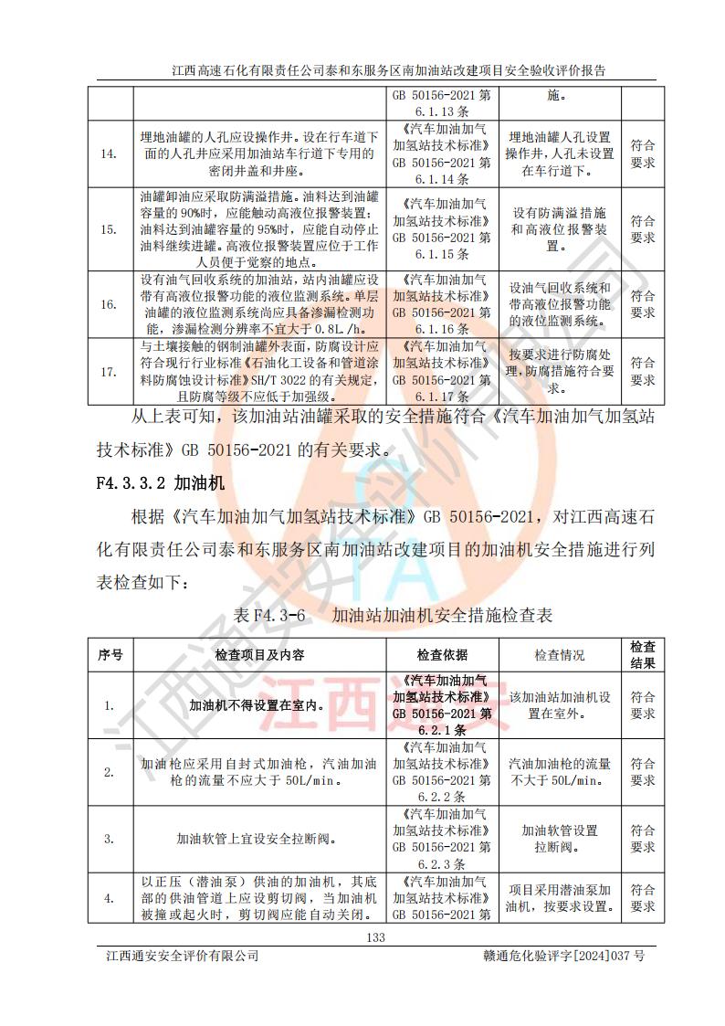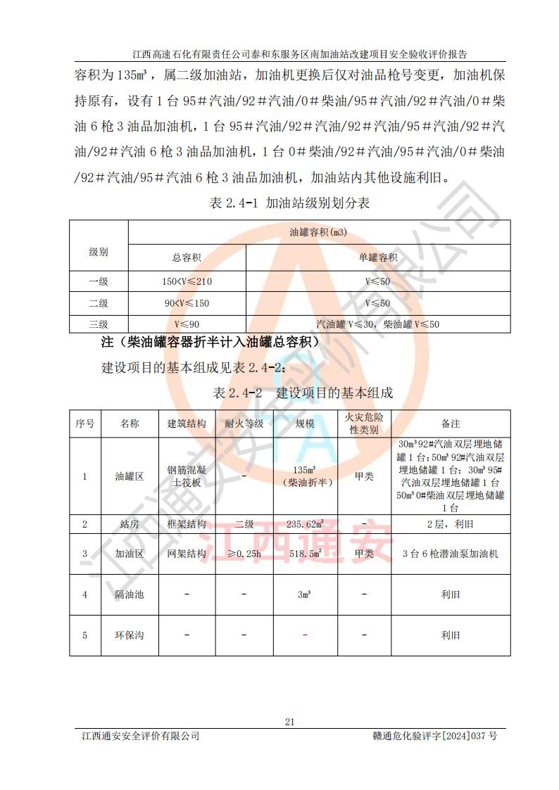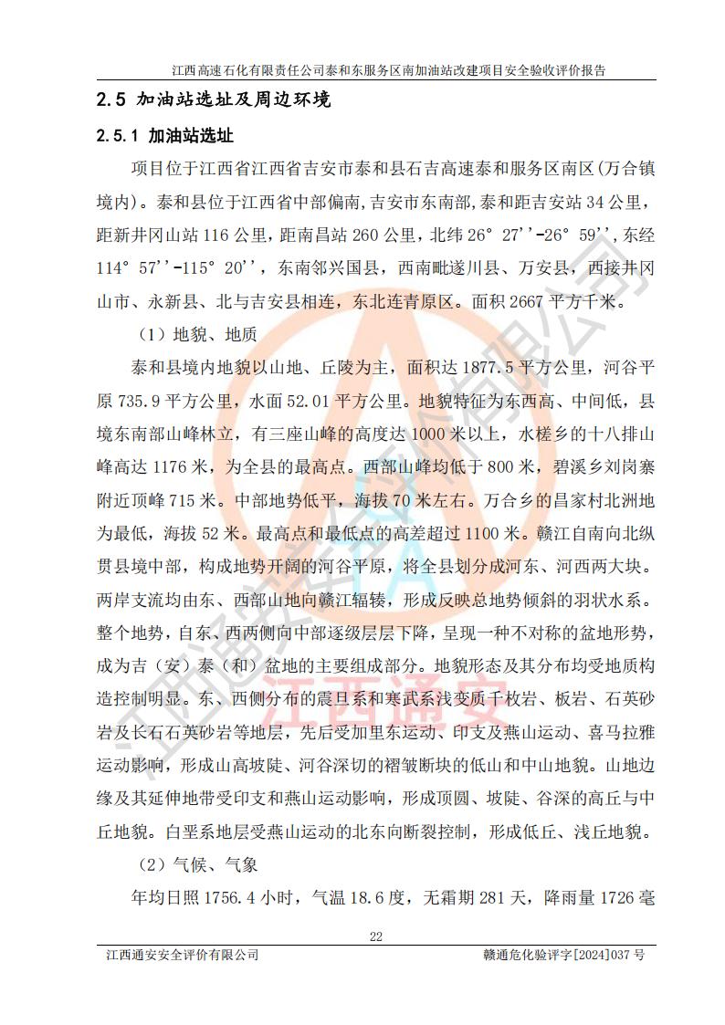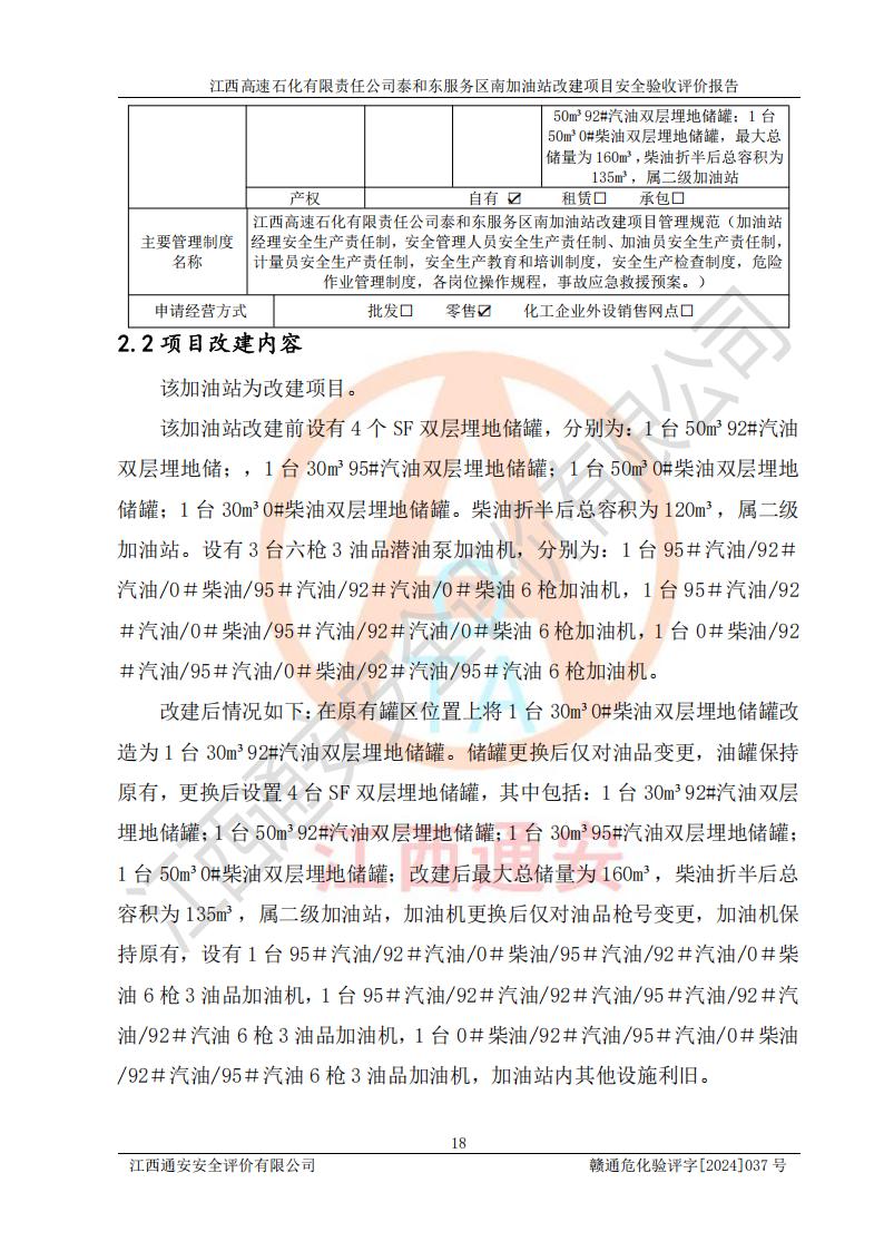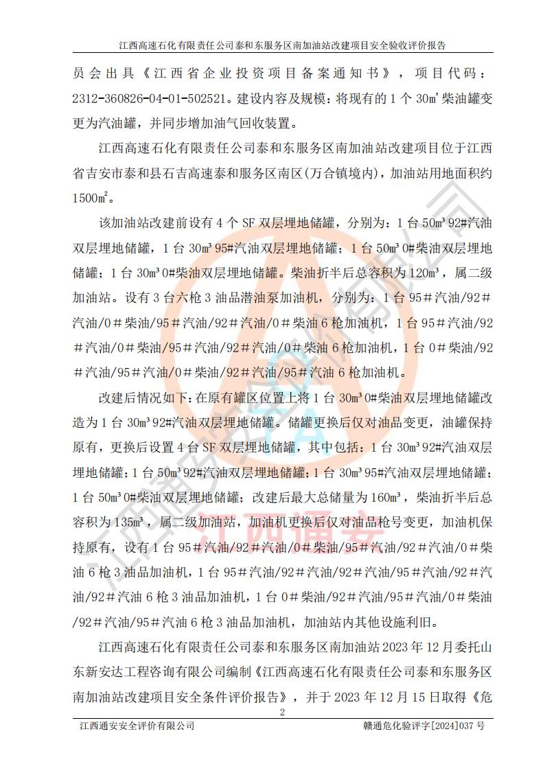 項目名稱 | 江西高速石化有限責(zé)任公司泰和東服務(wù)區(qū)南加油站改建項目安全驗收評價報告 | ||||