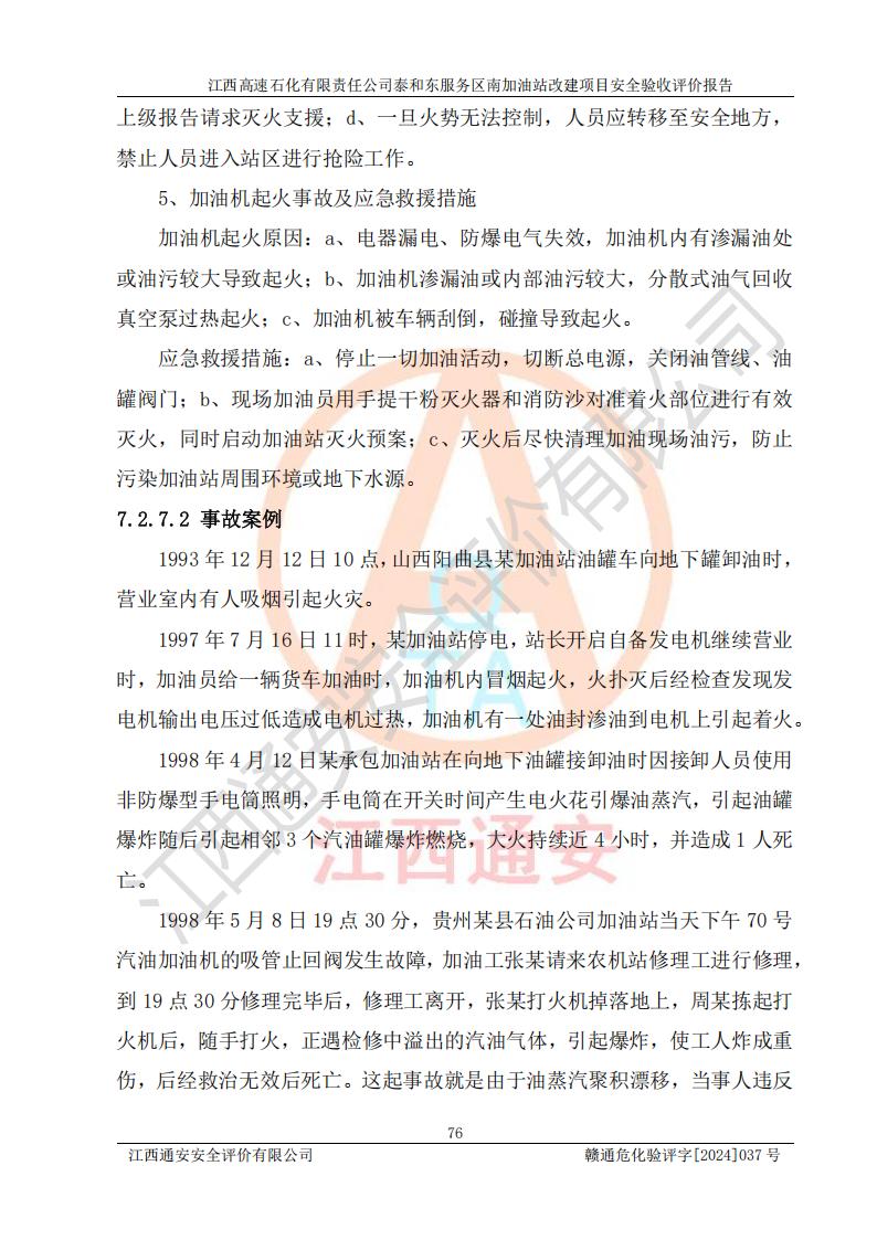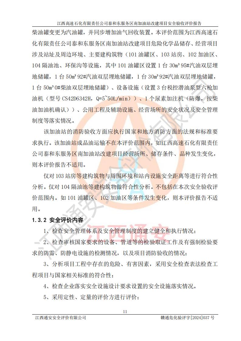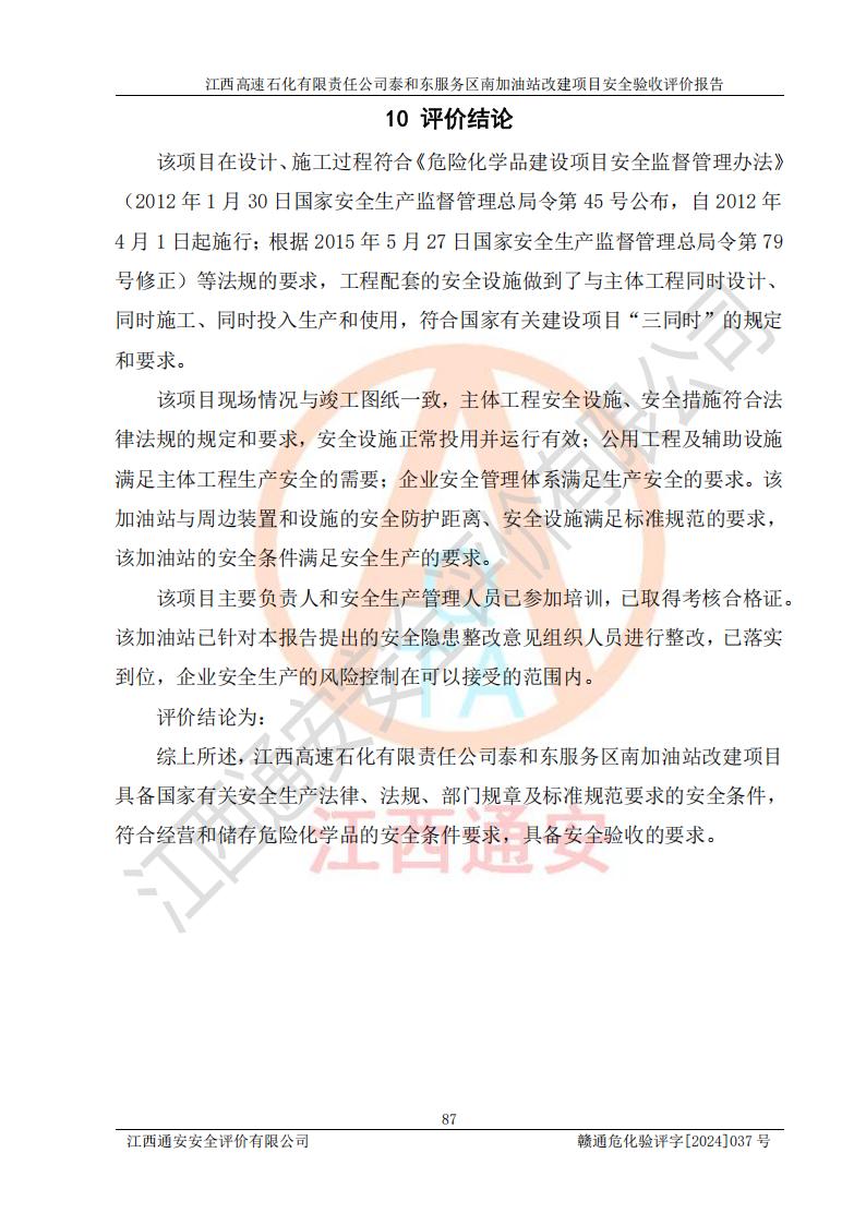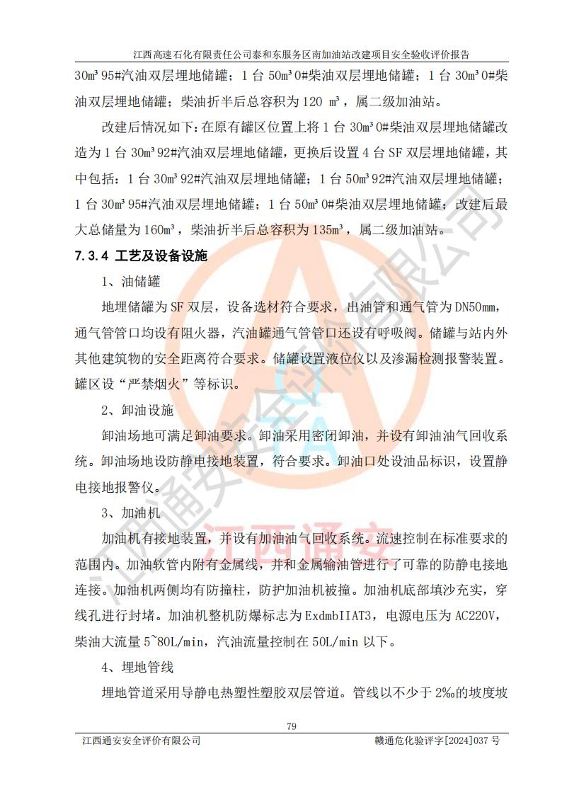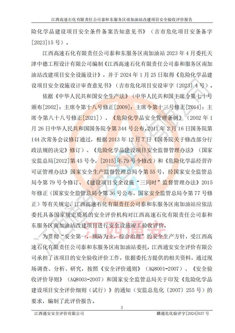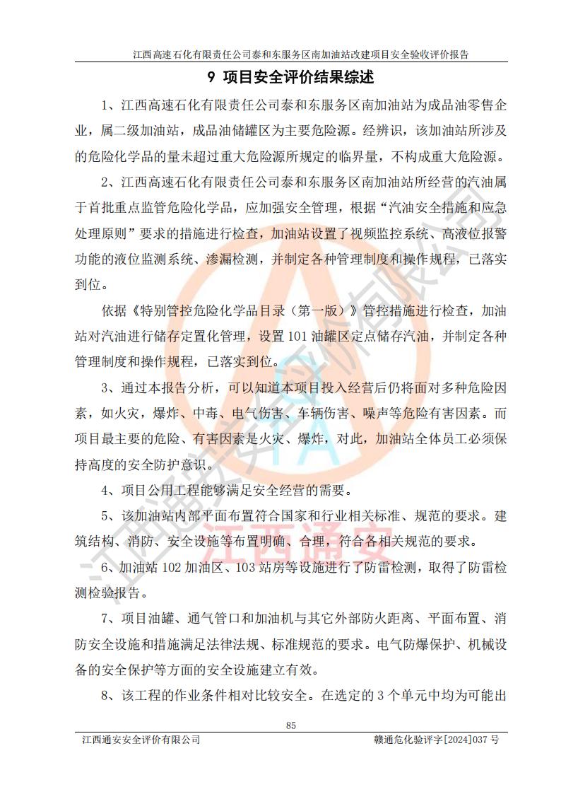 項目名稱 | 江西高速石化有限責(zé)任公司泰和東服務(wù)區(qū)南加油站改建項目安全驗收評價報告 | ||||