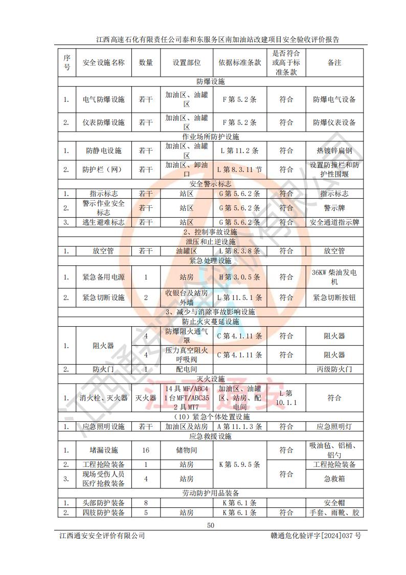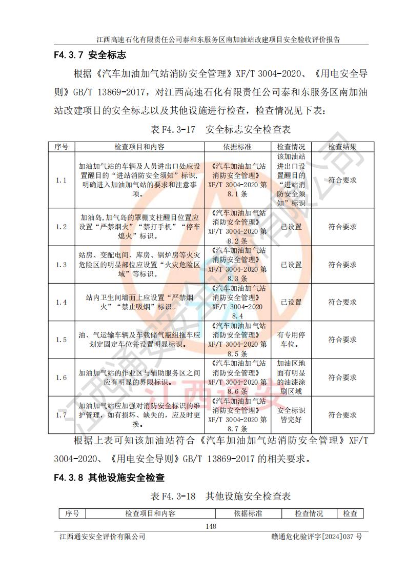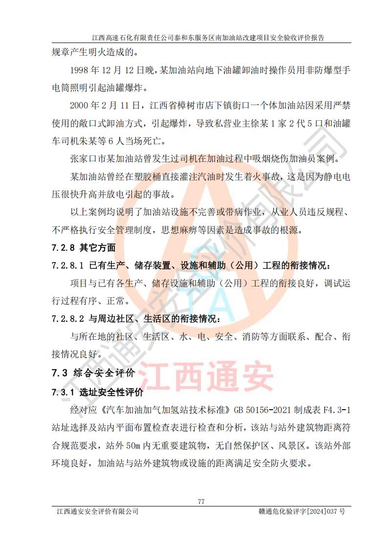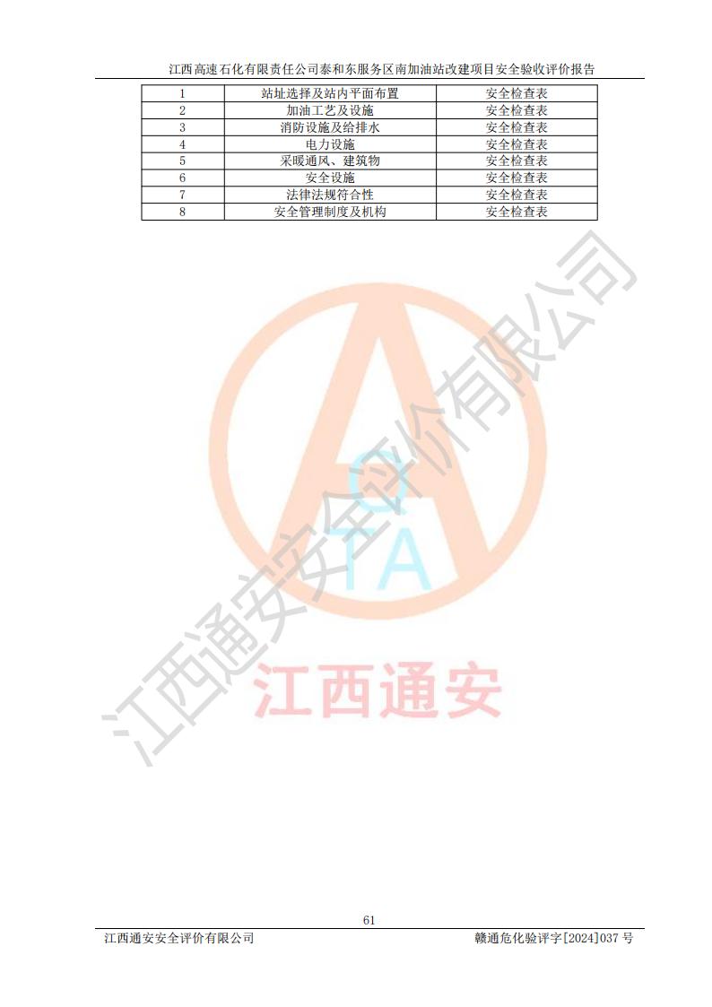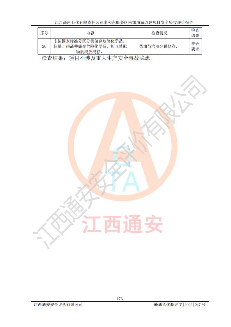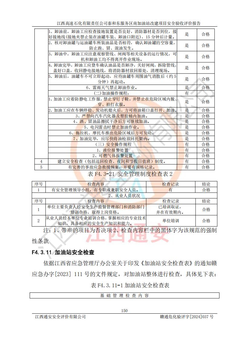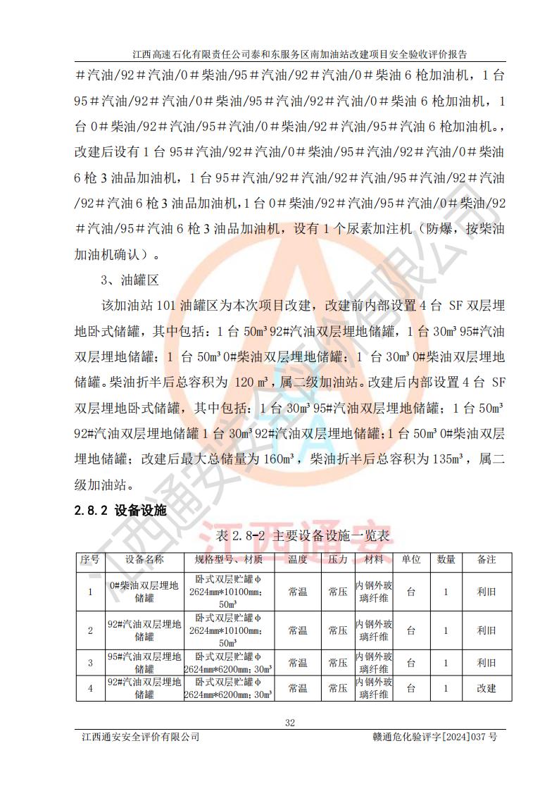 項目名稱 | 江西高速石化有限責(zé)任公司泰和東服務(wù)區(qū)南加油站改建項目安全驗收評價報告 | ||||