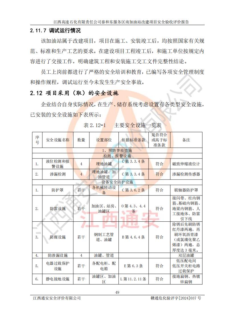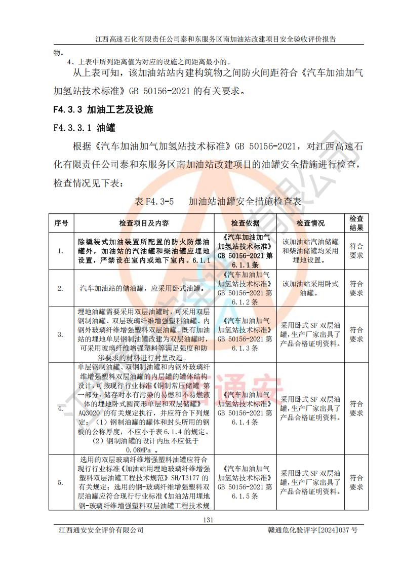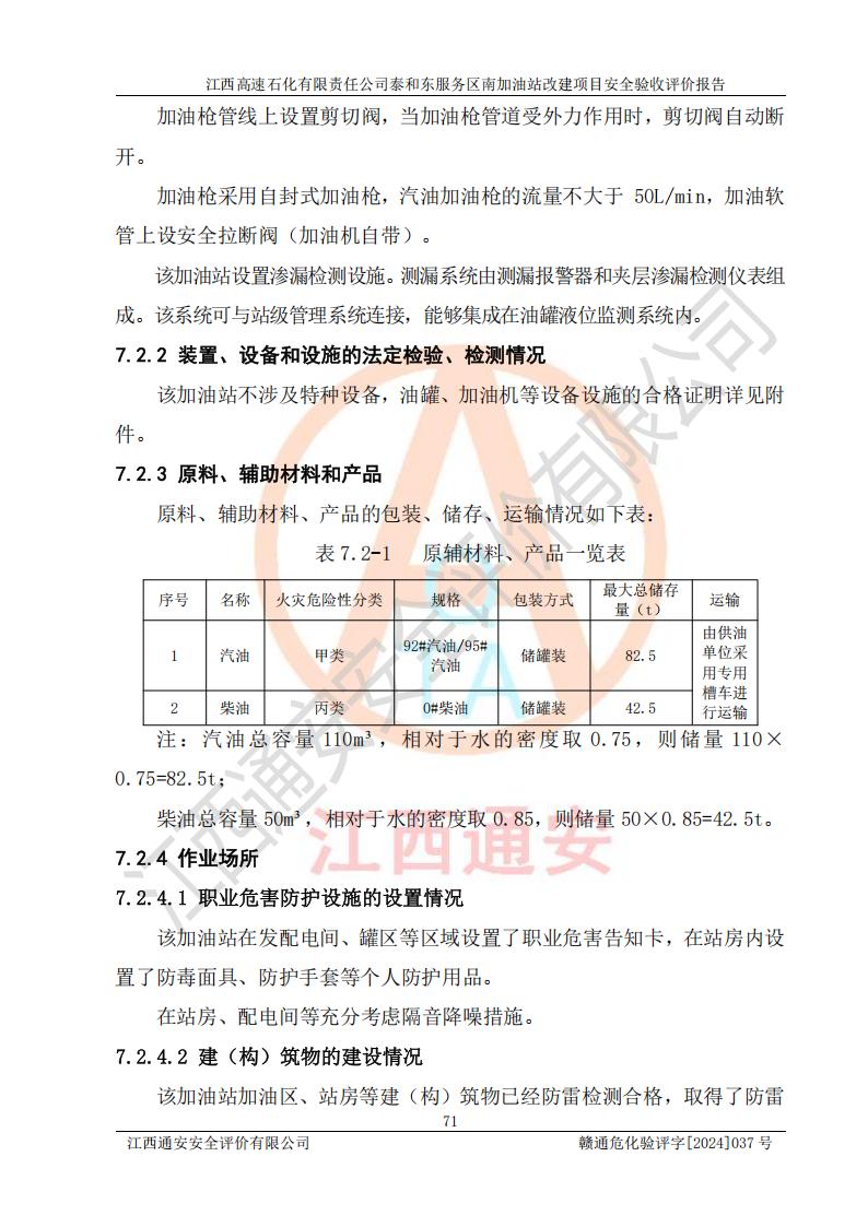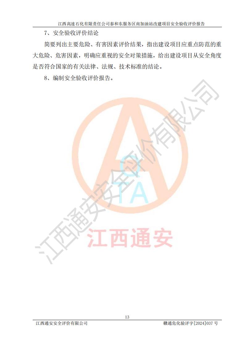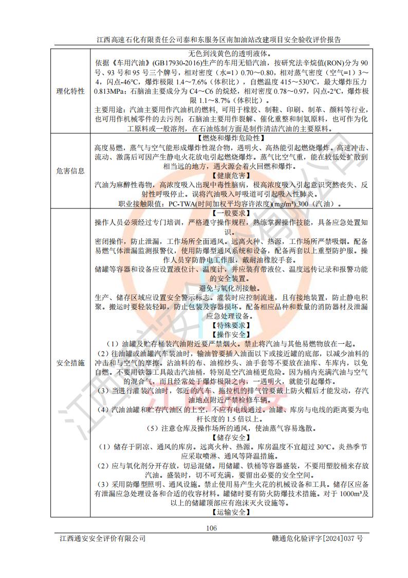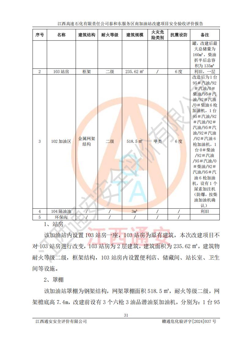 項目名稱 | 江西高速石化有限責(zé)任公司泰和東服務(wù)區(qū)南加油站改建項目安全驗收評價報告 | ||||