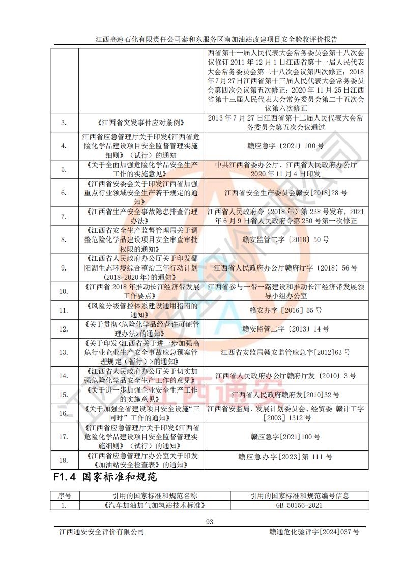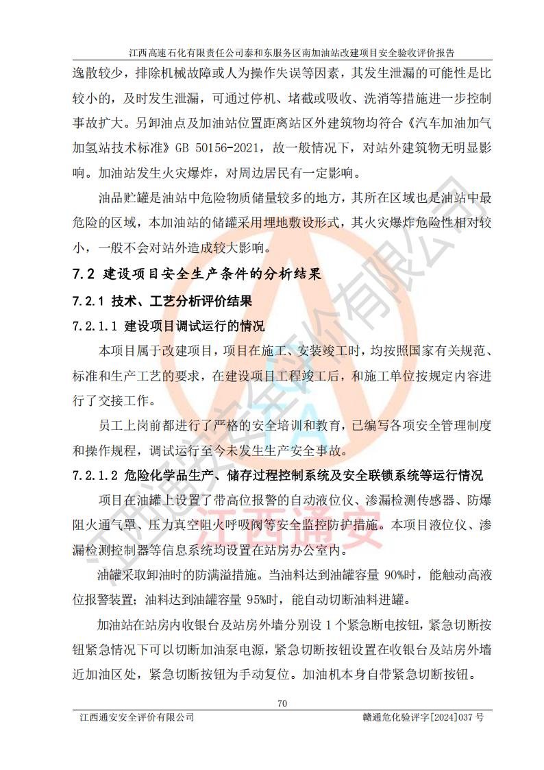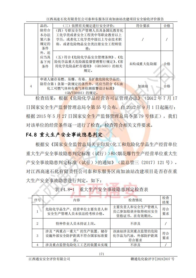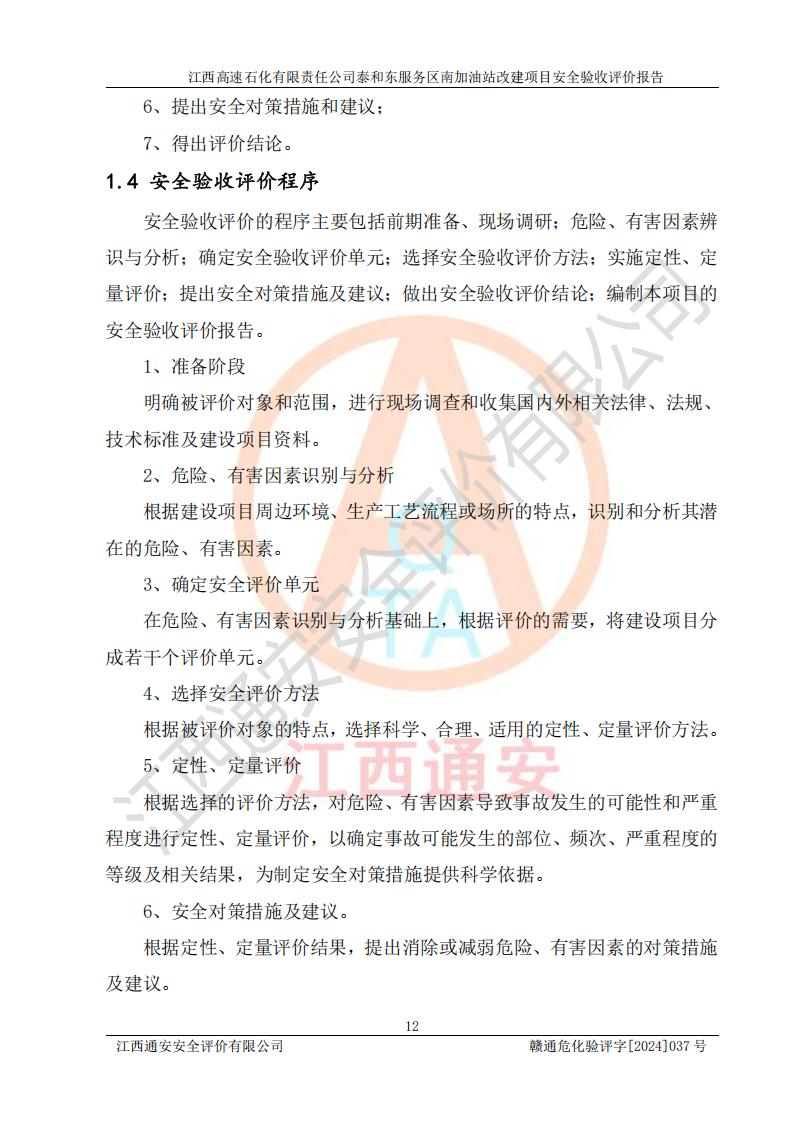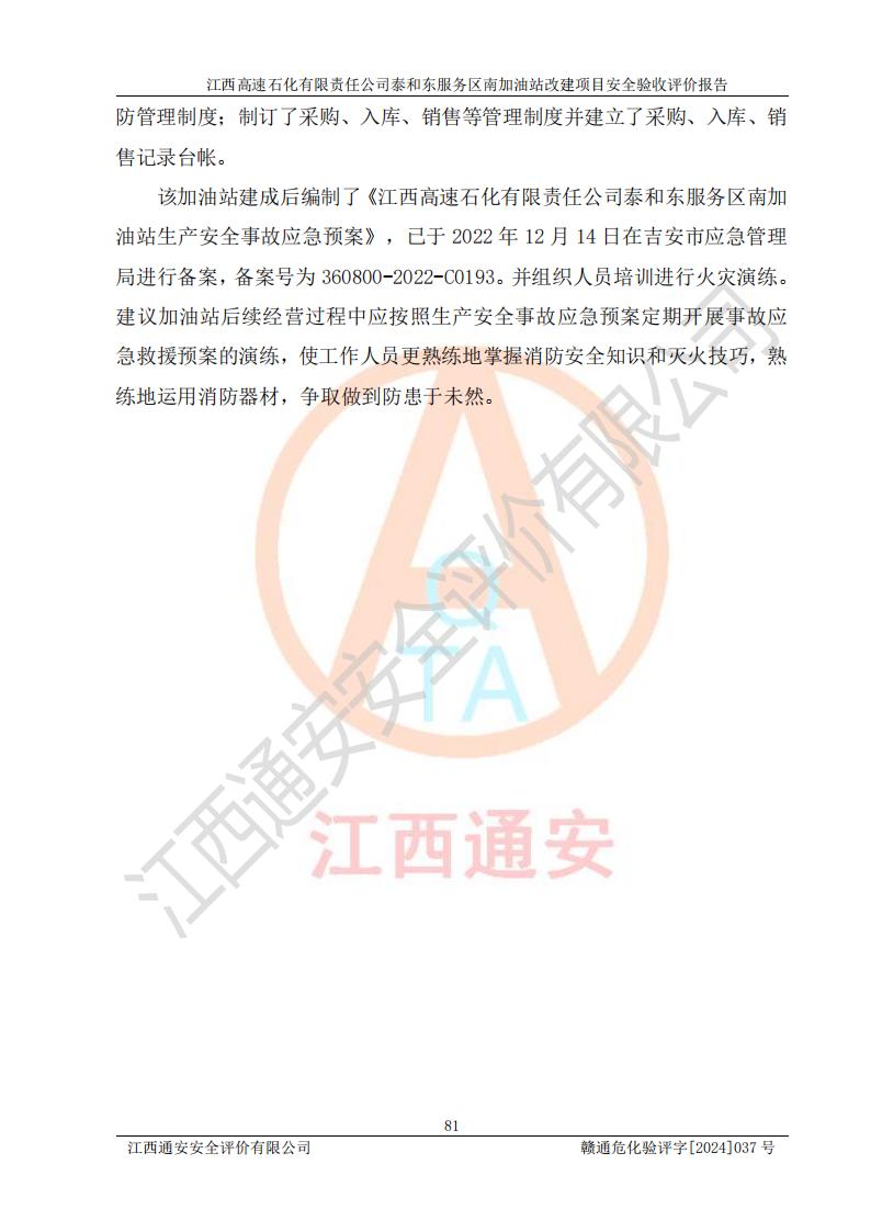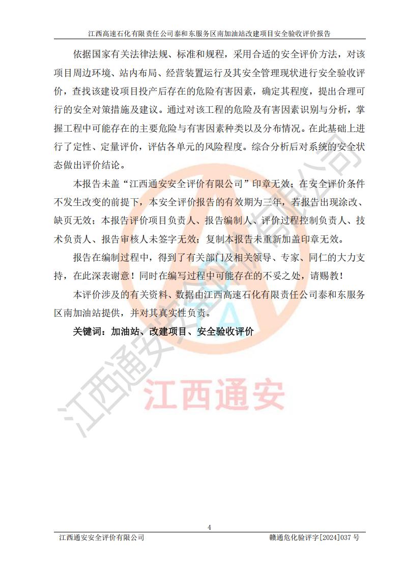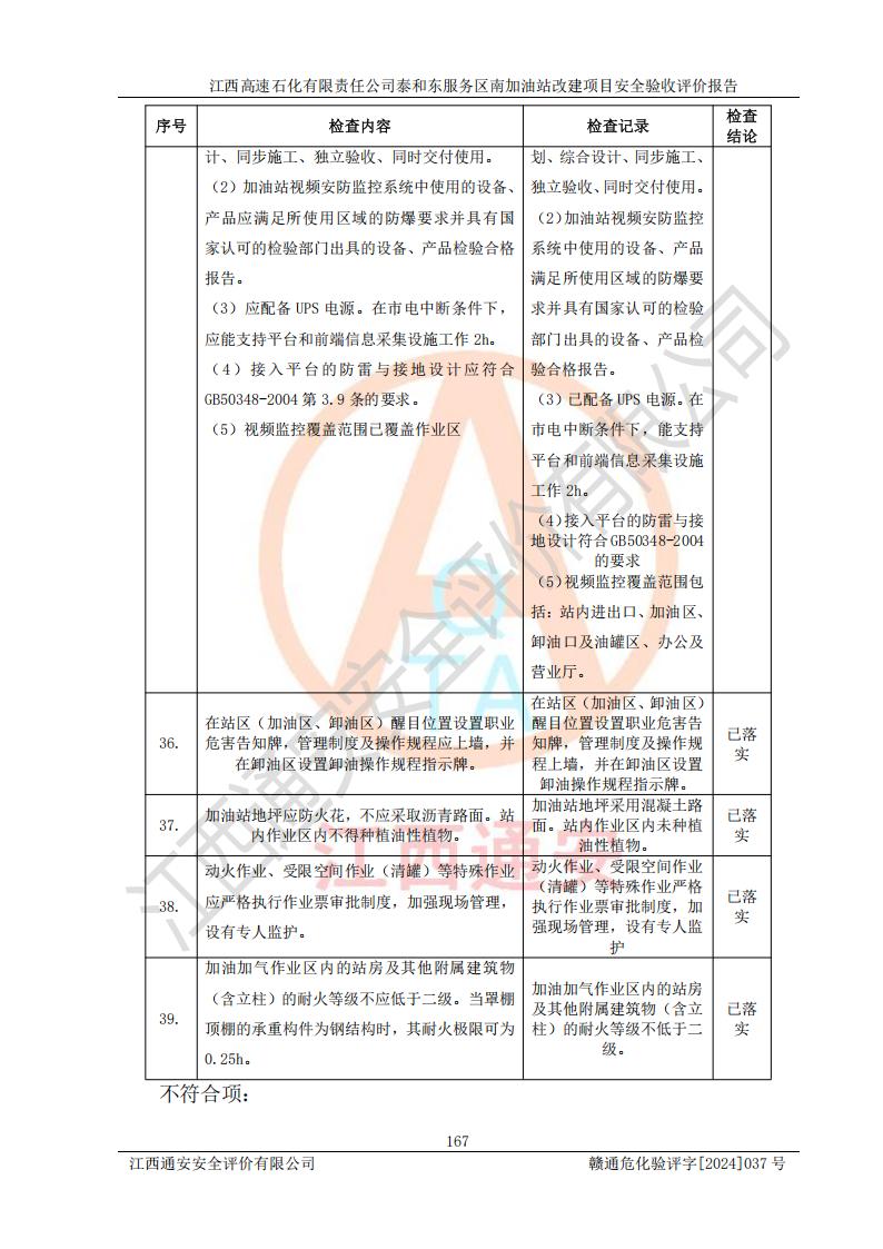 項目名稱 | 江西高速石化有限責(zé)任公司泰和東服務(wù)區(qū)南加油站改建項目安全驗收評價報告 | ||||