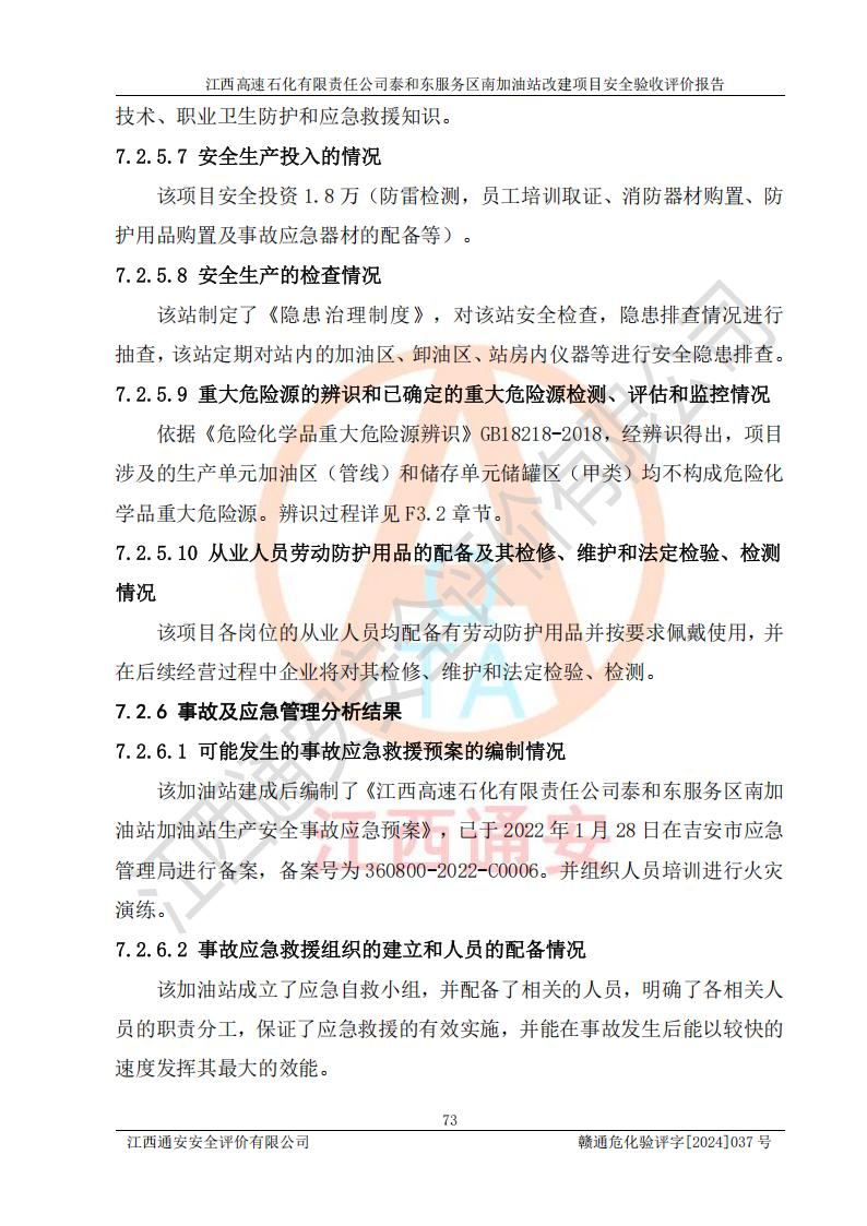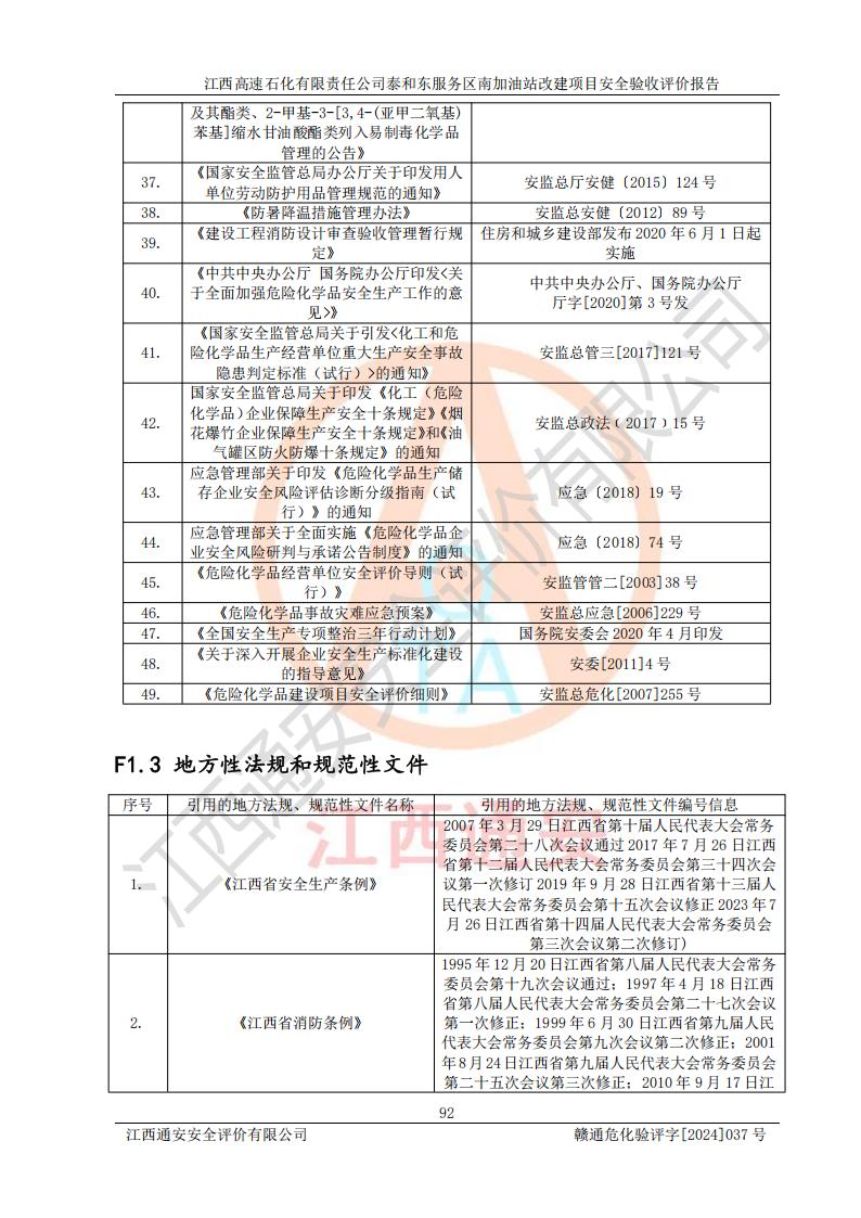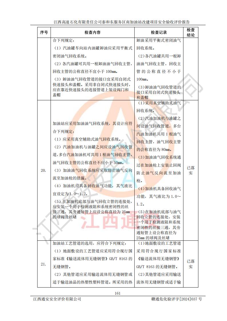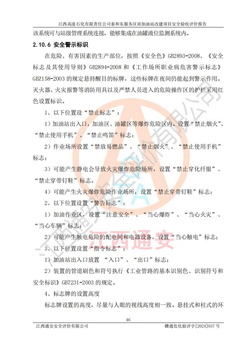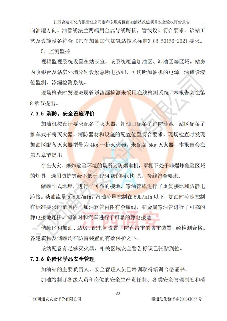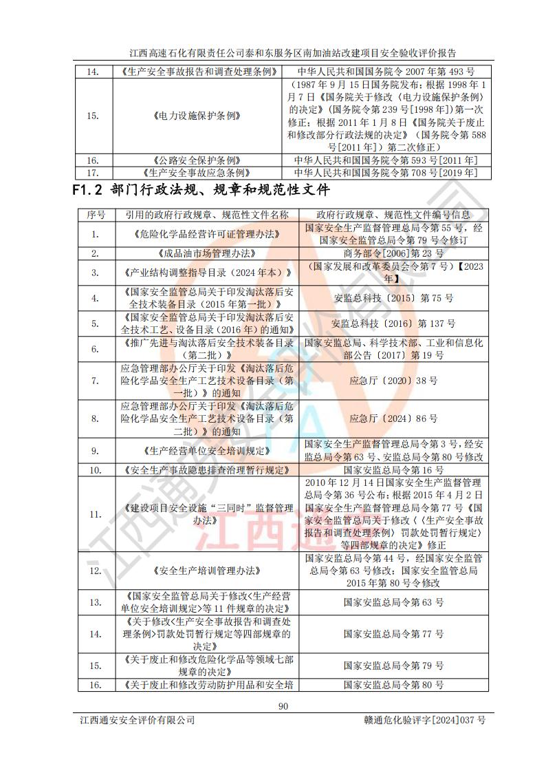 項目名稱 | 江西高速石化有限責(zé)任公司泰和東服務(wù)區(qū)南加油站改建項目安全驗收評價報告 | ||||