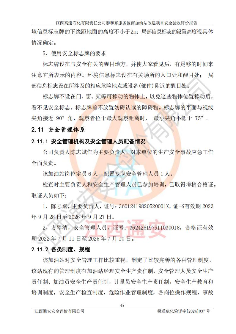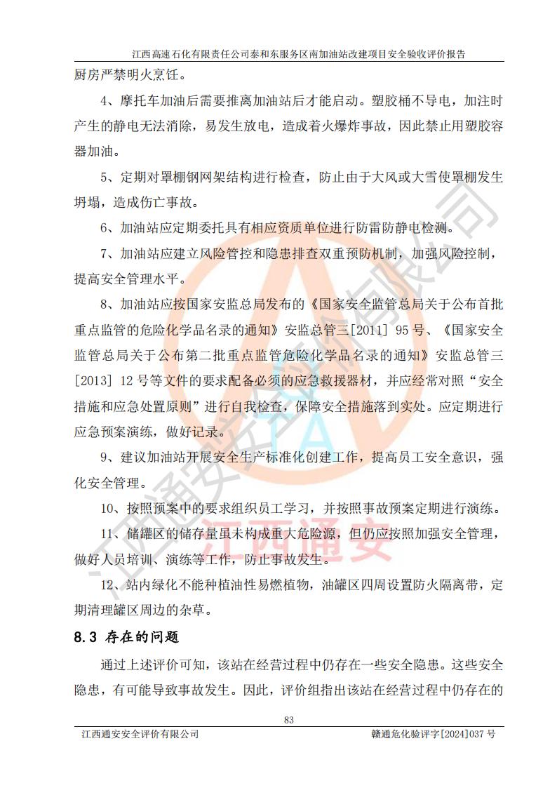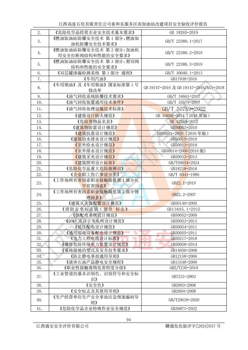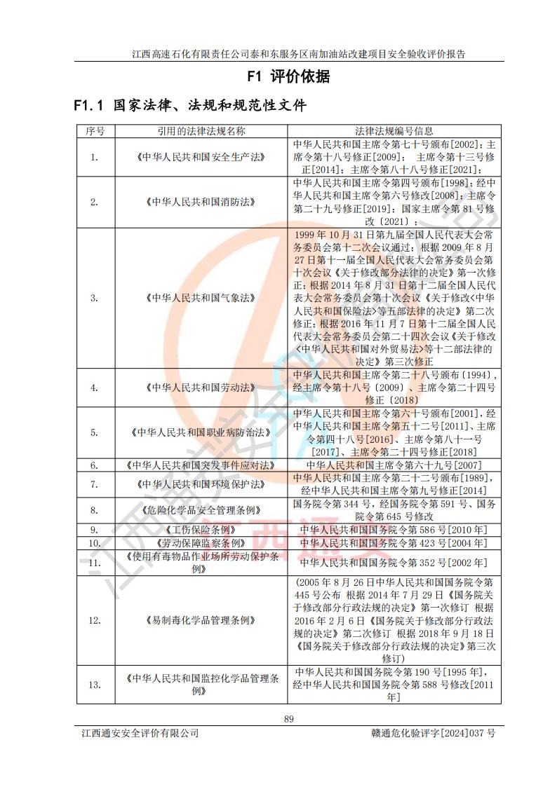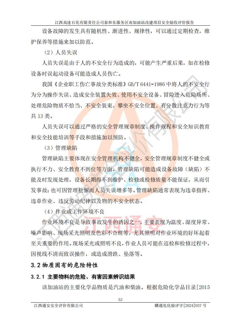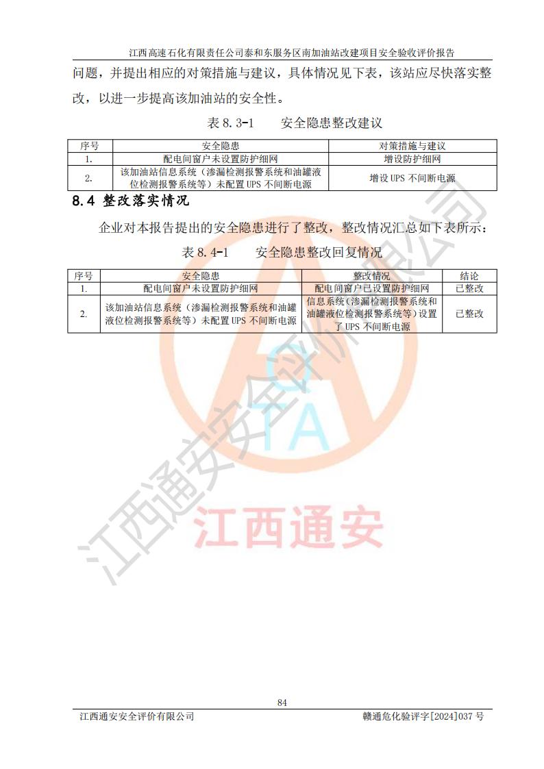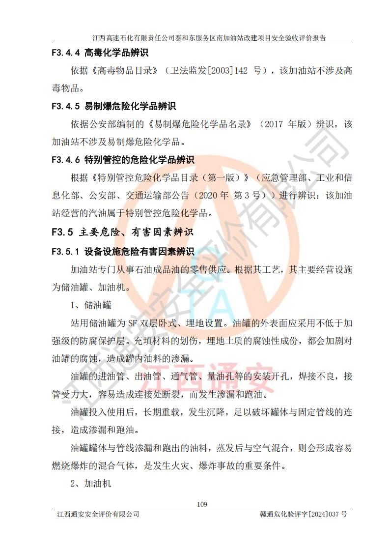 項目名稱 | 江西高速石化有限責(zé)任公司泰和東服務(wù)區(qū)南加油站改建項目安全驗收評價報告 | ||||