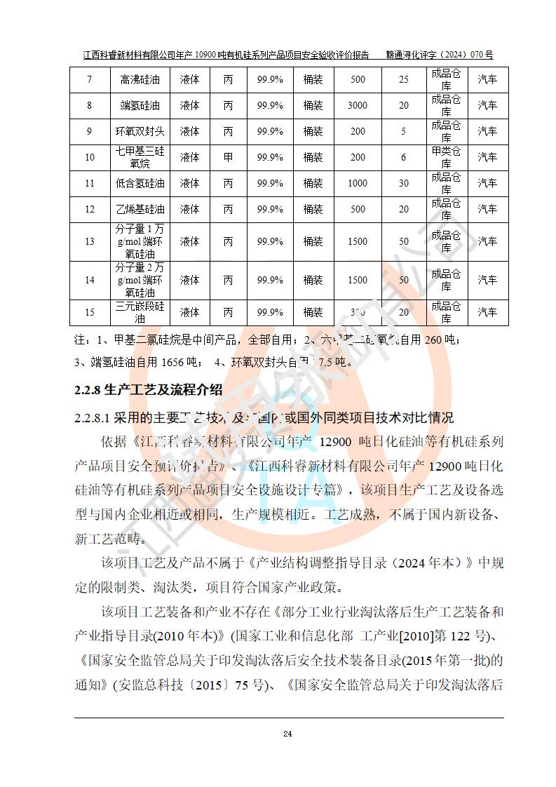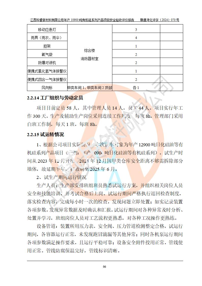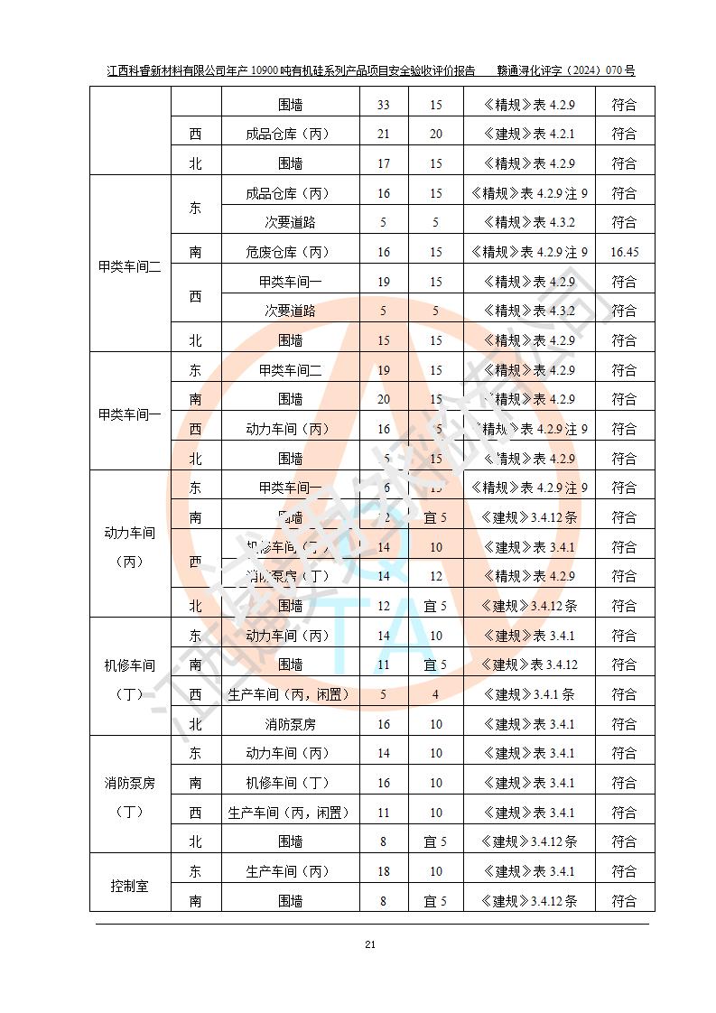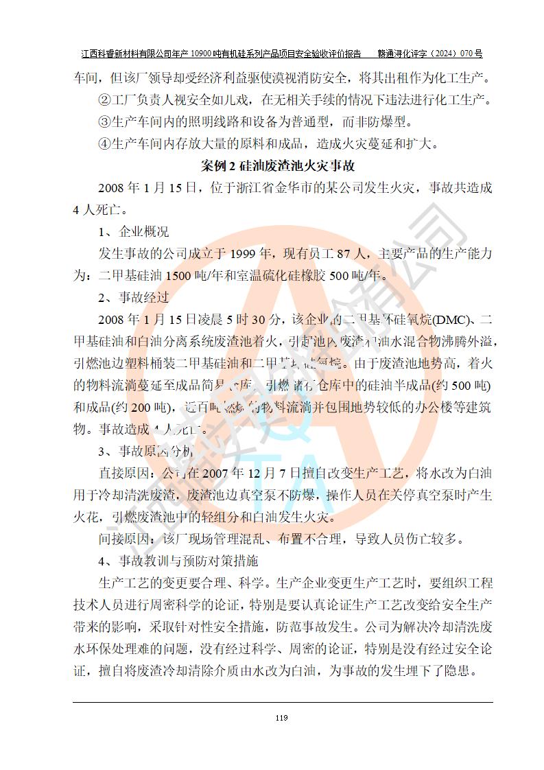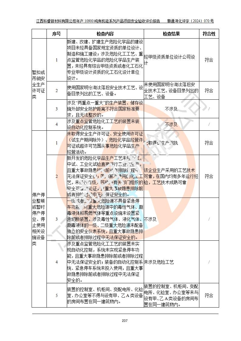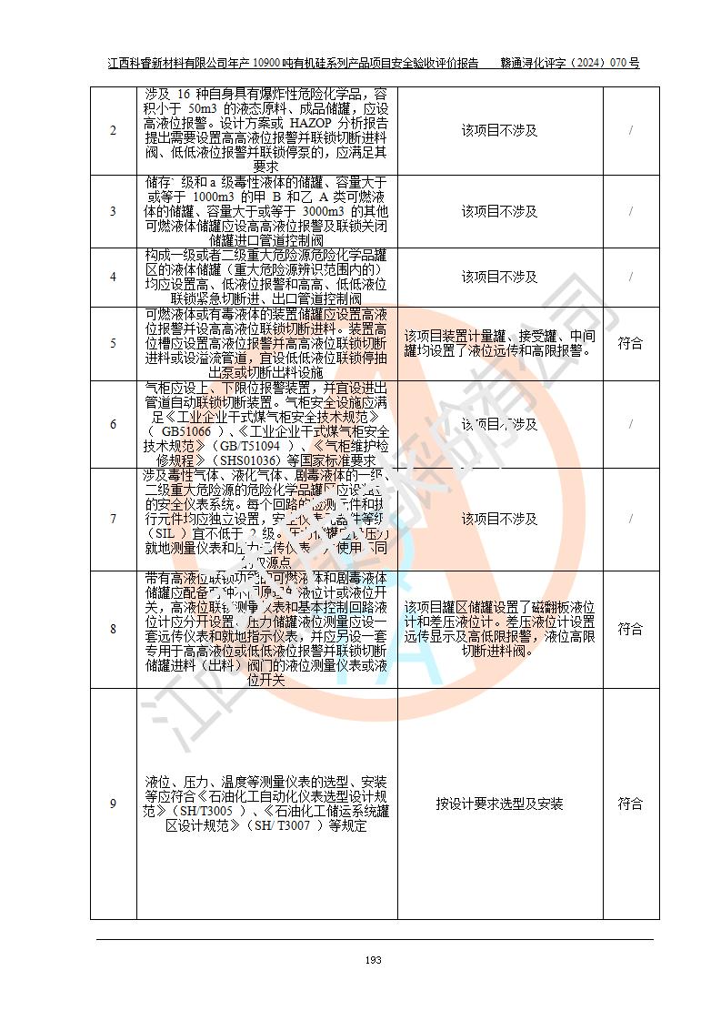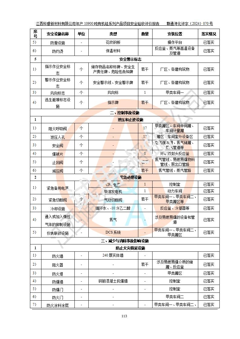 評價報告名稱 | 江西科睿新材料有限公司年產(chǎn)12900噸日化硅油等有機(jī)硅系列產(chǎn)品項(xiàng)目 (一期:年產(chǎn)10900噸日化硅油等有機(jī)硅系列)安全驗(yàn)收評價 | |||||
