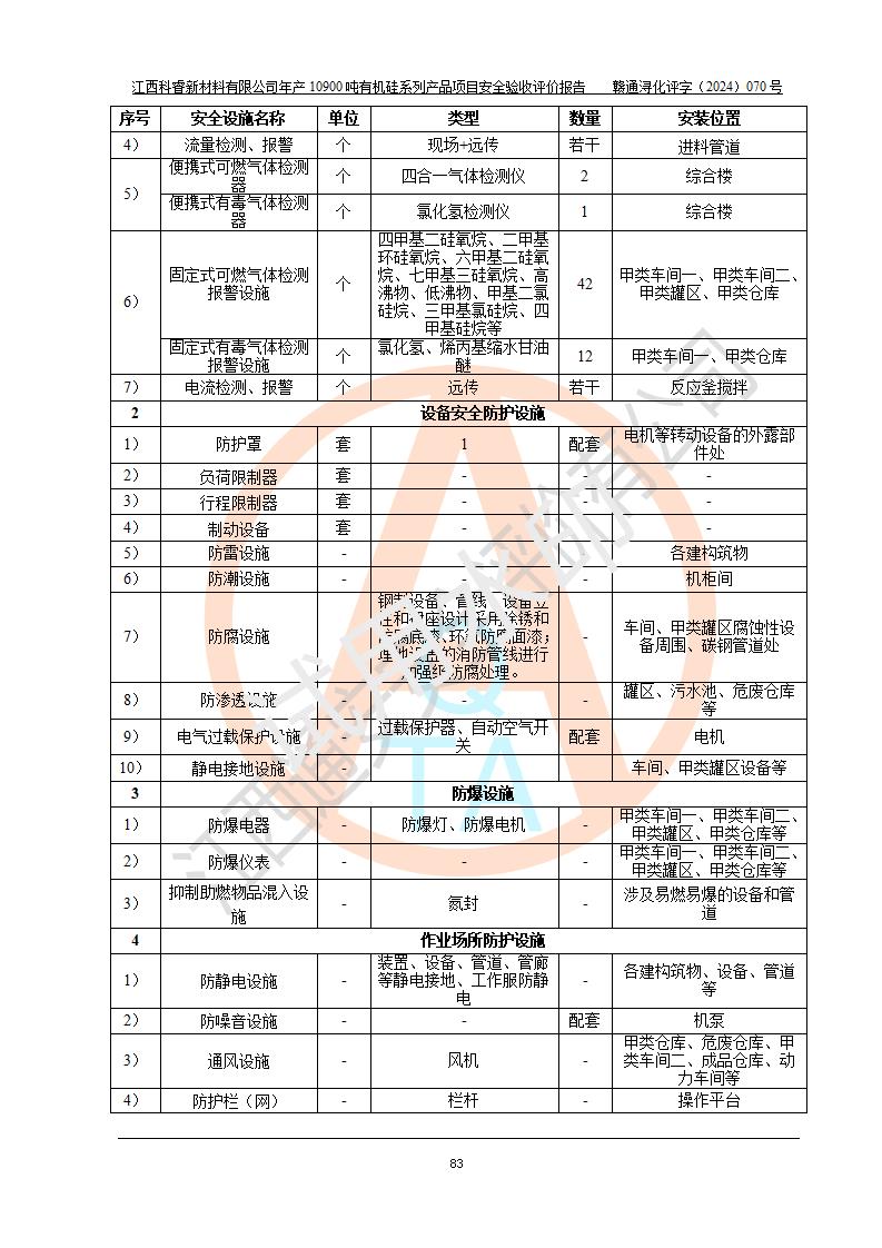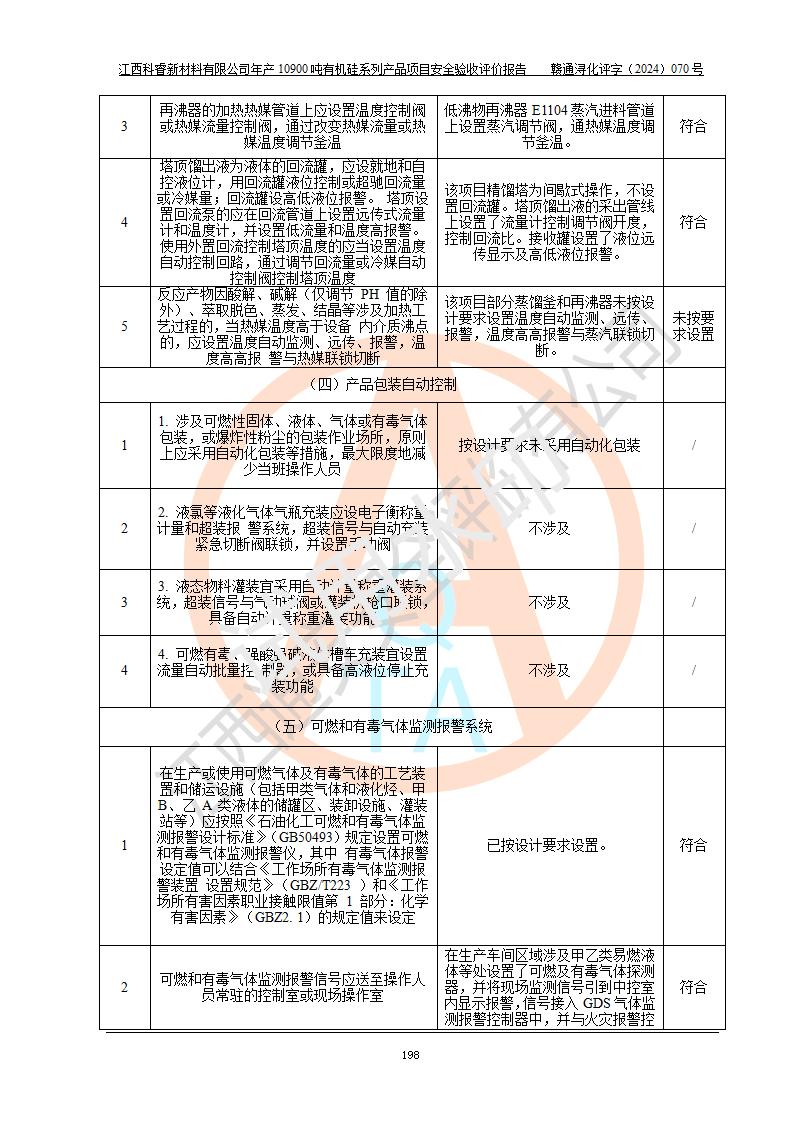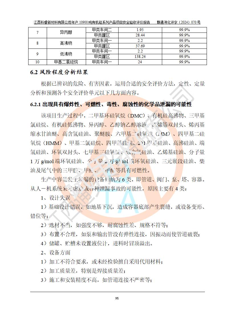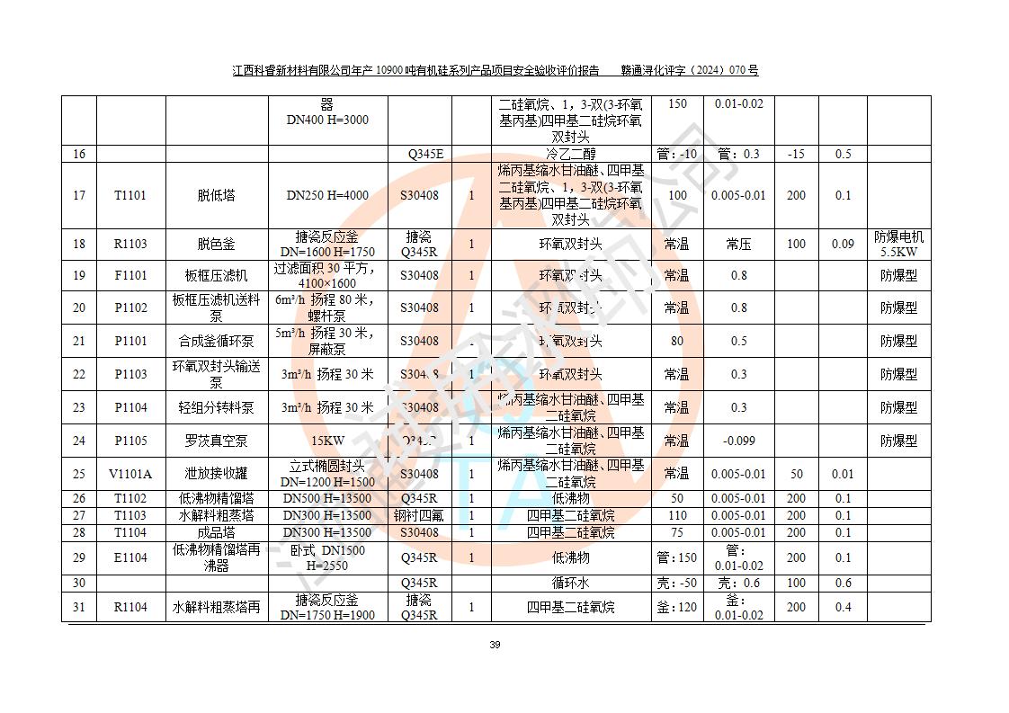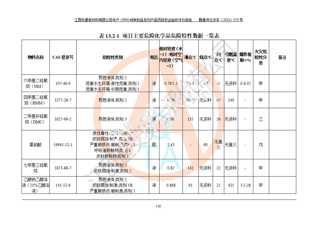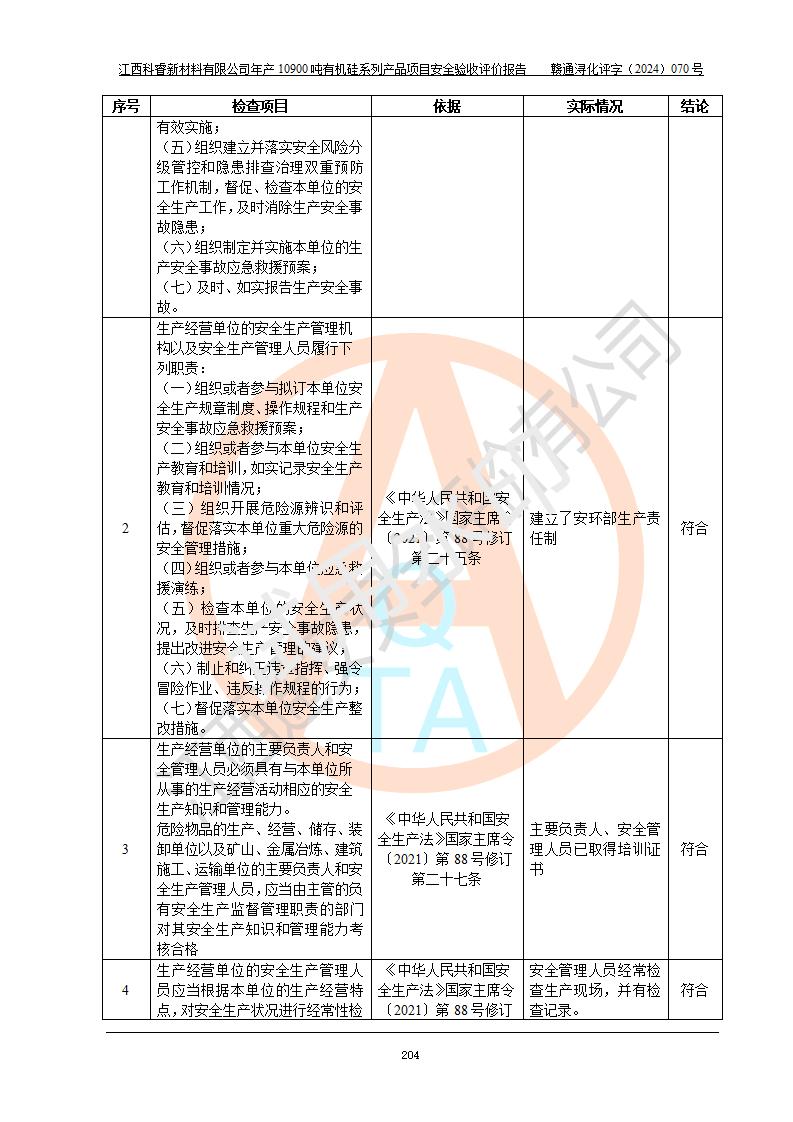 評價報告名稱 | 江西科睿新材料有限公司年產(chǎn)12900噸日化硅油等有機(jī)硅系列產(chǎn)品項(xiàng)目 (一期:年產(chǎn)10900噸日化硅油等有機(jī)硅系列)安全驗(yàn)收評價 | |||||