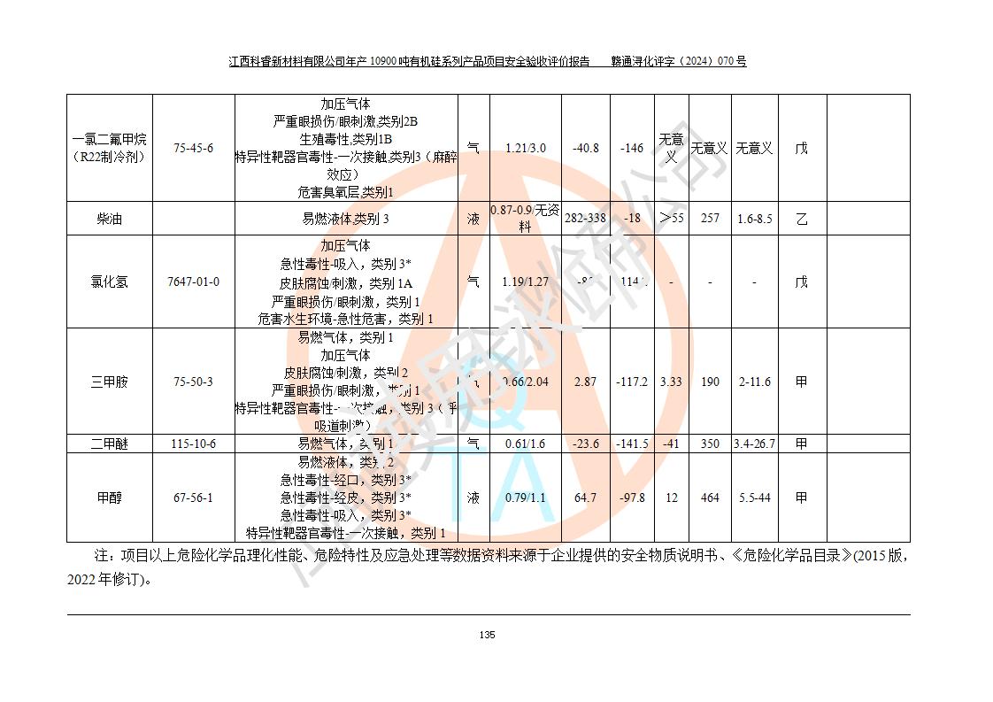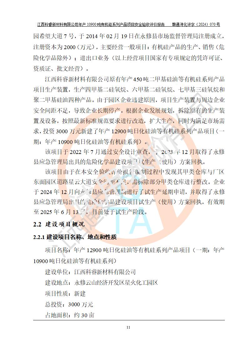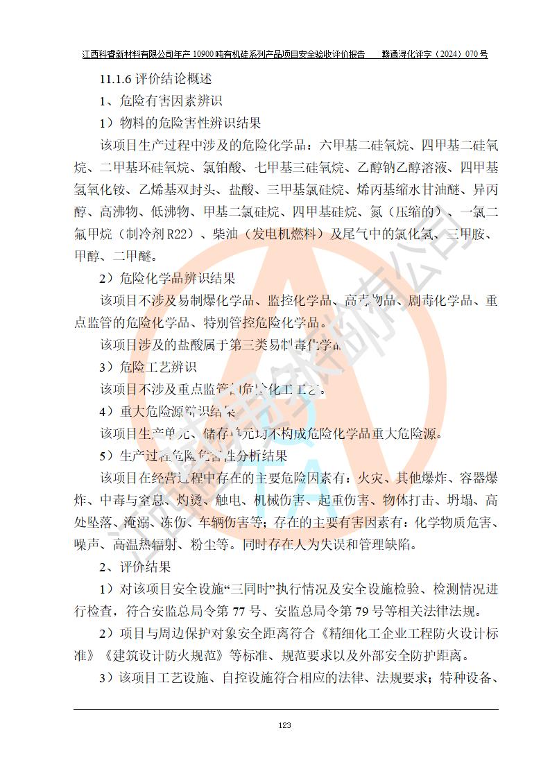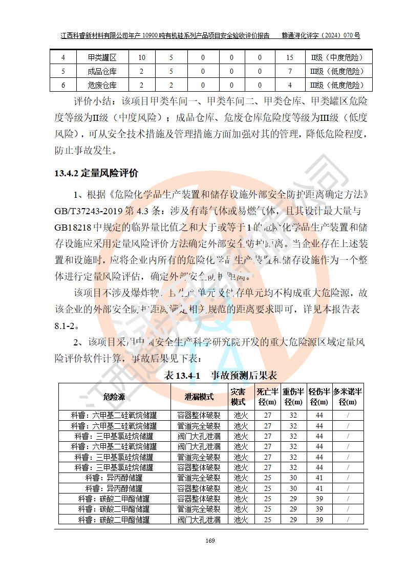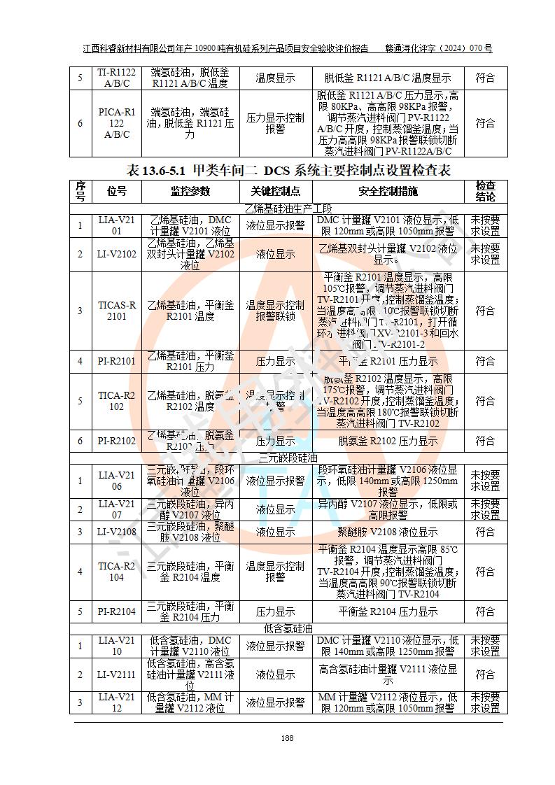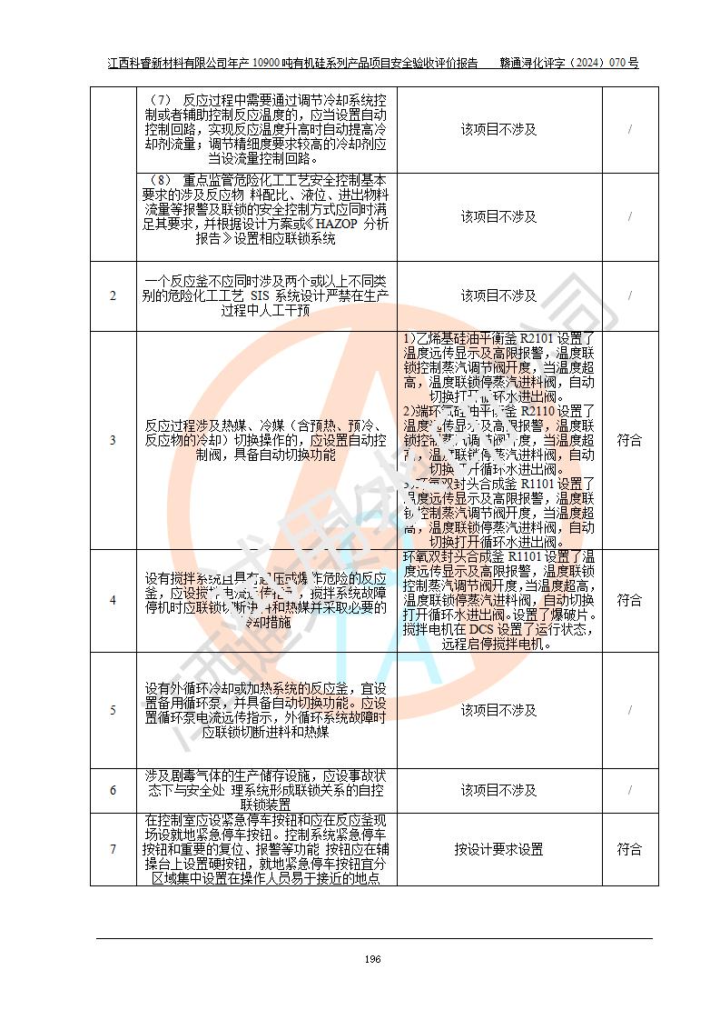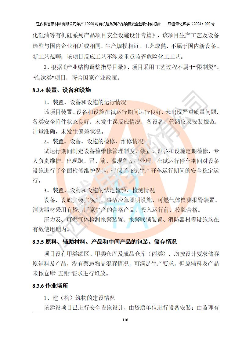 評價報告名稱 | 江西科睿新材料有限公司年產(chǎn)12900噸日化硅油等有機(jī)硅系列產(chǎn)品項(xiàng)目 (一期:年產(chǎn)10900噸日化硅油等有機(jī)硅系列)安全驗(yàn)收評價 | |||||