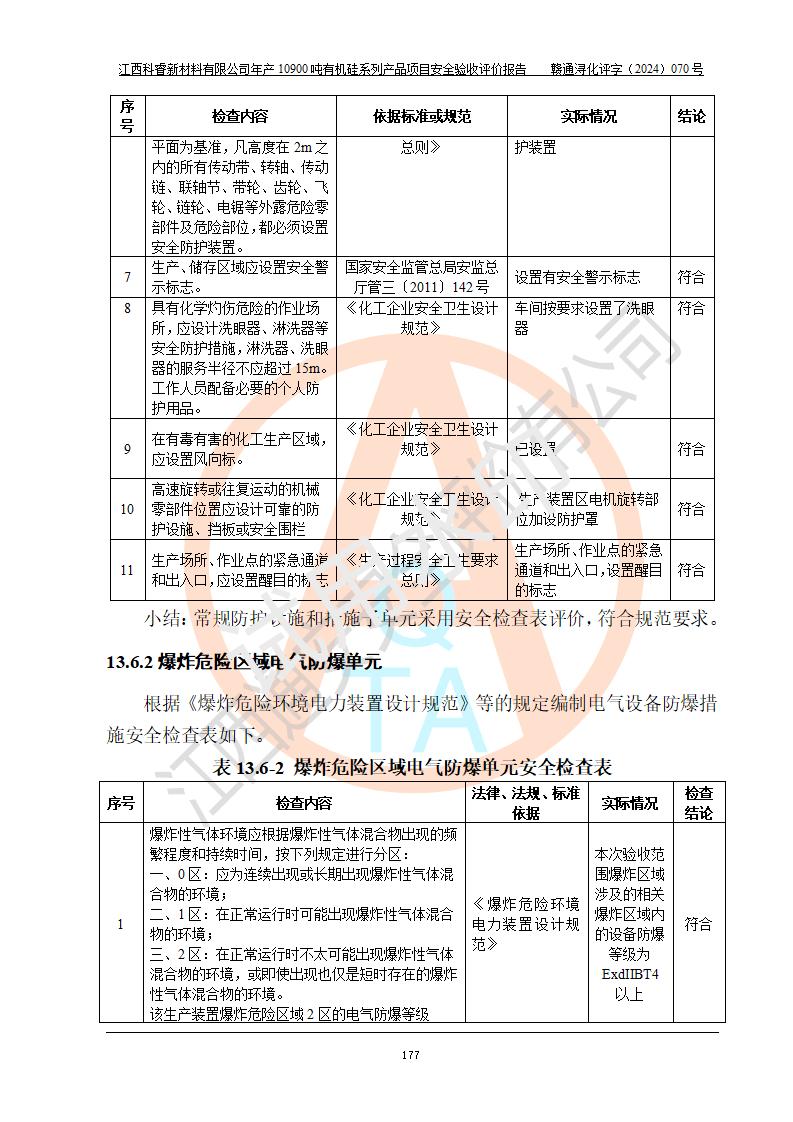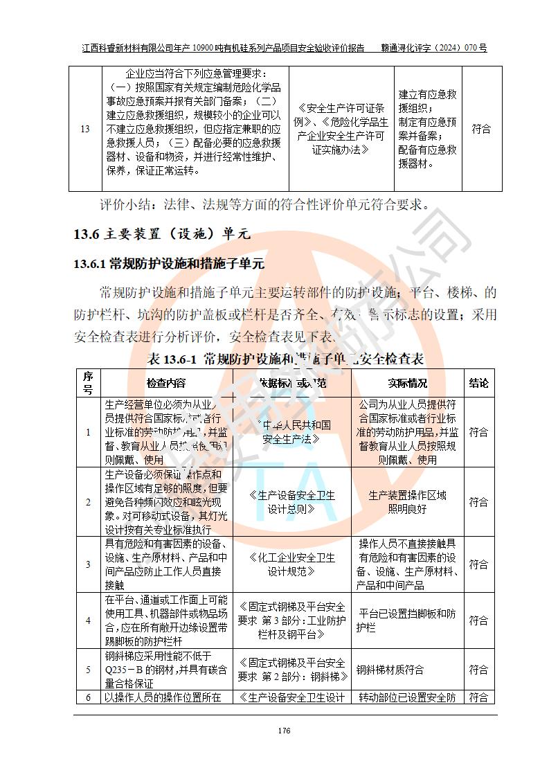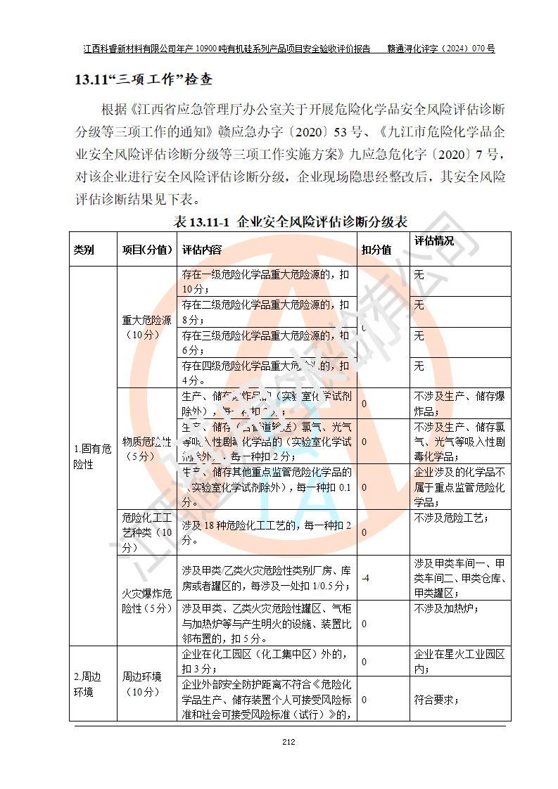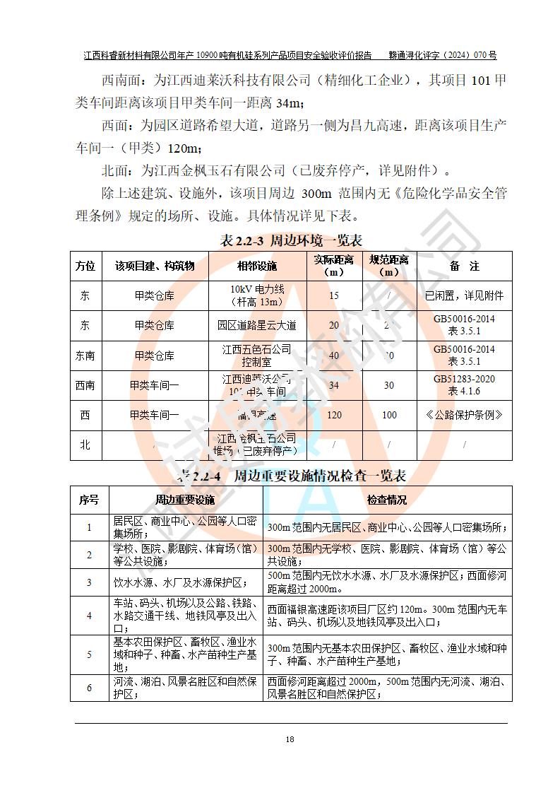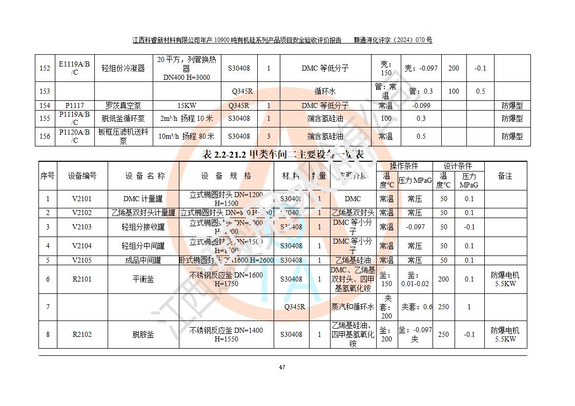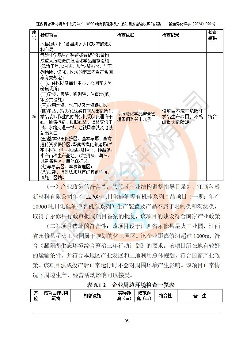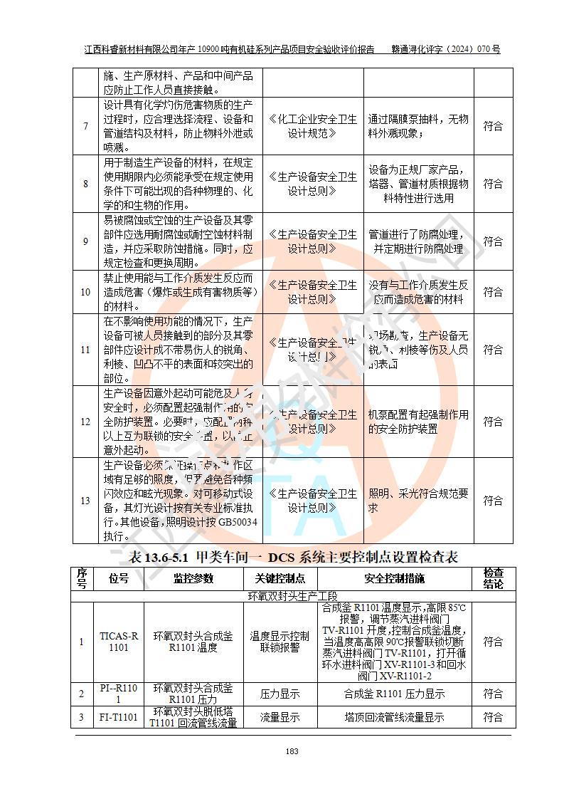 評價報告名稱 | 江西科睿新材料有限公司年產(chǎn)12900噸日化硅油等有機(jī)硅系列產(chǎn)品項(xiàng)目 (一期:年產(chǎn)10900噸日化硅油等有機(jī)硅系列)安全驗(yàn)收評價 | |||||
