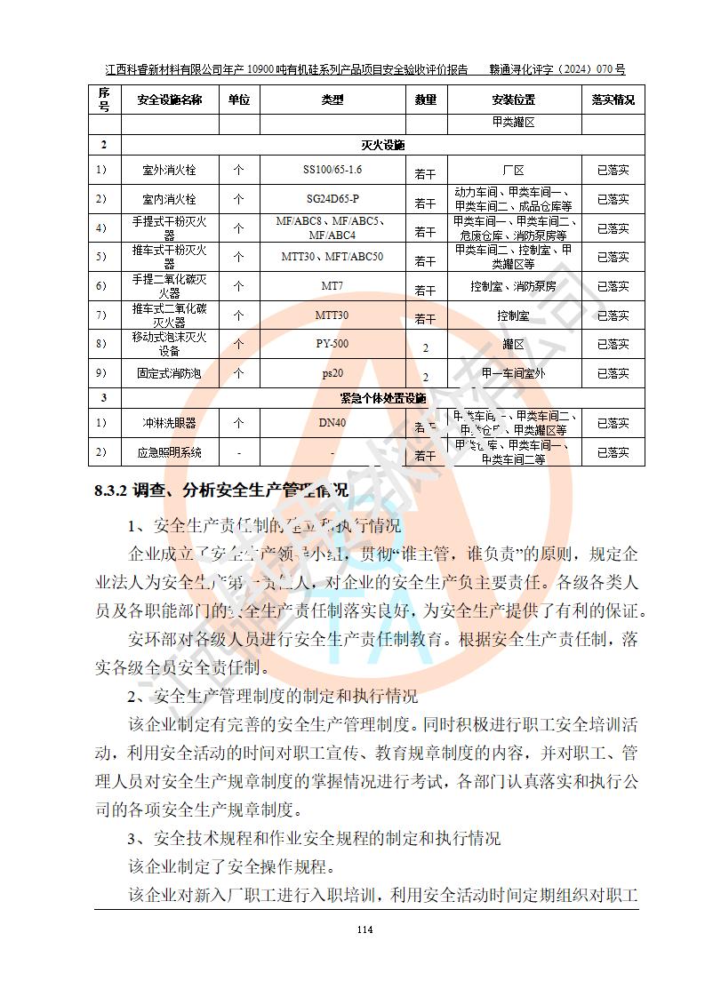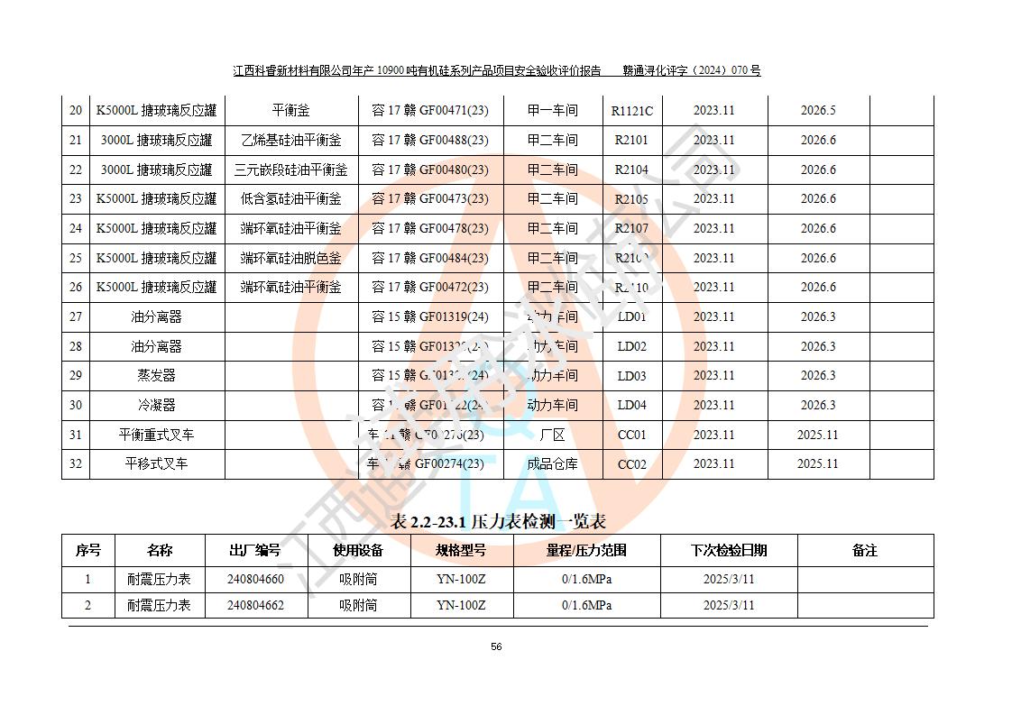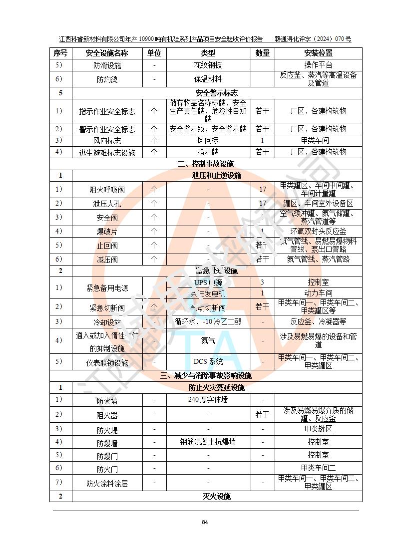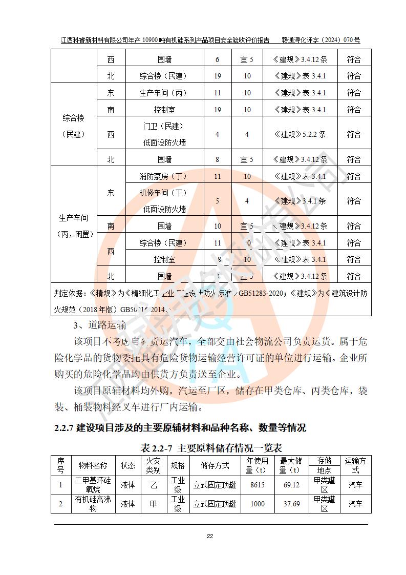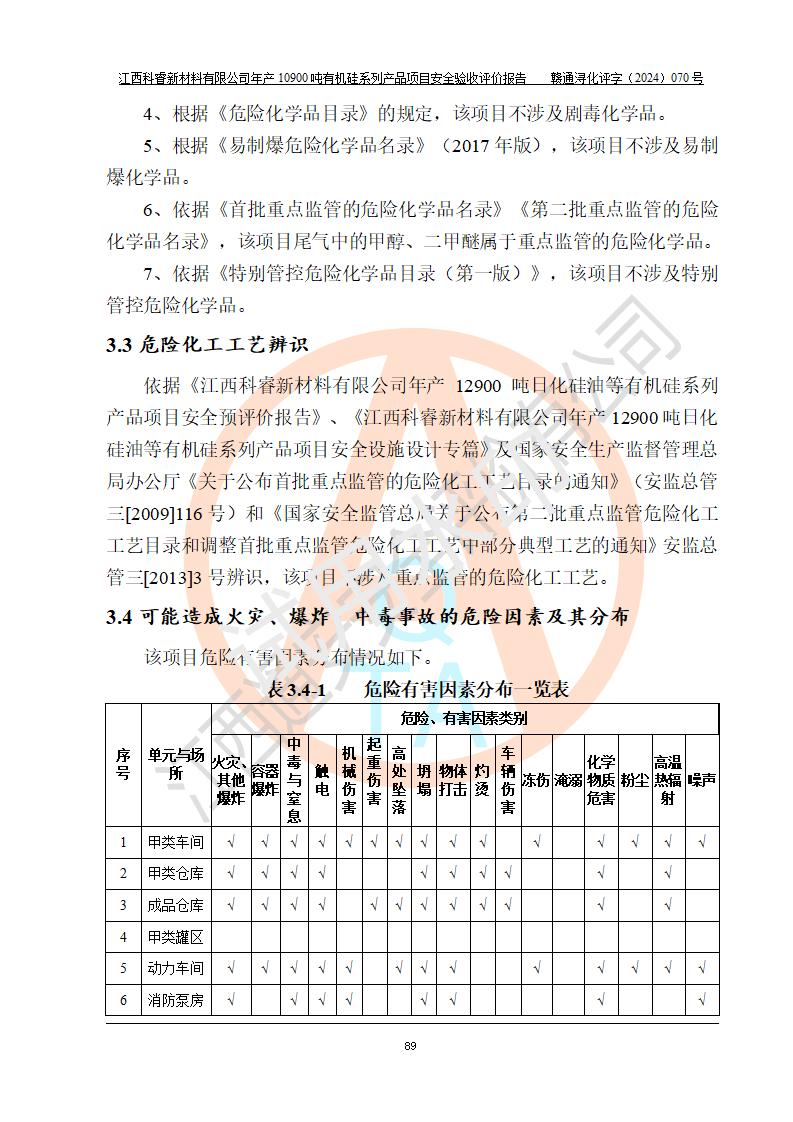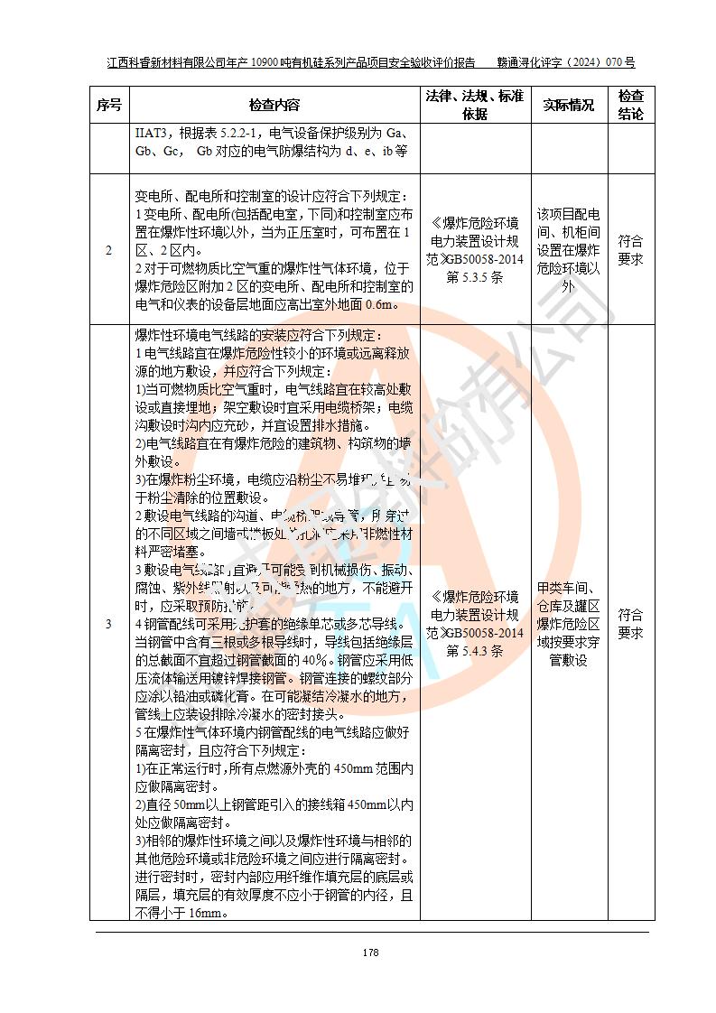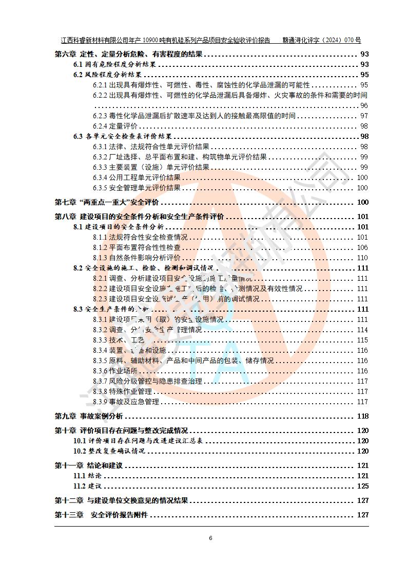 評價報告名稱 | 江西科睿新材料有限公司年產(chǎn)12900噸日化硅油等有機(jī)硅系列產(chǎn)品項(xiàng)目 (一期:年產(chǎn)10900噸日化硅油等有機(jī)硅系列)安全驗(yàn)收評價 | |||||