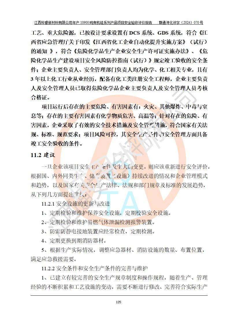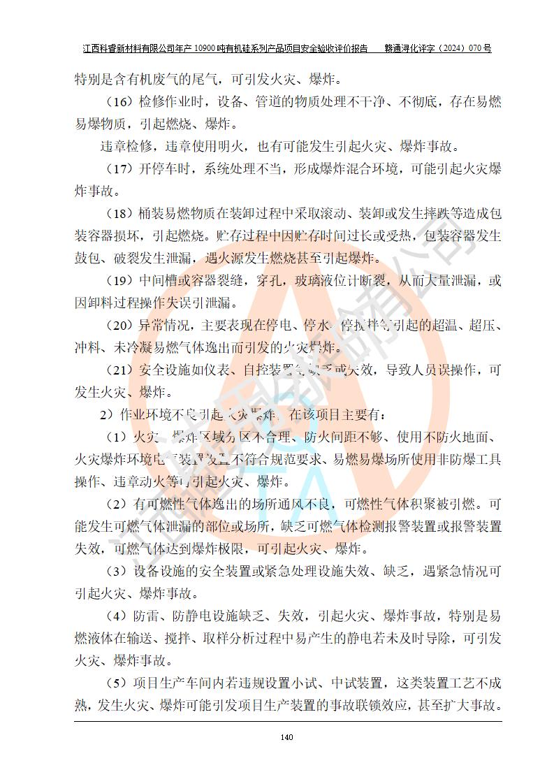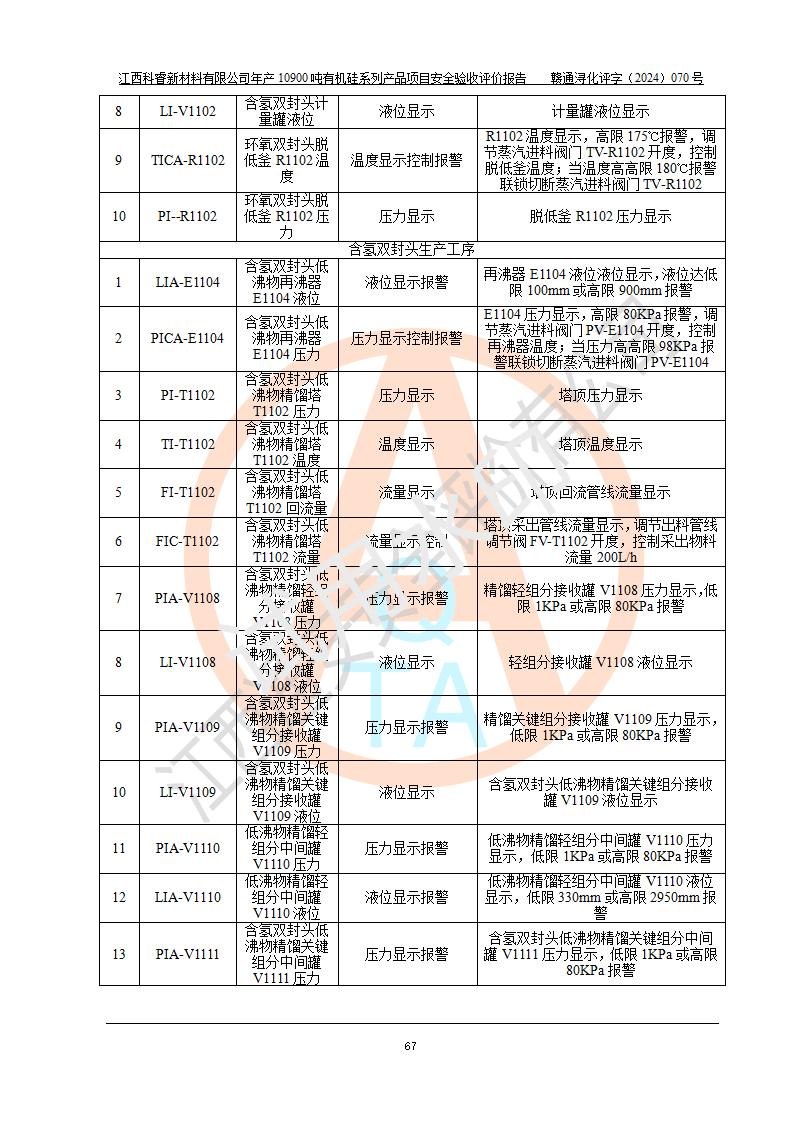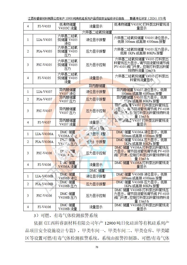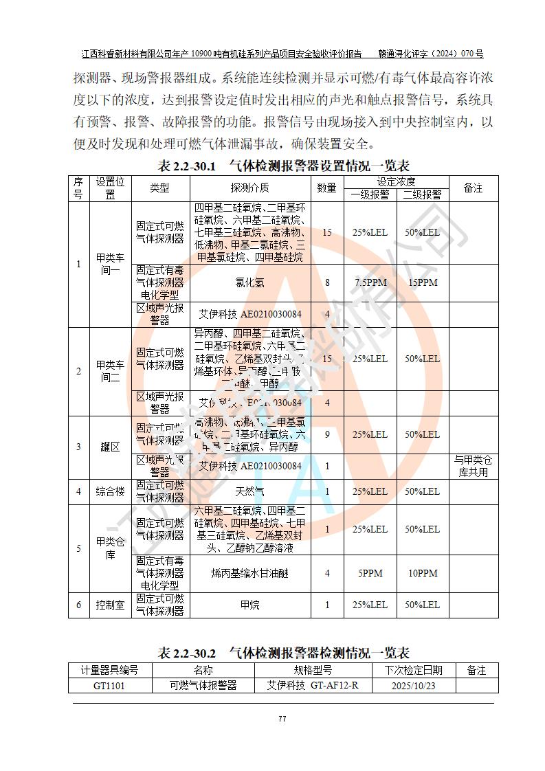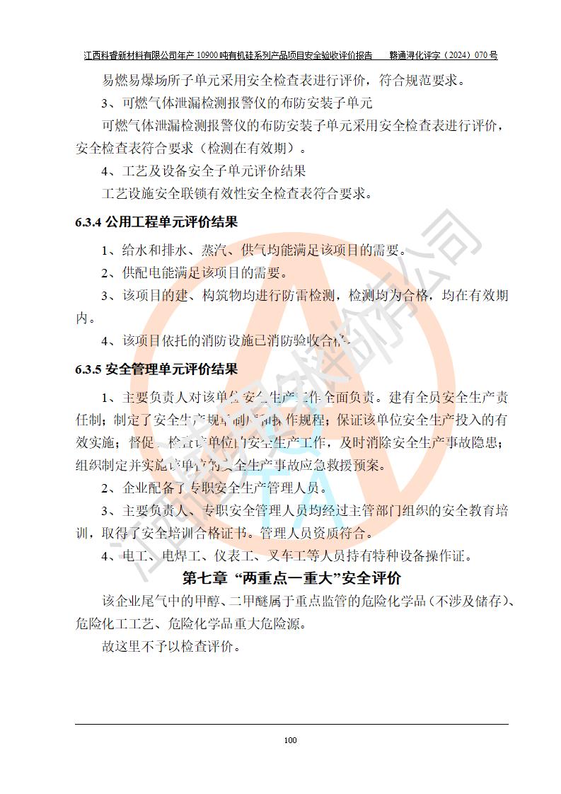 評價報告名稱 | 江西科睿新材料有限公司年產(chǎn)12900噸日化硅油等有機(jī)硅系列產(chǎn)品項(xiàng)目 (一期:年產(chǎn)10900噸日化硅油等有機(jī)硅系列)安全驗(yàn)收評價 | |||||