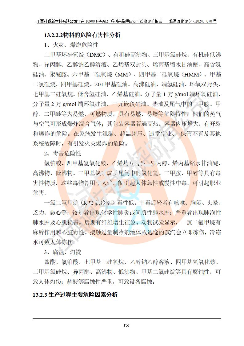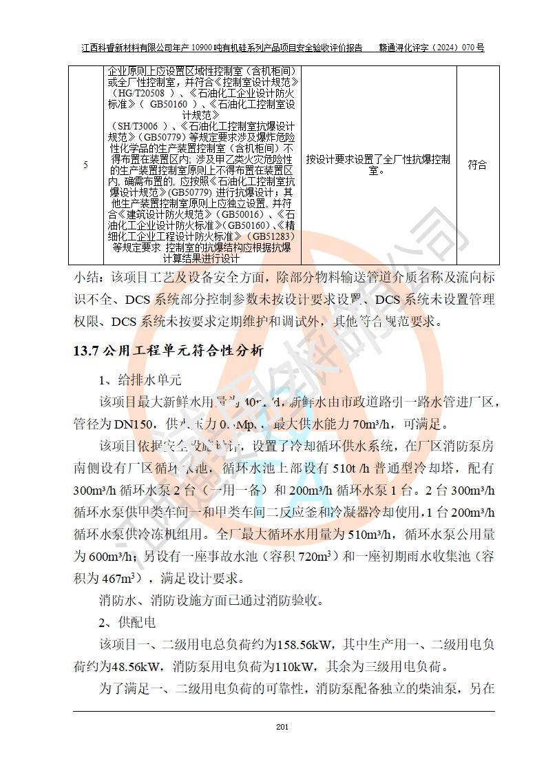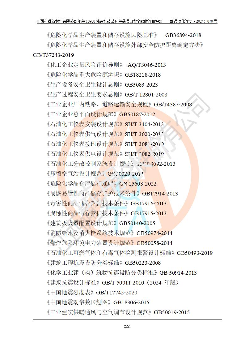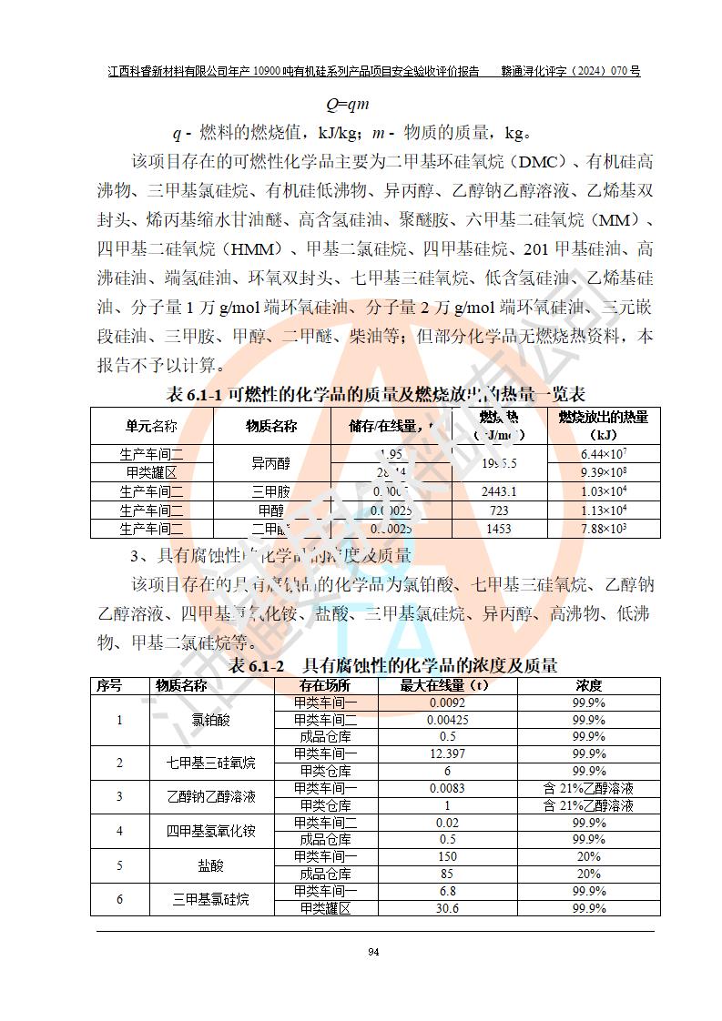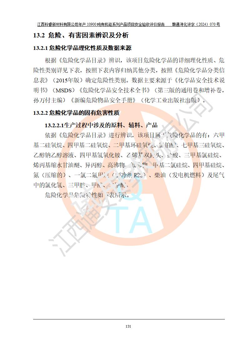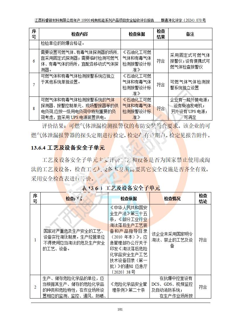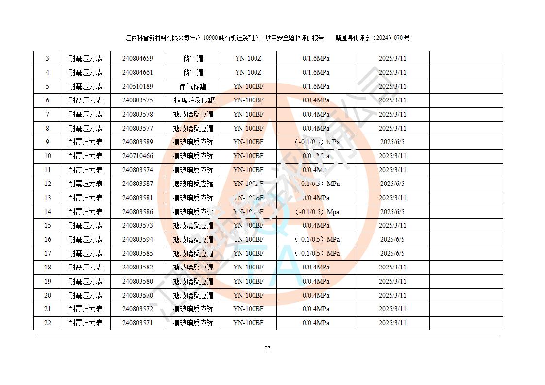 評價報告名稱 | 江西科睿新材料有限公司年產(chǎn)12900噸日化硅油等有機(jī)硅系列產(chǎn)品項(xiàng)目 (一期:年產(chǎn)10900噸日化硅油等有機(jī)硅系列)安全驗(yàn)收評價 | |||||