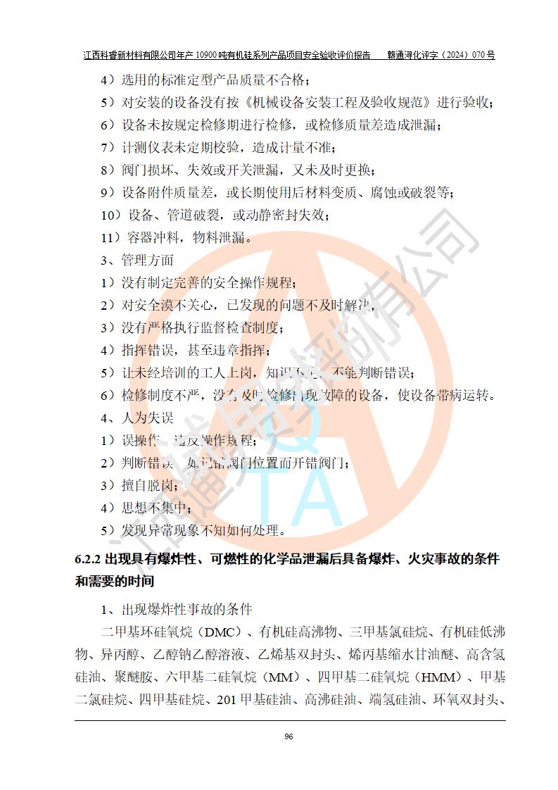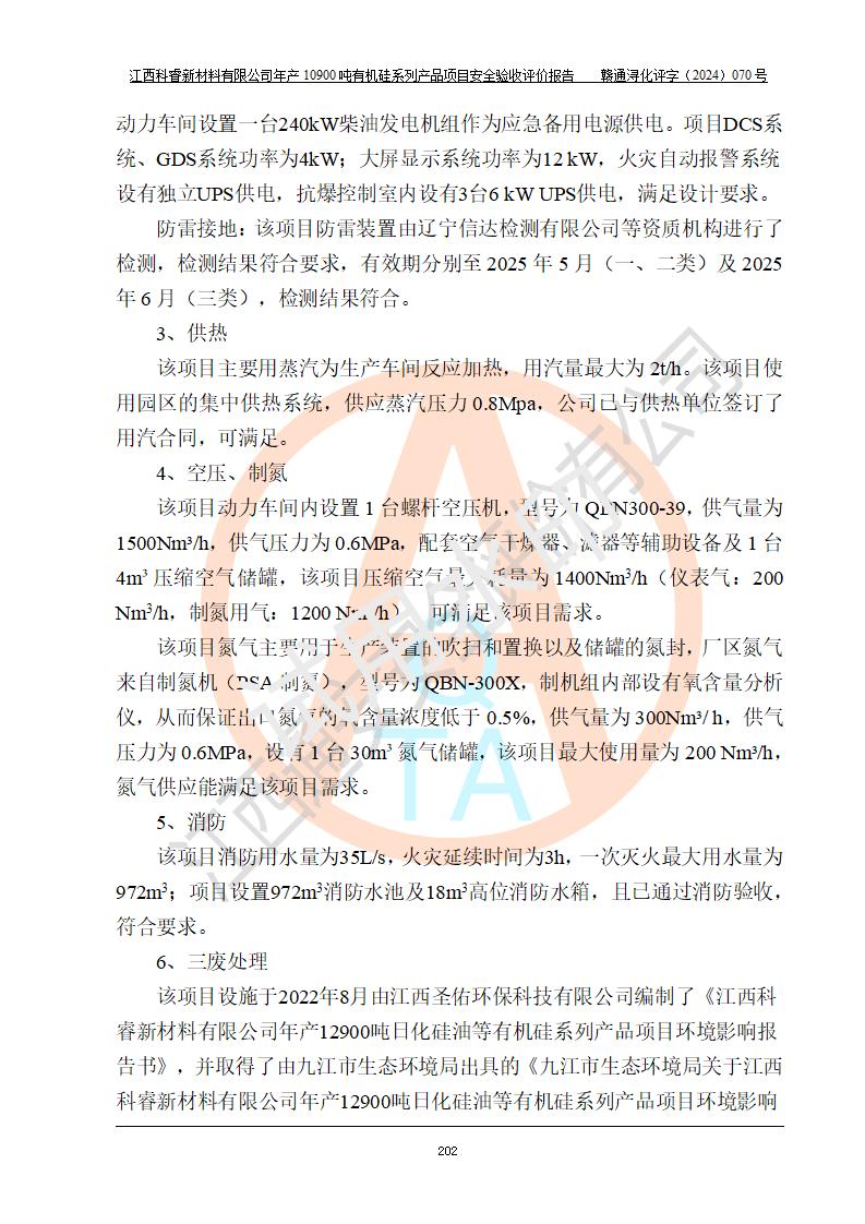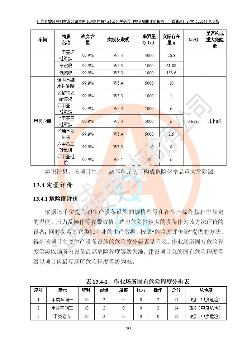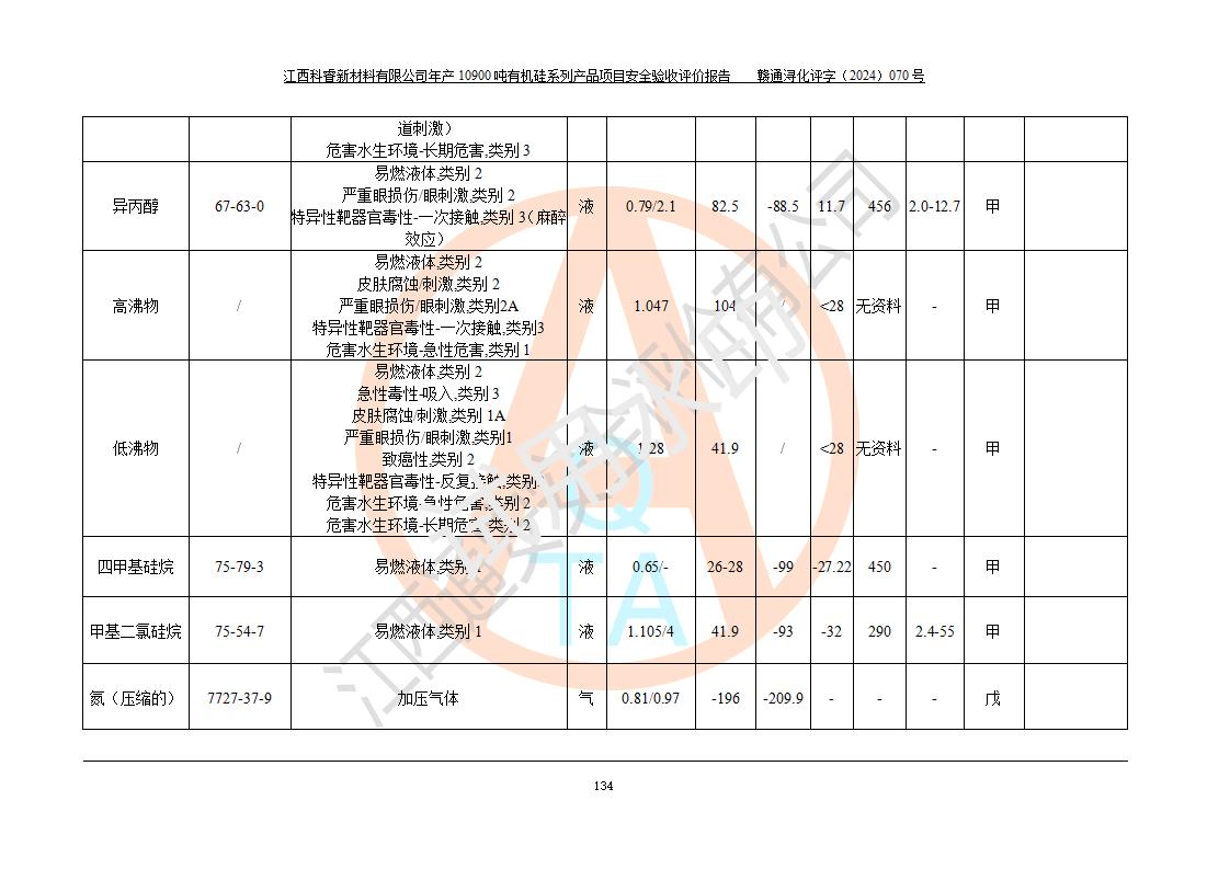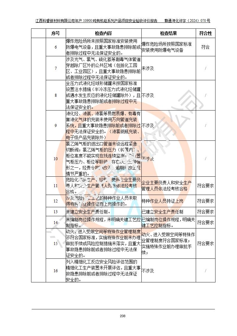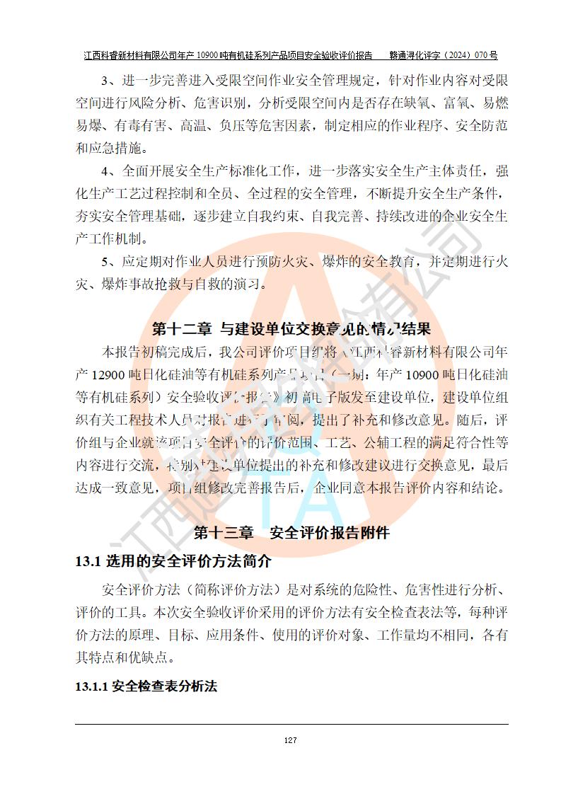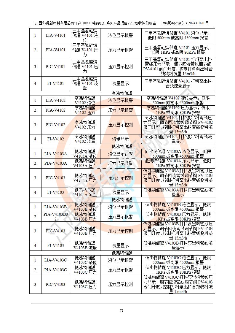 評價報告名稱 | 江西科睿新材料有限公司年產(chǎn)12900噸日化硅油等有機(jī)硅系列產(chǎn)品項(xiàng)目 (一期:年產(chǎn)10900噸日化硅油等有機(jī)硅系列)安全驗(yàn)收評價 | |||||
