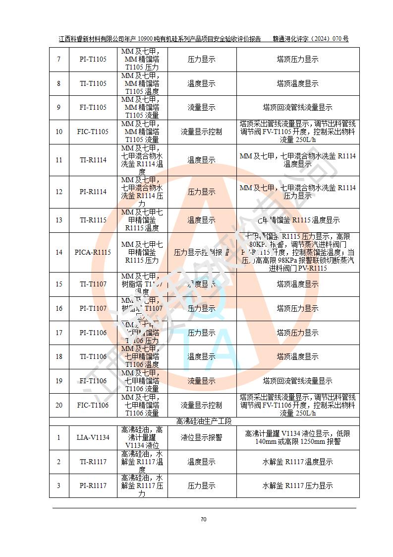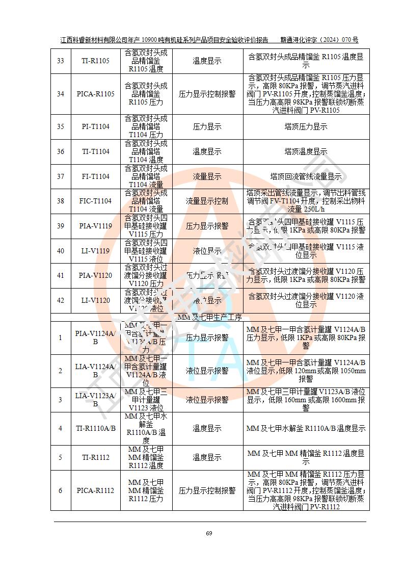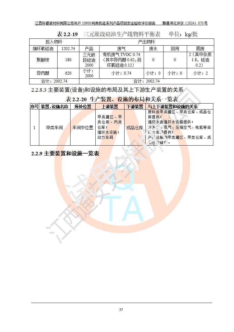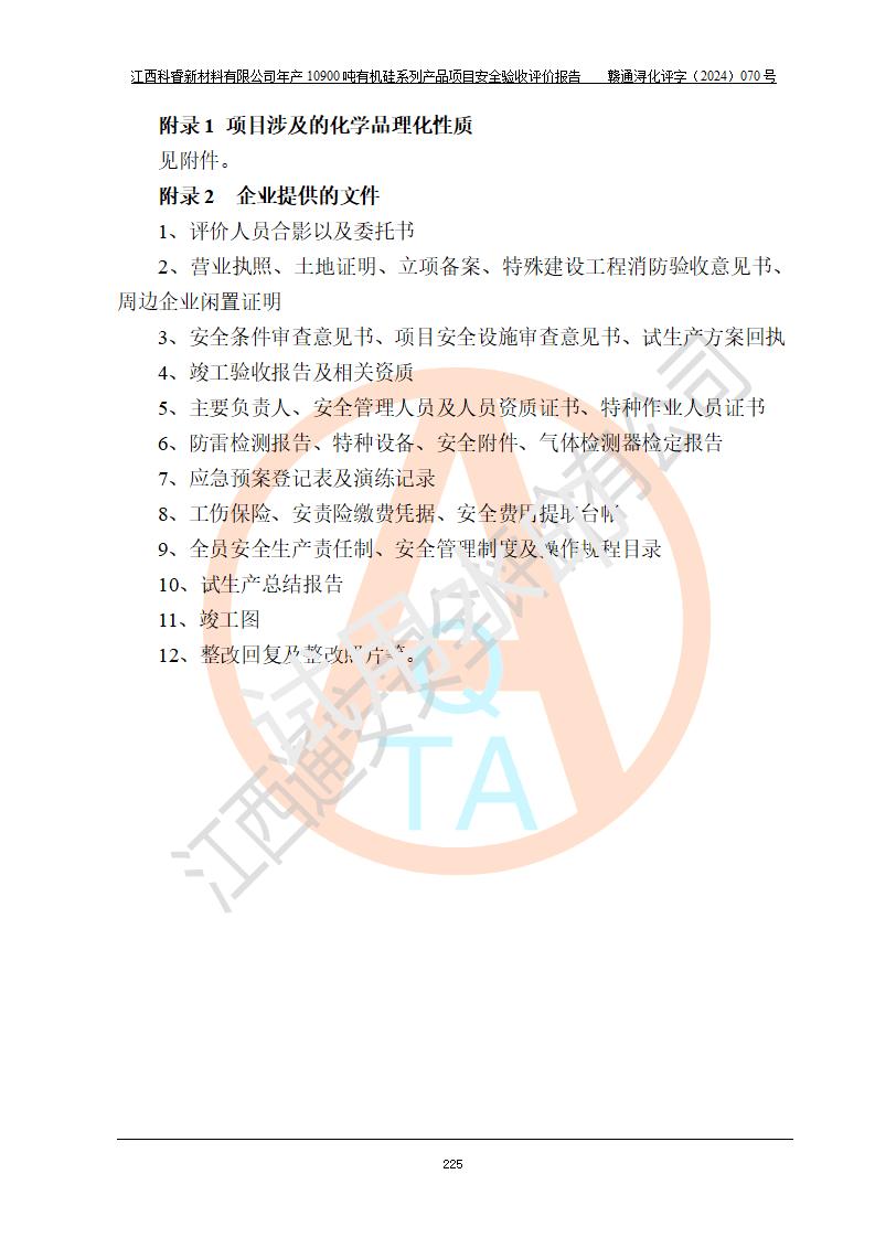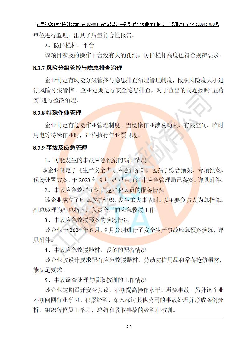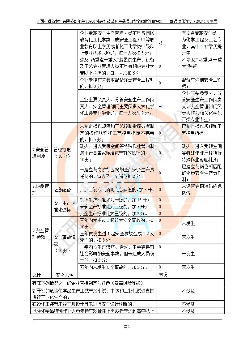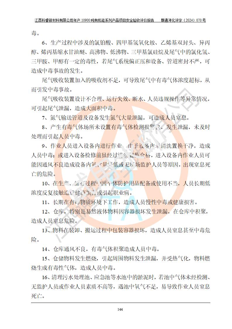評價報告名稱 | 江西科睿新材料有限公司年產(chǎn)12900噸日化硅油等有機(jī)硅系列產(chǎn)品項(xiàng)目 (一期:年產(chǎn)10900噸日化硅油等有機(jī)硅系列)安全驗(yàn)收評價 | |||||