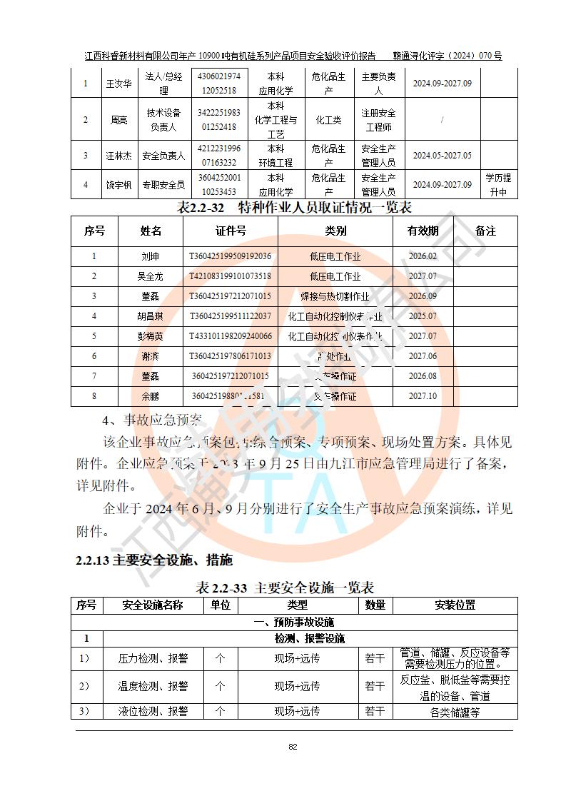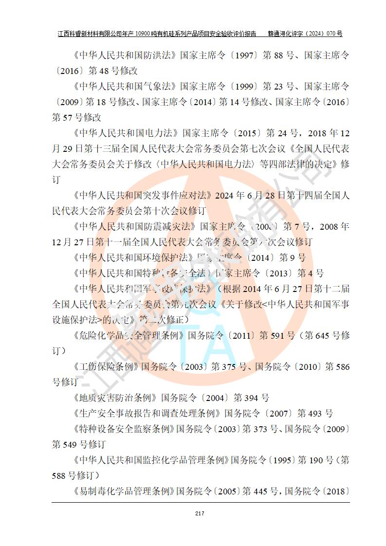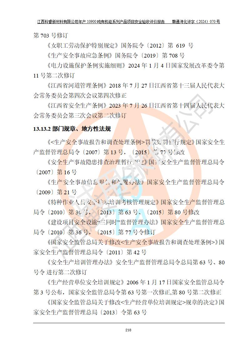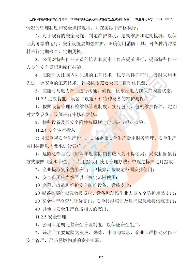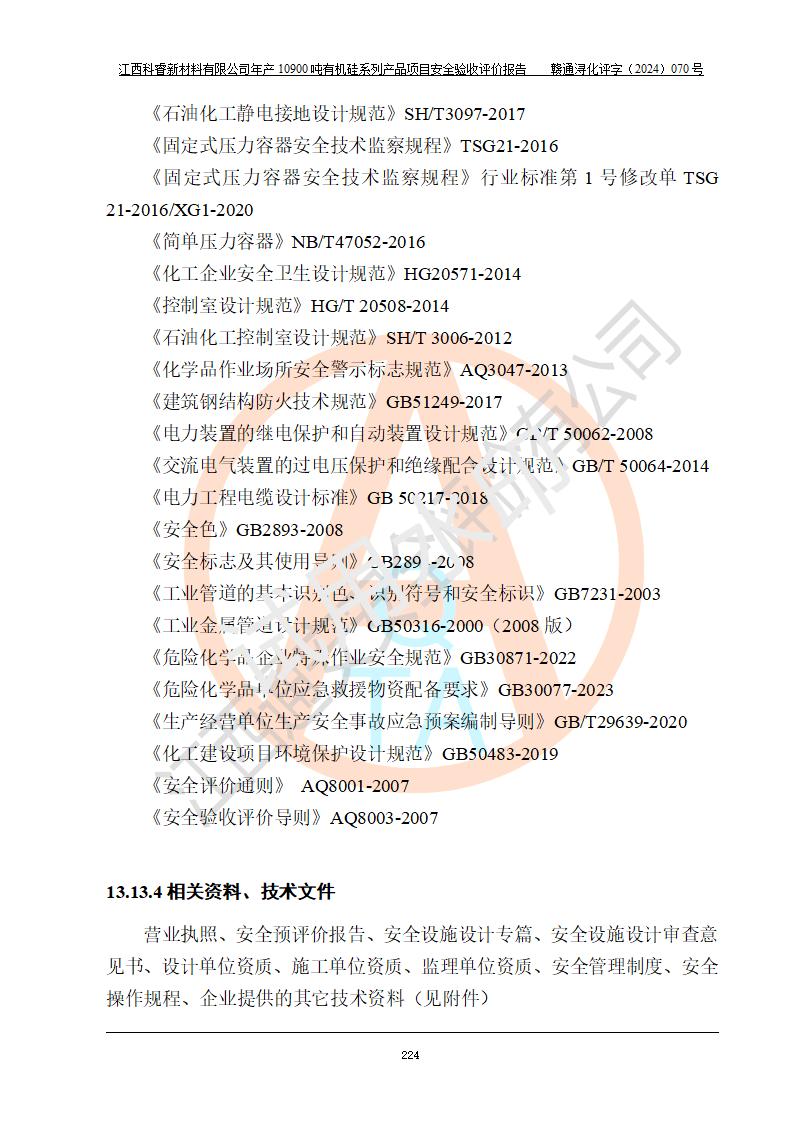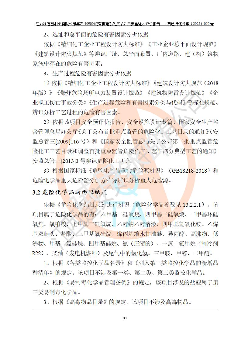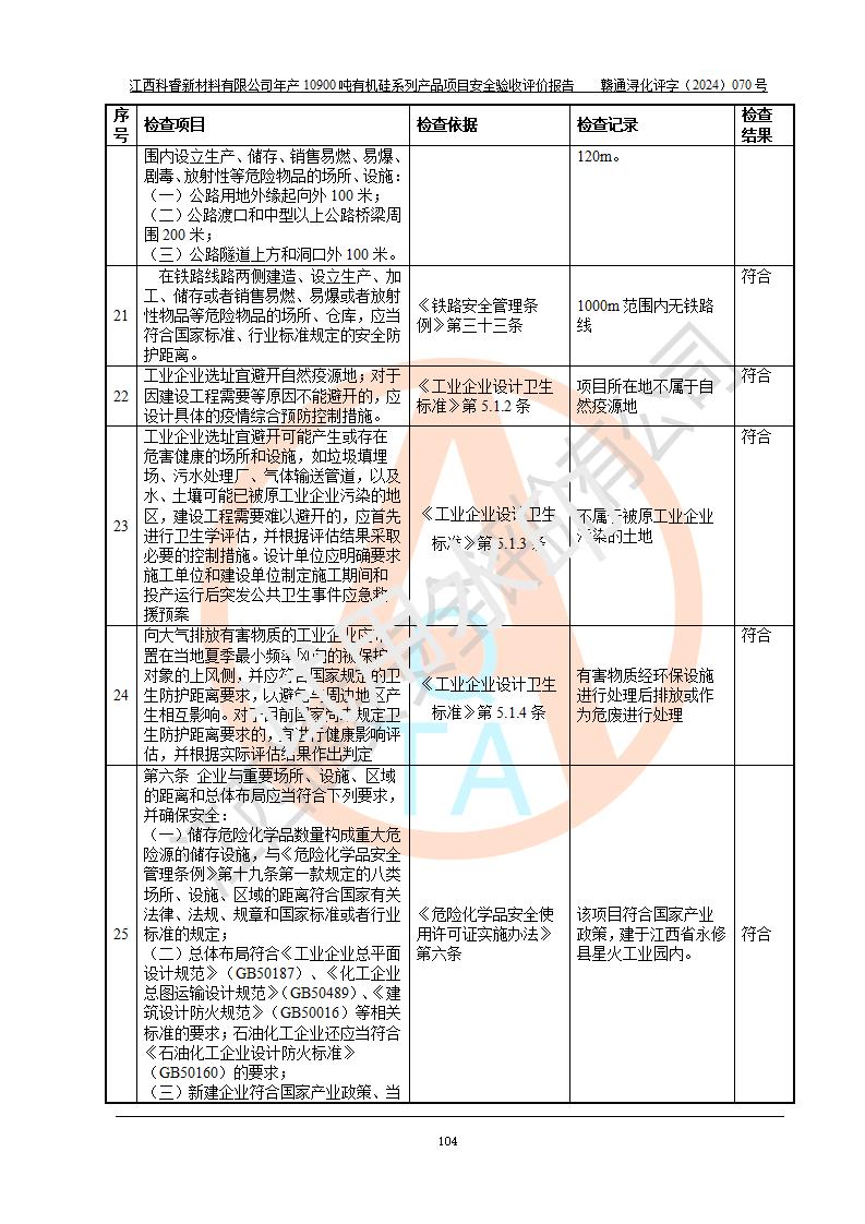 評價報告名稱 | 江西科睿新材料有限公司年產(chǎn)12900噸日化硅油等有機(jī)硅系列產(chǎn)品項(xiàng)目 (一期:年產(chǎn)10900噸日化硅油等有機(jī)硅系列)安全驗(yàn)收評價 | |||||