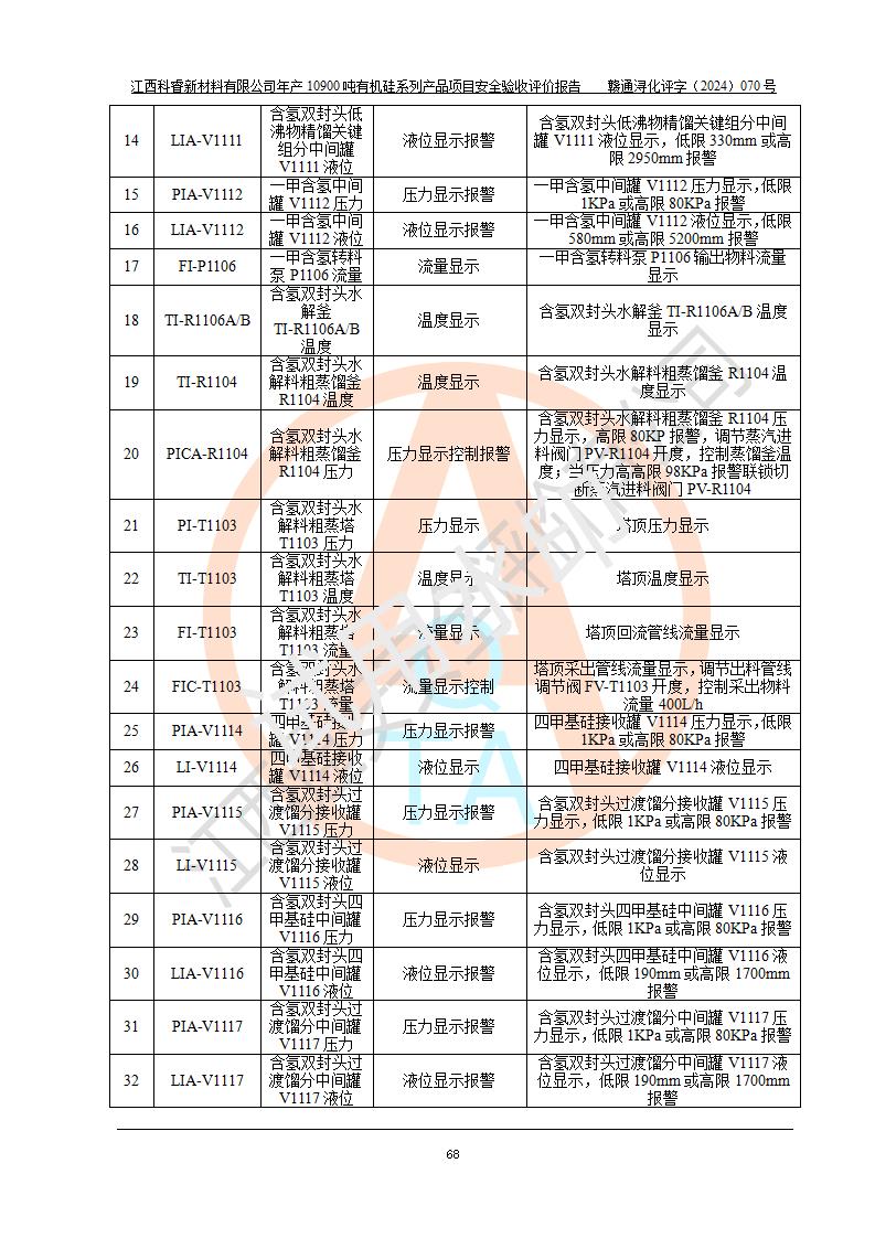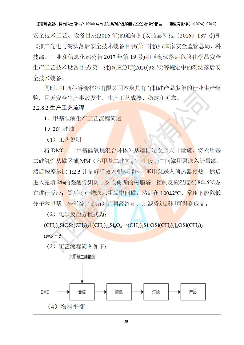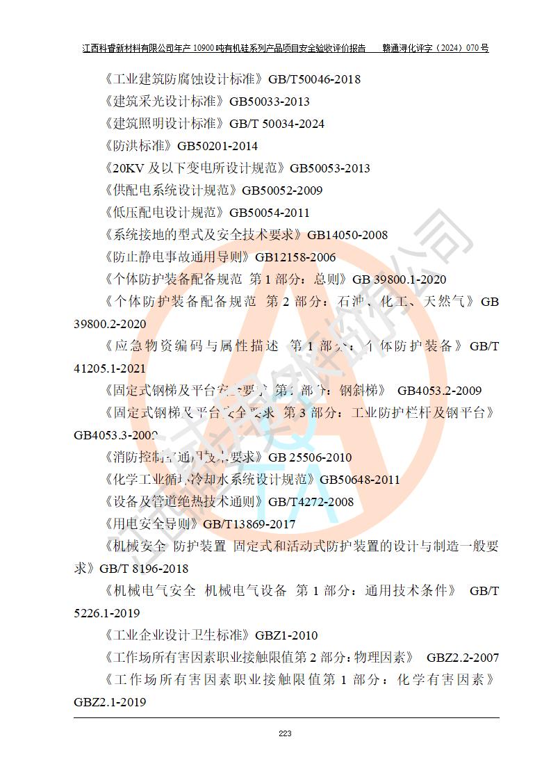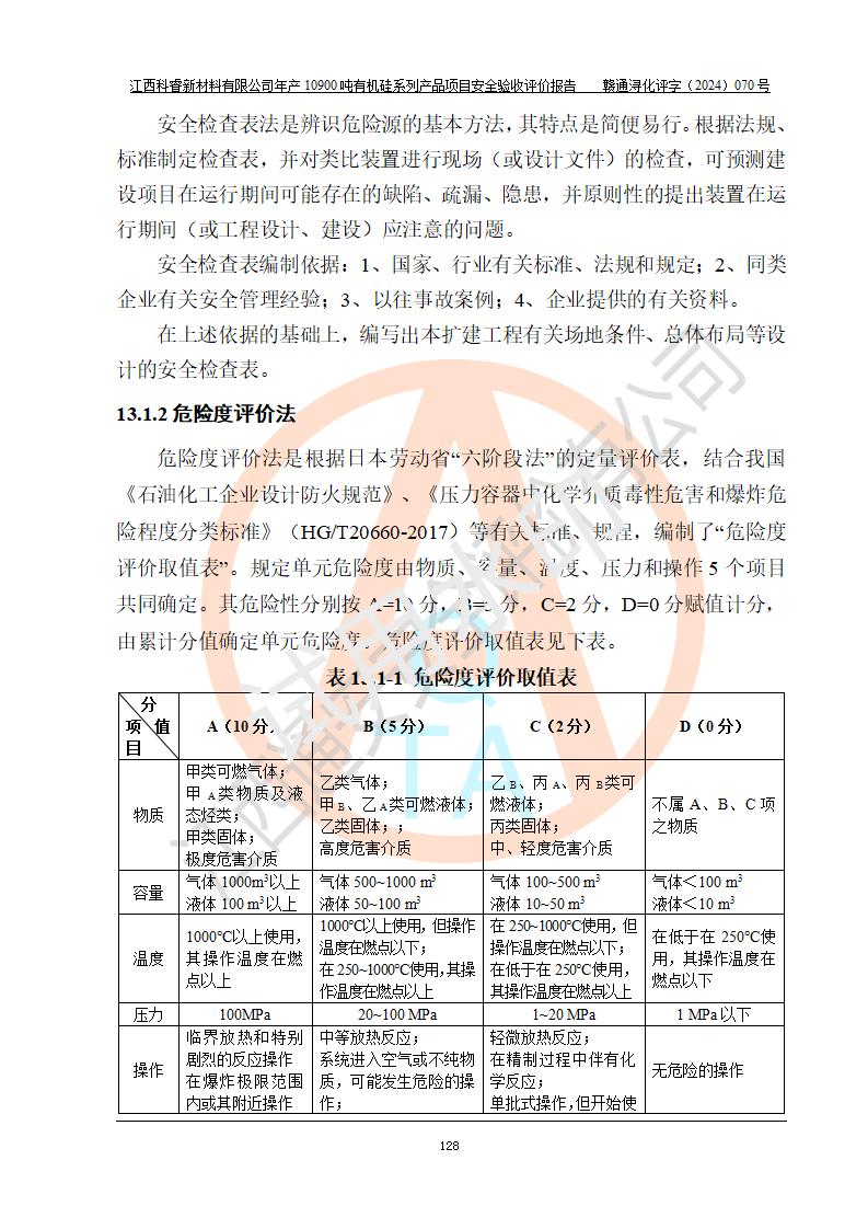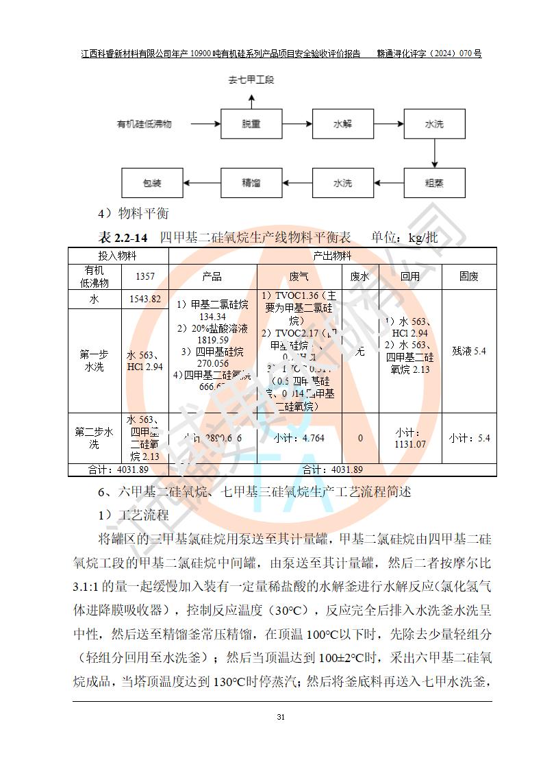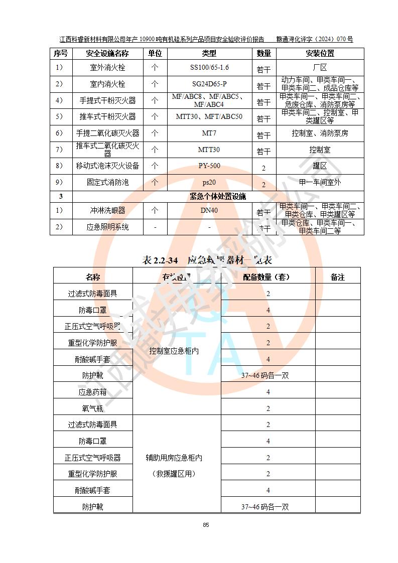 評價報告名稱 | 江西科睿新材料有限公司年產(chǎn)12900噸日化硅油等有機(jī)硅系列產(chǎn)品項(xiàng)目 (一期:年產(chǎn)10900噸日化硅油等有機(jī)硅系列)安全驗(yàn)收評價 | |||||