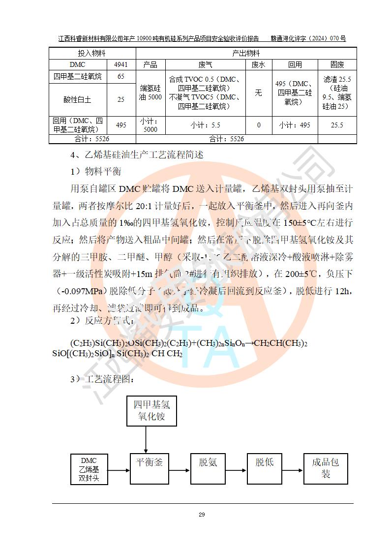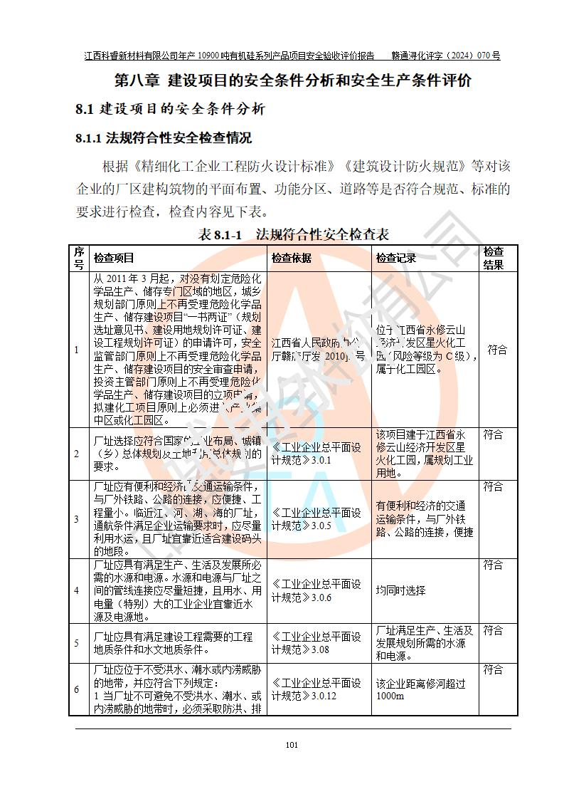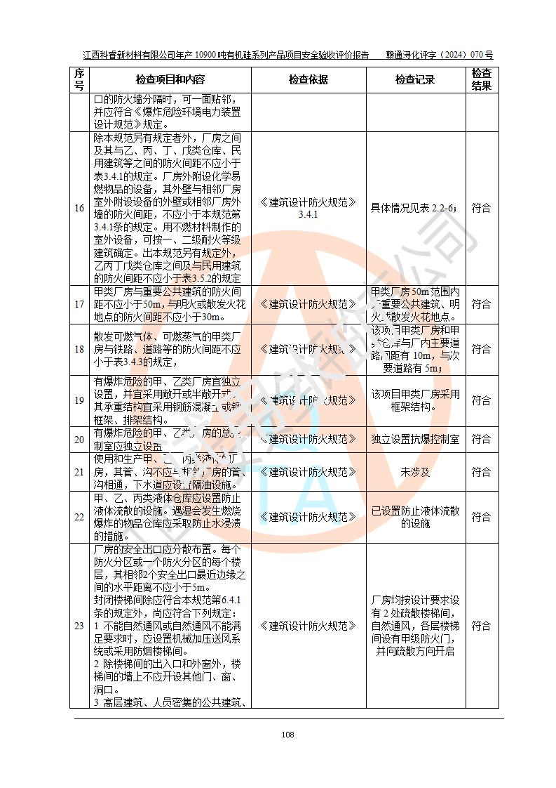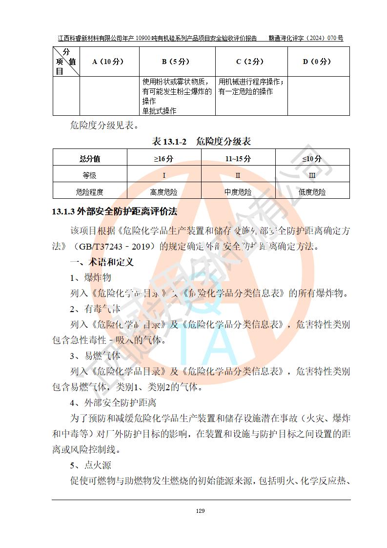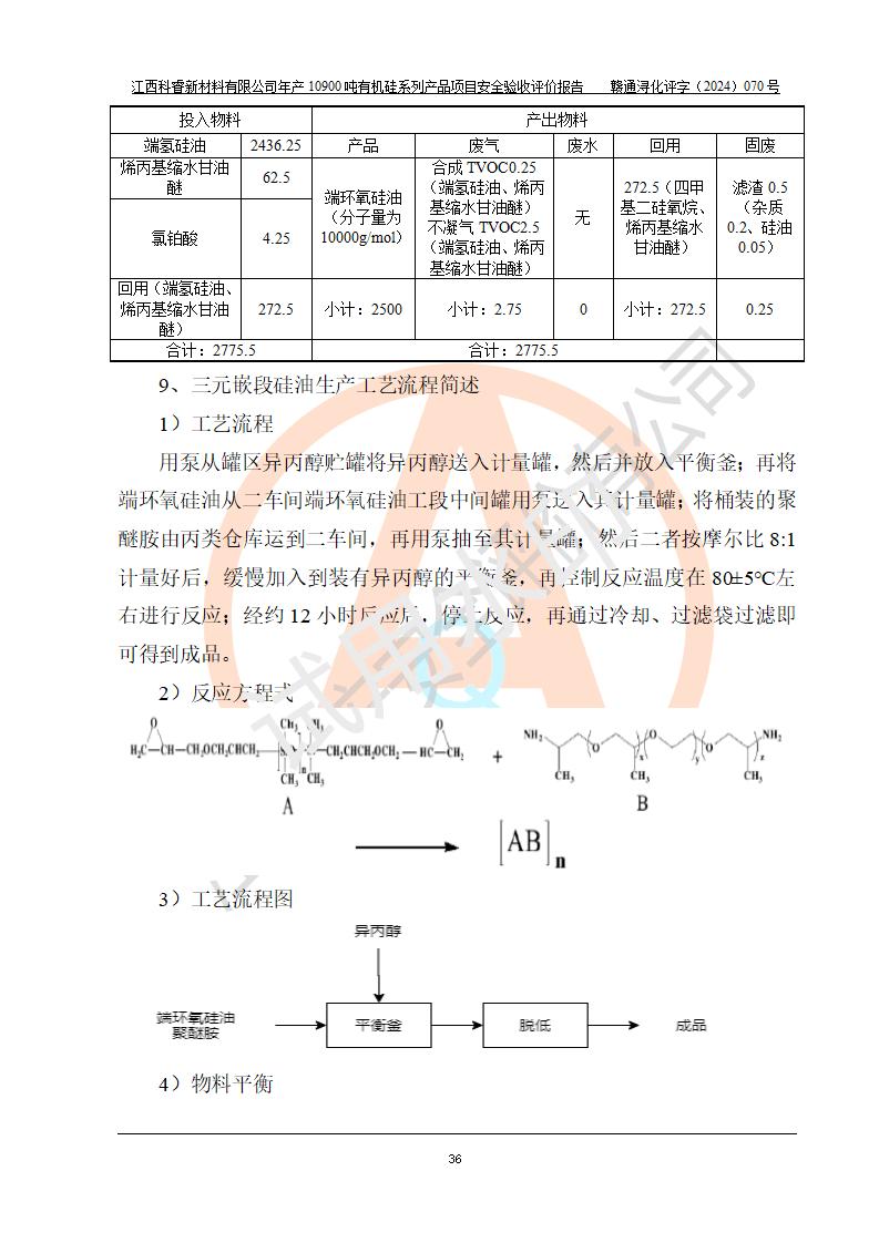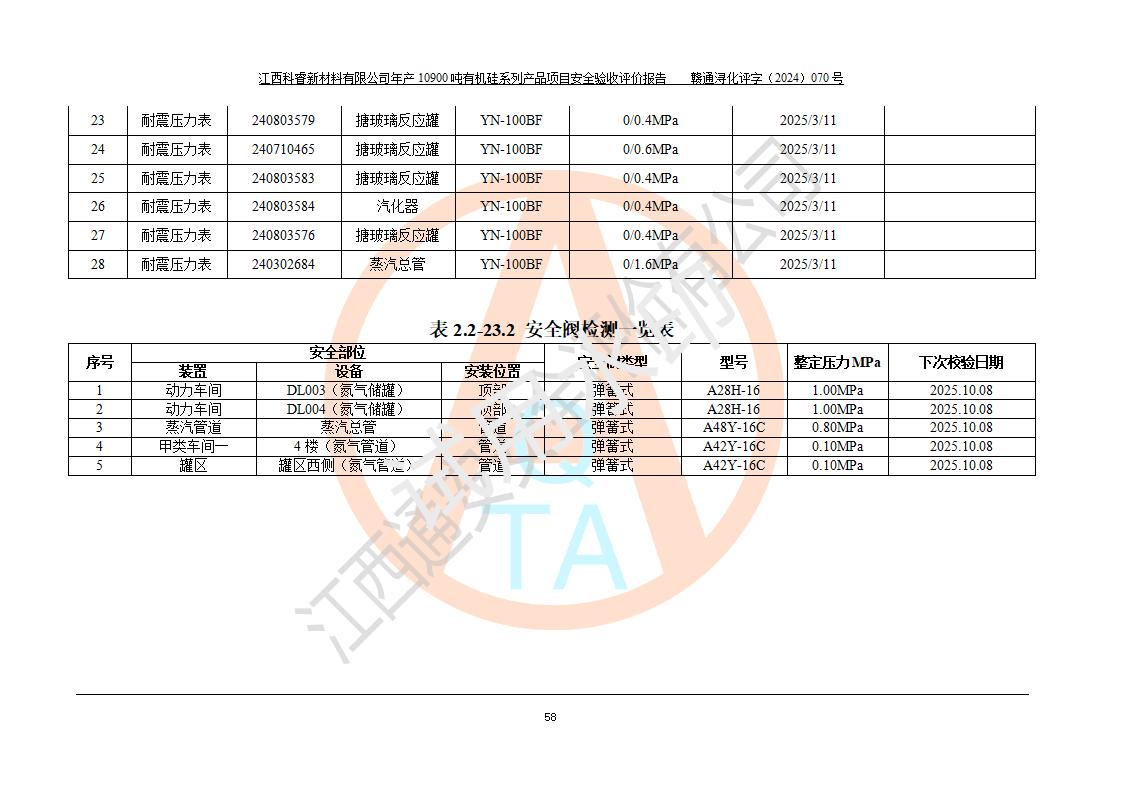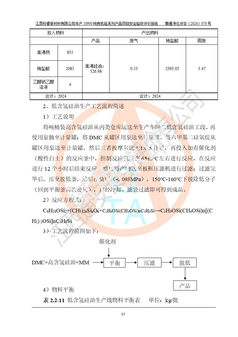 評價報告名稱 | 江西科睿新材料有限公司年產(chǎn)12900噸日化硅油等有機(jī)硅系列產(chǎn)品項(xiàng)目 (一期:年產(chǎn)10900噸日化硅油等有機(jī)硅系列)安全驗(yàn)收評價 | |||||