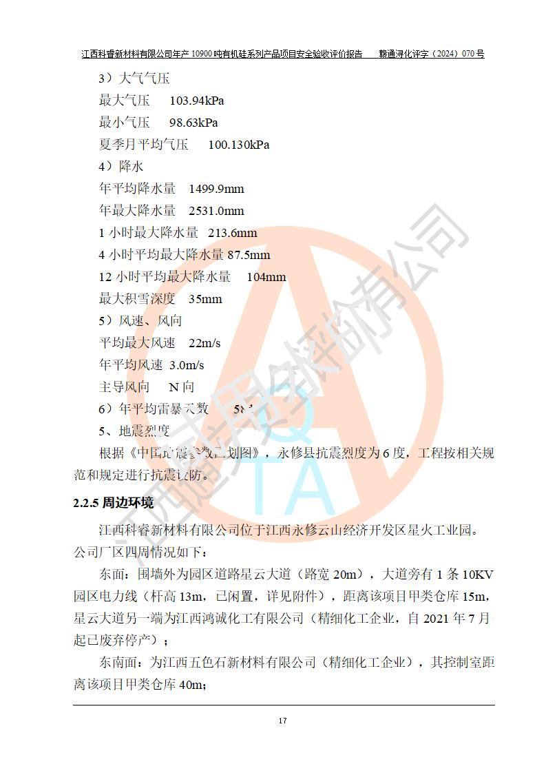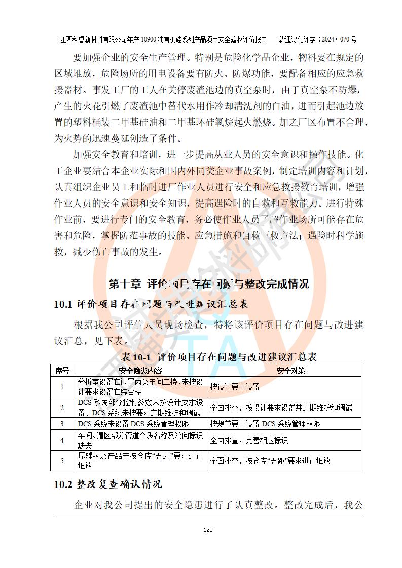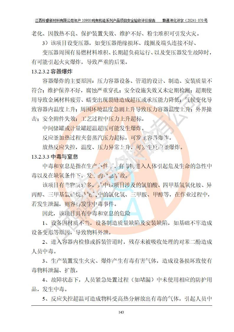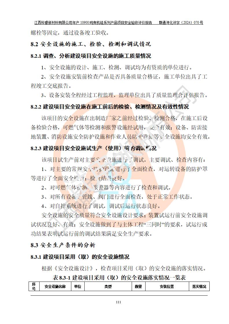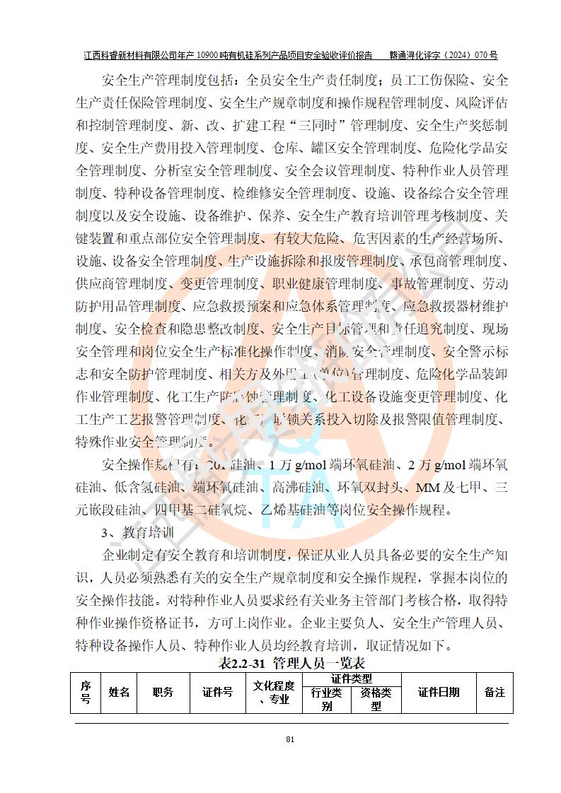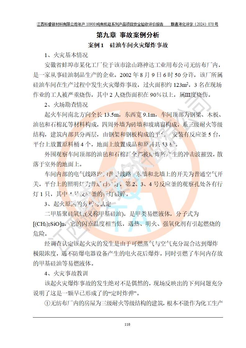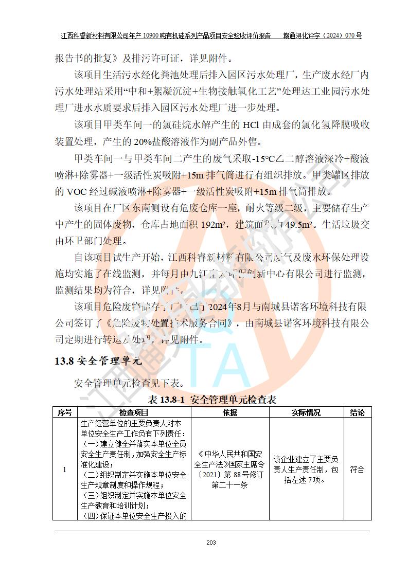 評價報告名稱 | 江西科睿新材料有限公司年產(chǎn)12900噸日化硅油等有機(jī)硅系列產(chǎn)品項(xiàng)目 (一期:年產(chǎn)10900噸日化硅油等有機(jī)硅系列)安全驗(yàn)收評價 | |||||