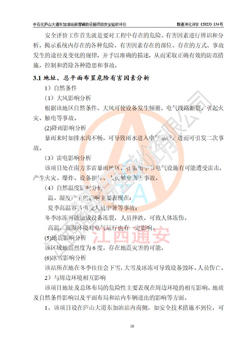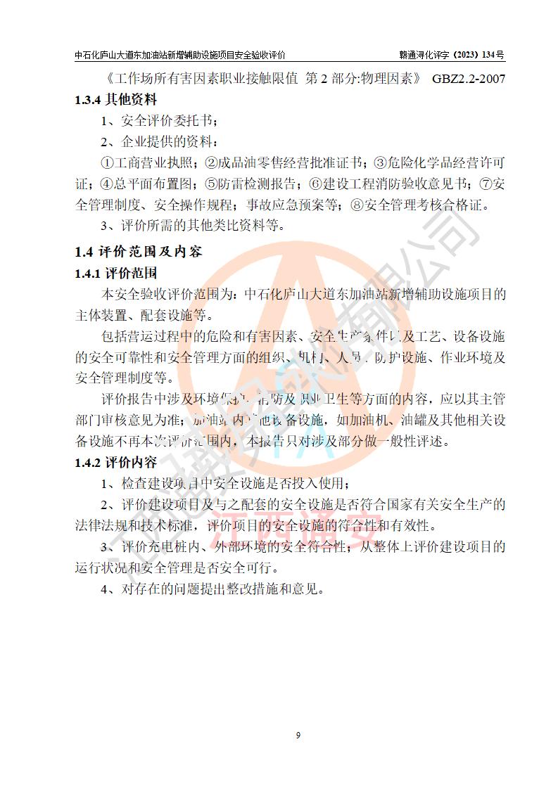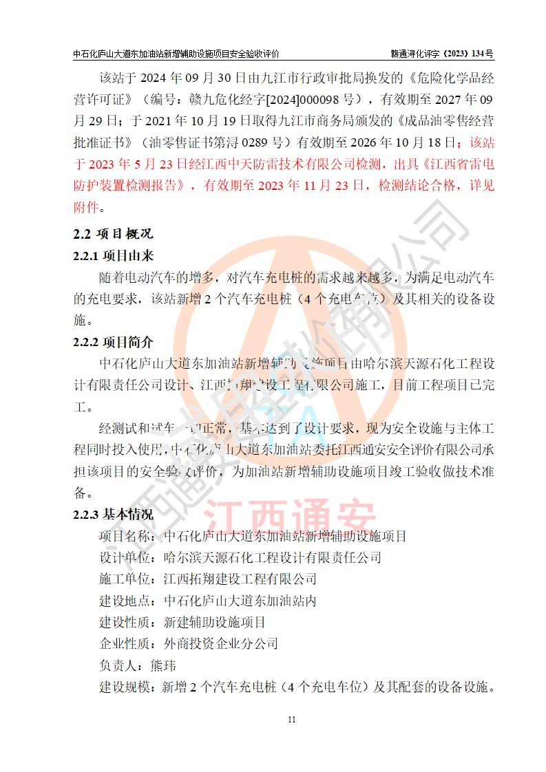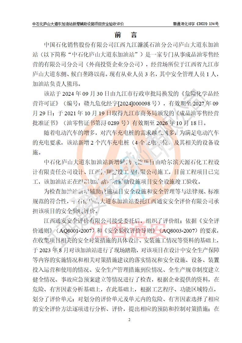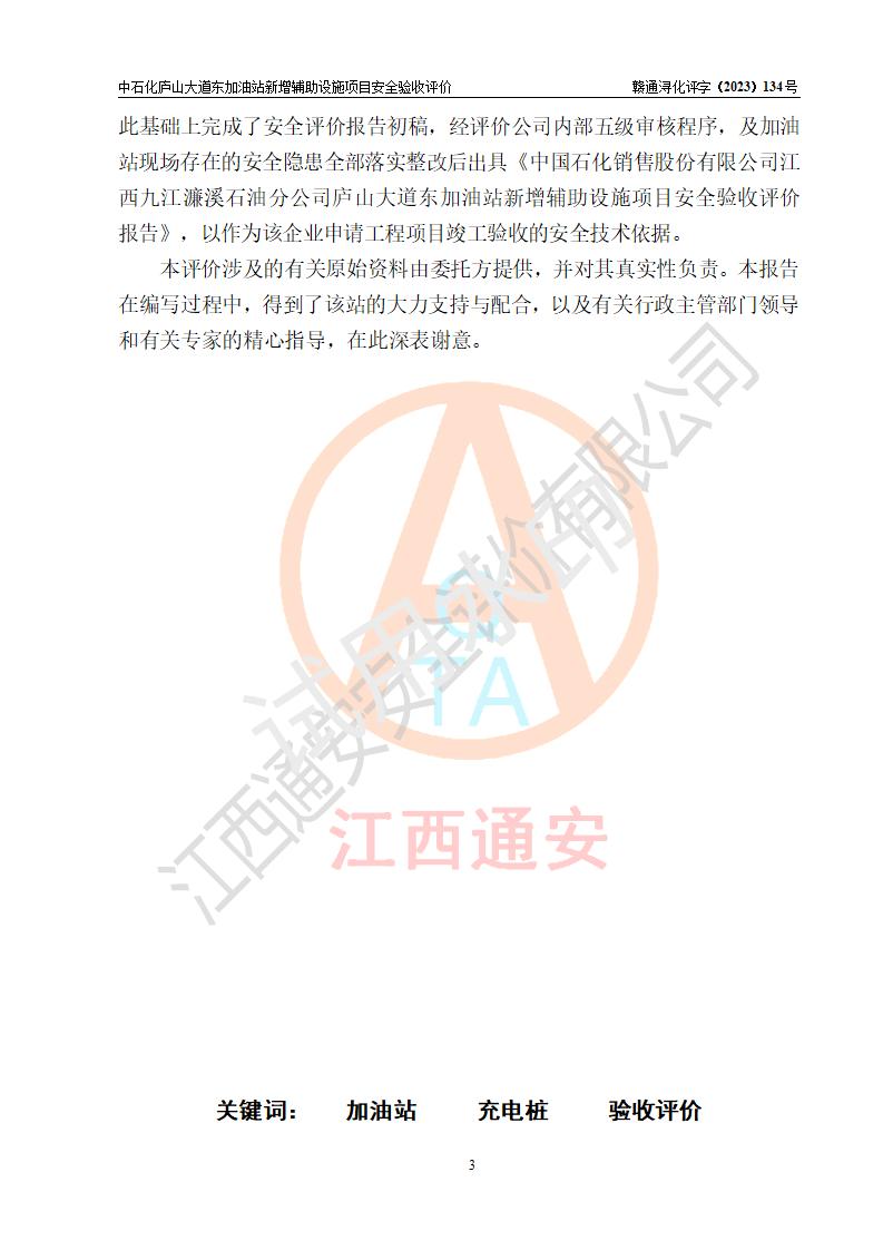 評(píng)價(jià)報(bào)告名稱 | 中國石化銷售股份有限公司江西九江濂溪石油分公司廬山大道東加油站新增輔助設(shè)施項(xiàng)目安全驗(yàn)收評(píng)價(jià)報(bào)告 | |||