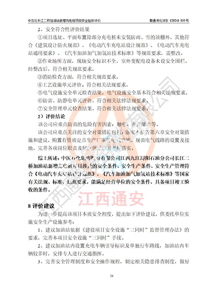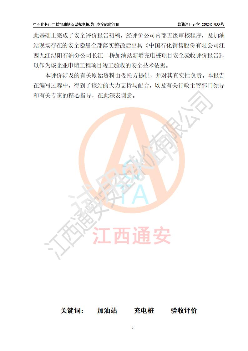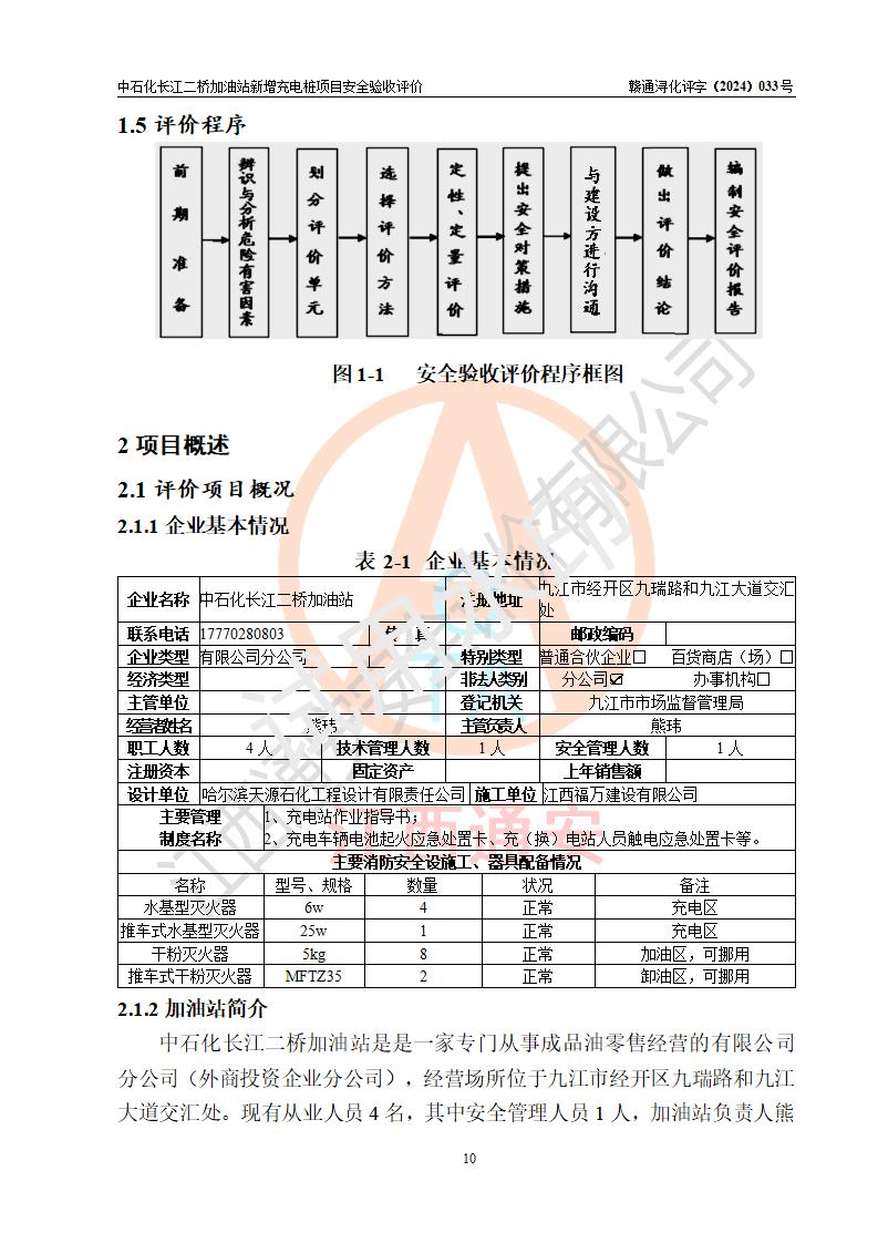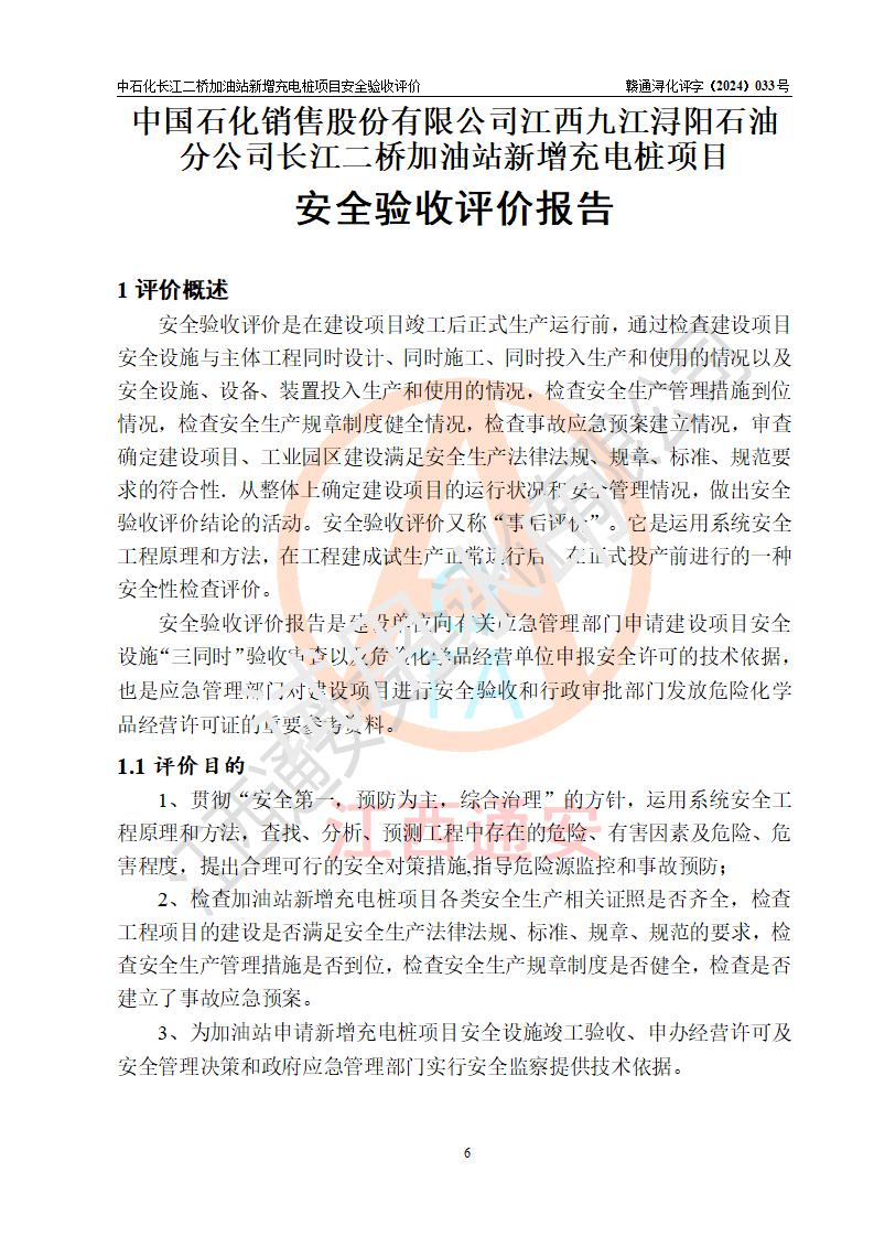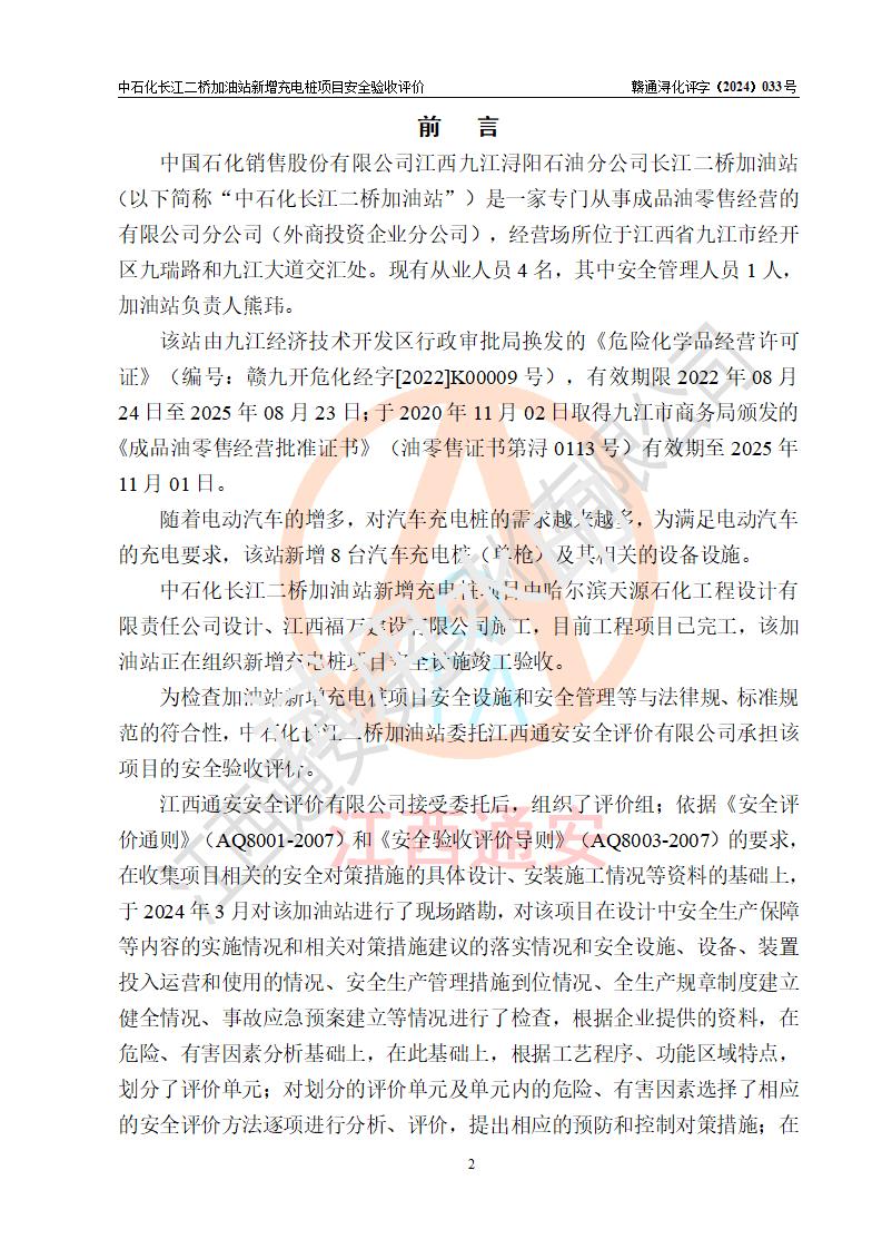 中國石化銷售股份有限公司江西九江潯陽石油分公司長江二橋加油站新增充電樁項(xiàng)目安全驗(yàn)收評價(jià)報(bào)告