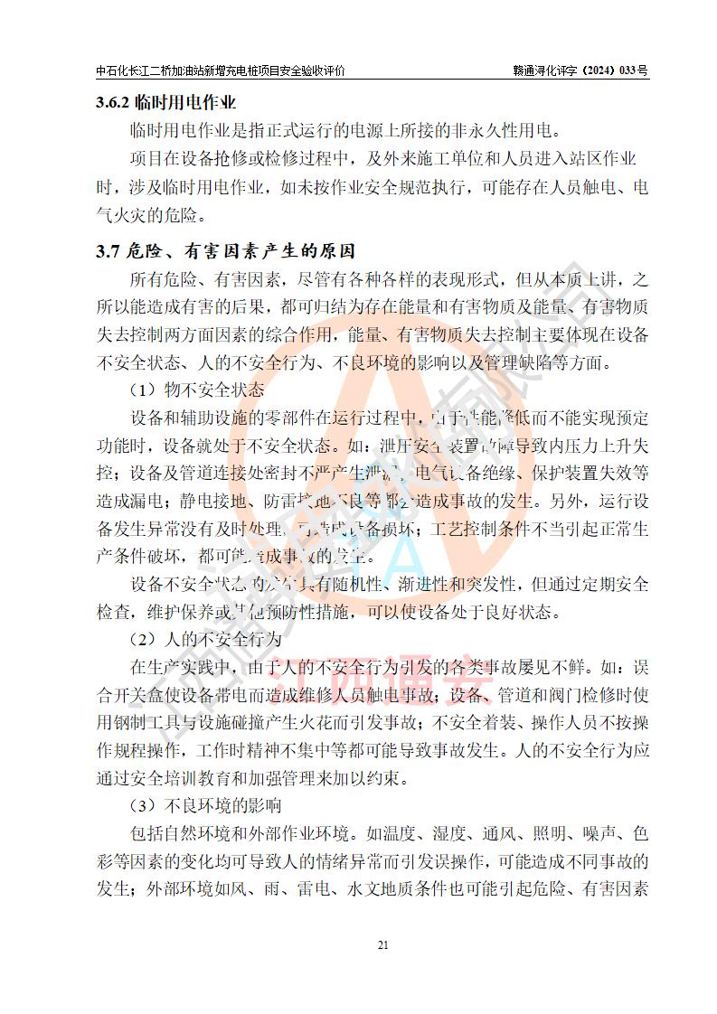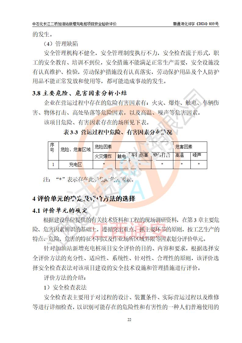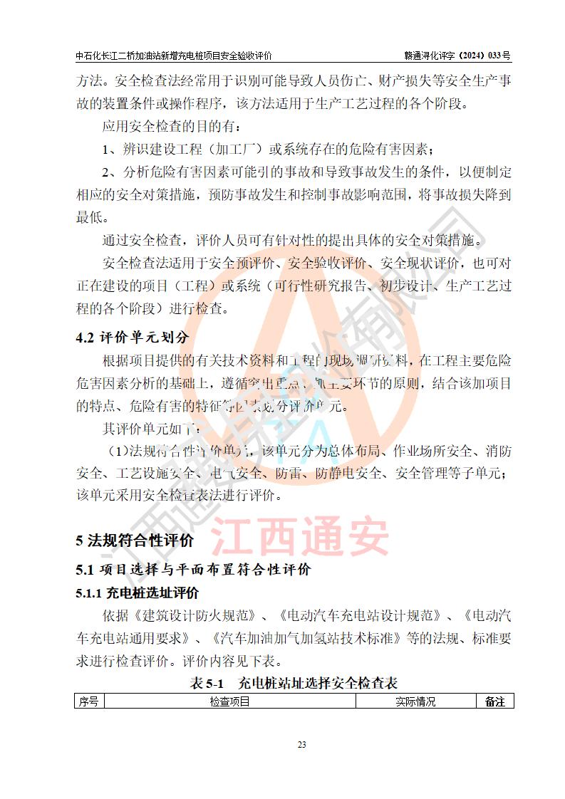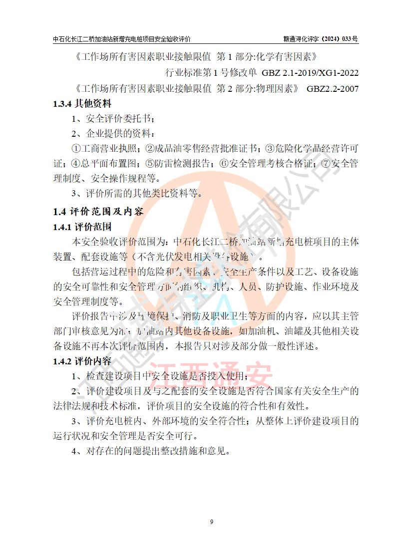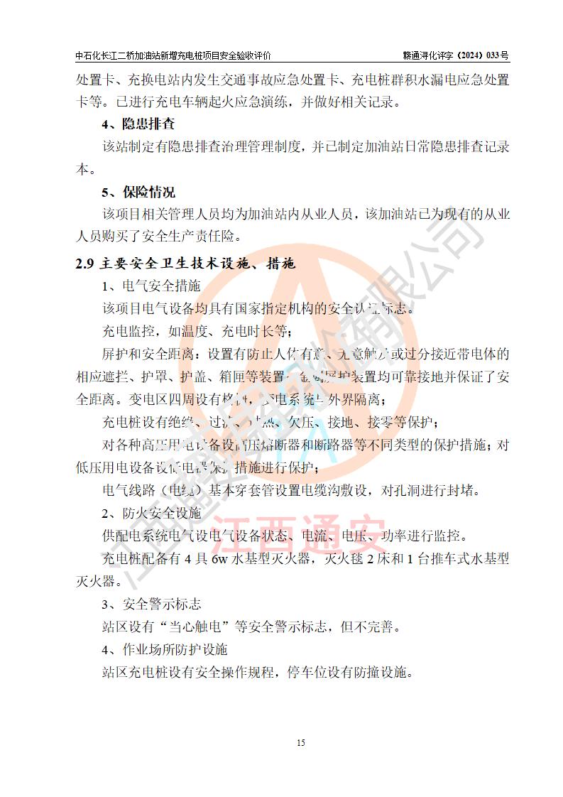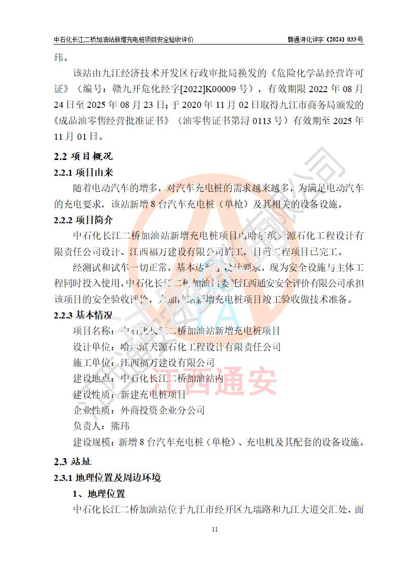 中國石化銷售股份有限公司江西九江潯陽石油分公司長江二橋加油站新增充電樁項(xiàng)目安全驗(yàn)收評價(jià)報(bào)告