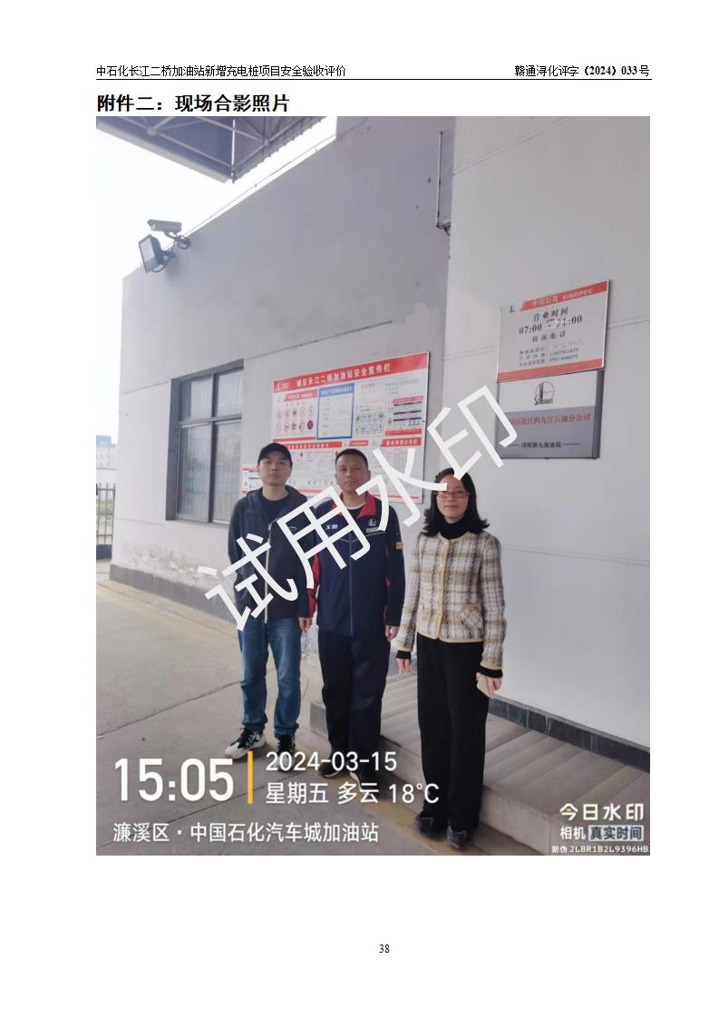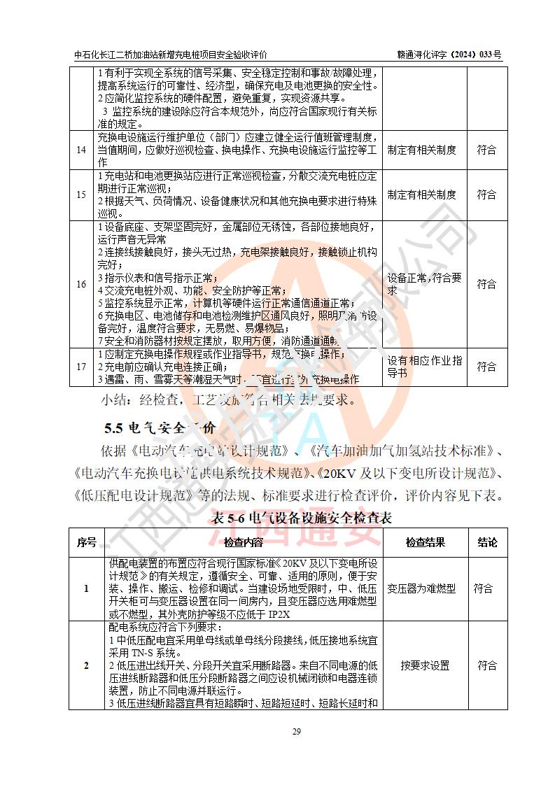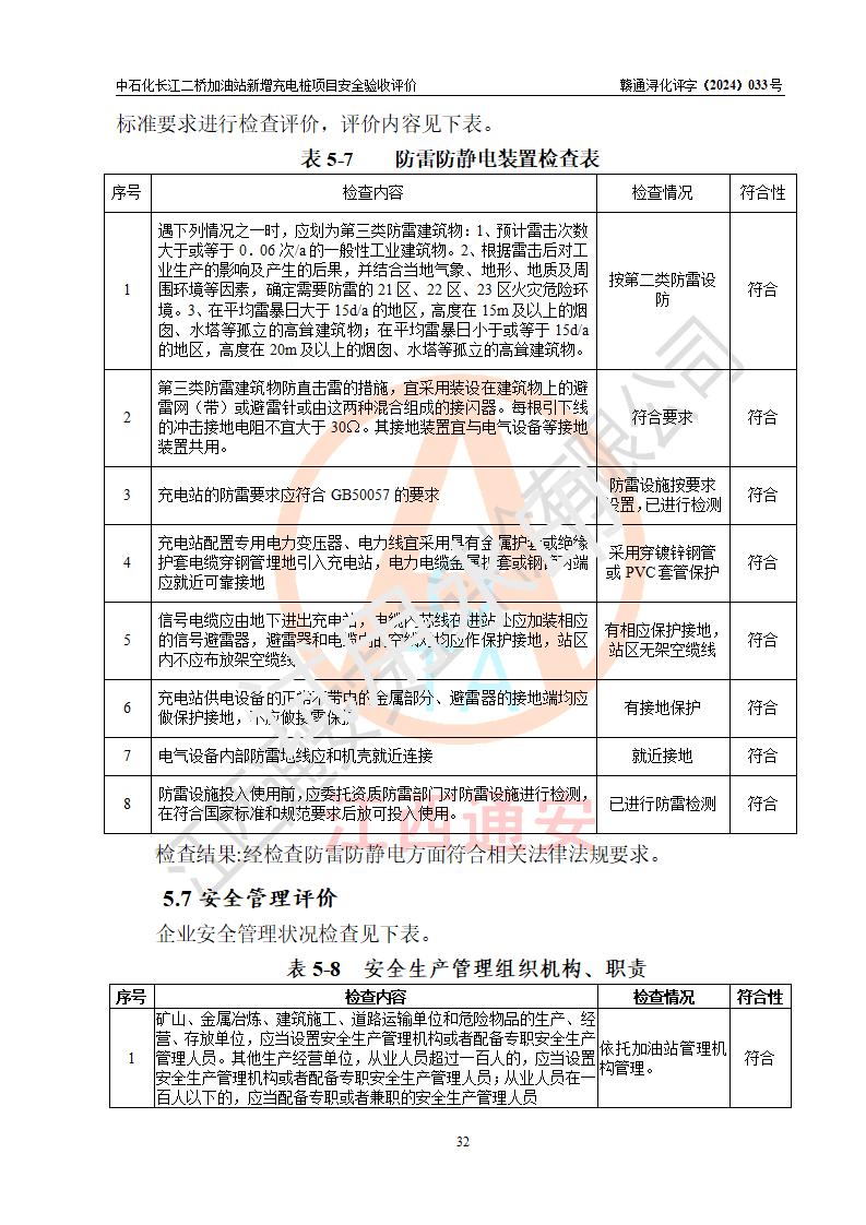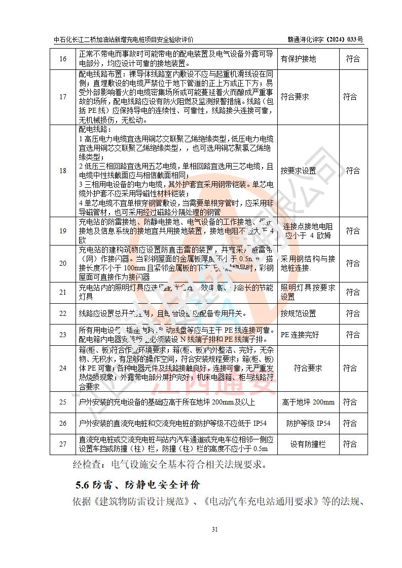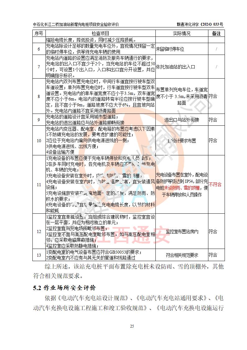 中國石化銷售股份有限公司江西九江潯陽石油分公司長江二橋加油站新增充電樁項(xiàng)目涉及的安全條件、安全生產(chǎn)條件、安全生產(chǎn)管理符合《電動(dòng)汽車充電站設(shè)計(jì)規(guī)范、《汽車加油加氣加氫站技術(shù)標(biāo)準(zhǔn)等**有關(guān)法規(guī)、標(biāo)準(zhǔn)、規(guī)范要求,能滿足經(jīng)營單位的安全條件,具備項(xiàng)目竣工驗(yàn)收的條件。
