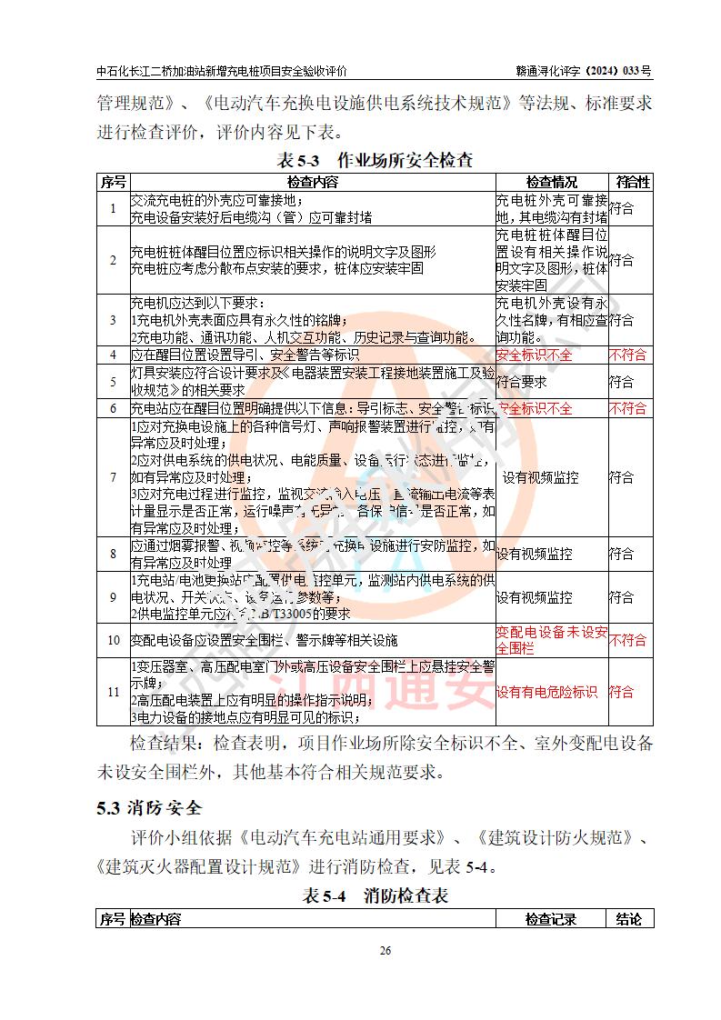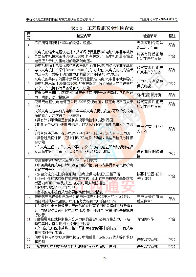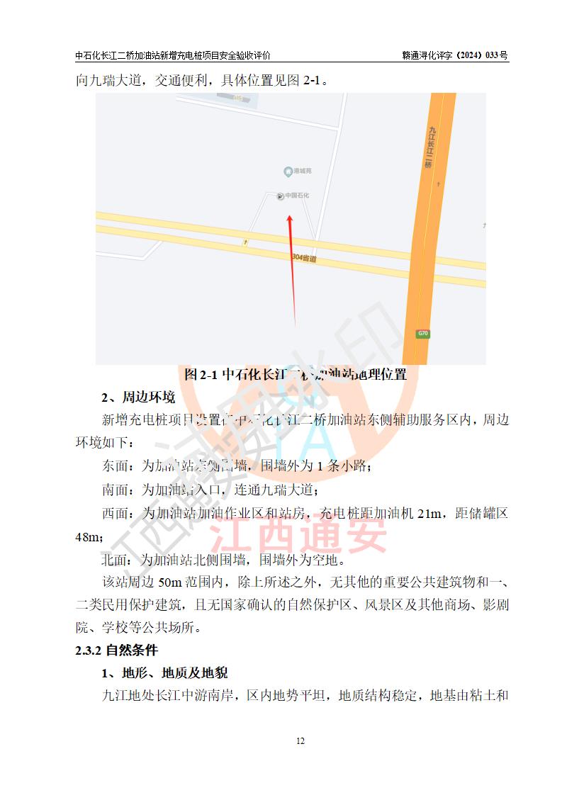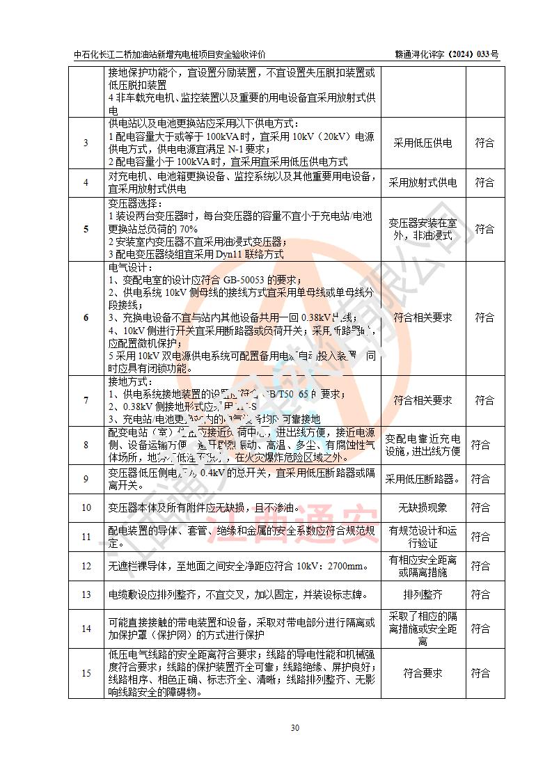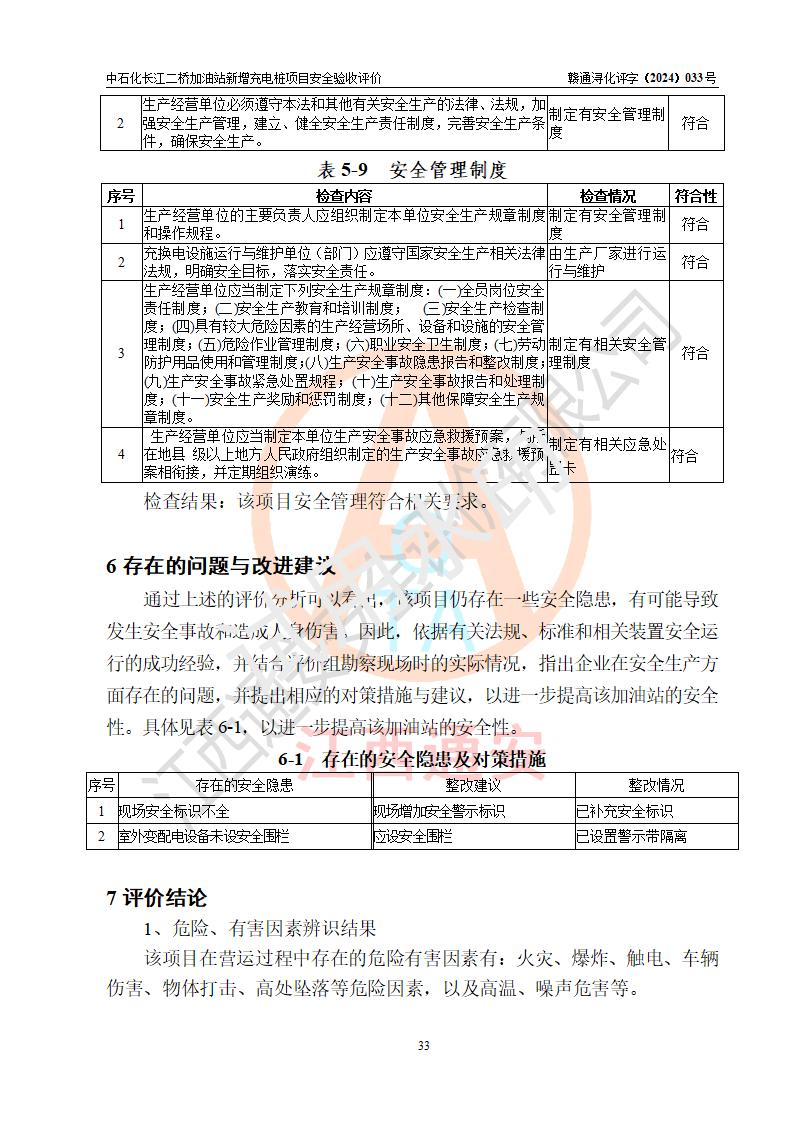 中國石化銷售股份有限公司江西九江潯陽石油分公司長江二橋加油站新增充電樁項(xiàng)目涉及的安全條件、安全生產(chǎn)條件、安全生產(chǎn)管理符合《電動(dòng)汽車充電站設(shè)計(jì)規(guī)范、《汽車加油加氣加氫站技術(shù)標(biāo)準(zhǔn)等**有關(guān)法規(guī)、標(biāo)準(zhǔn)、規(guī)范要求,能滿足經(jīng)營單位的安全條件,具備項(xiàng)目竣工驗(yàn)收的條件。