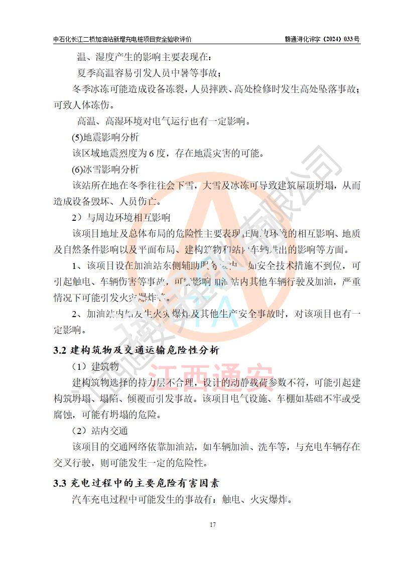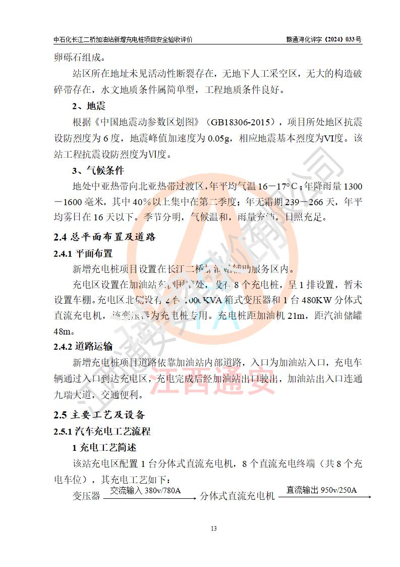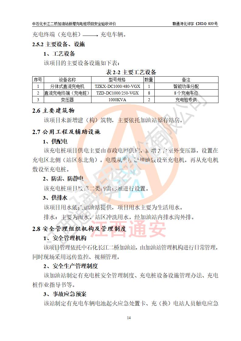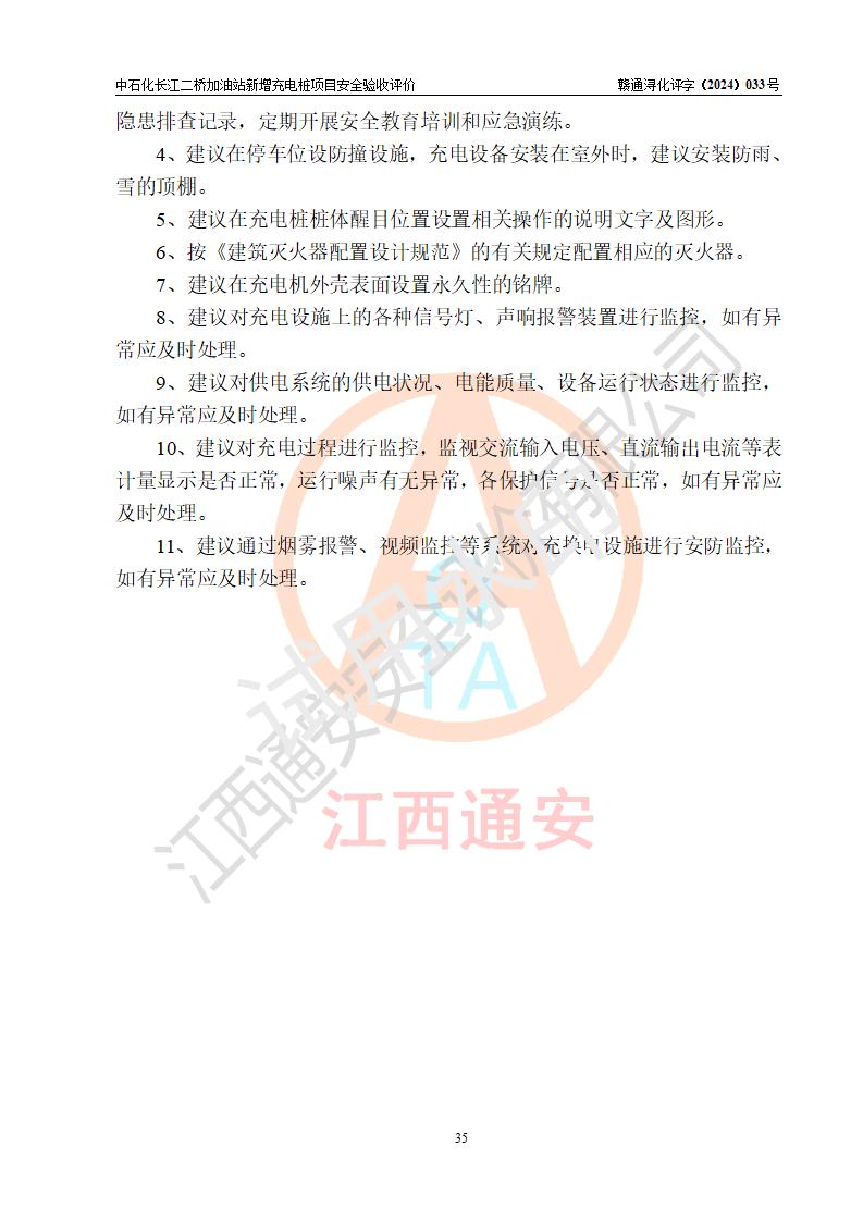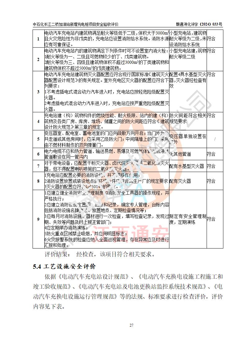 中國石化銷售股份有限公司江西九江潯陽石油分公司長江二橋加油站新增充電樁項(xiàng)目涉及的安全條件、安全生產(chǎn)條件、安全生產(chǎn)管理符合《電動(dòng)汽車充電站設(shè)計(jì)規(guī)范、《汽車加油加氣加氫站技術(shù)標(biāo)準(zhǔn)等**有關(guān)法規(guī)、標(biāo)準(zhǔn)、規(guī)范要求,能滿足經(jīng)營單位的安全條件,具備項(xiàng)目竣工驗(yàn)收的條件。