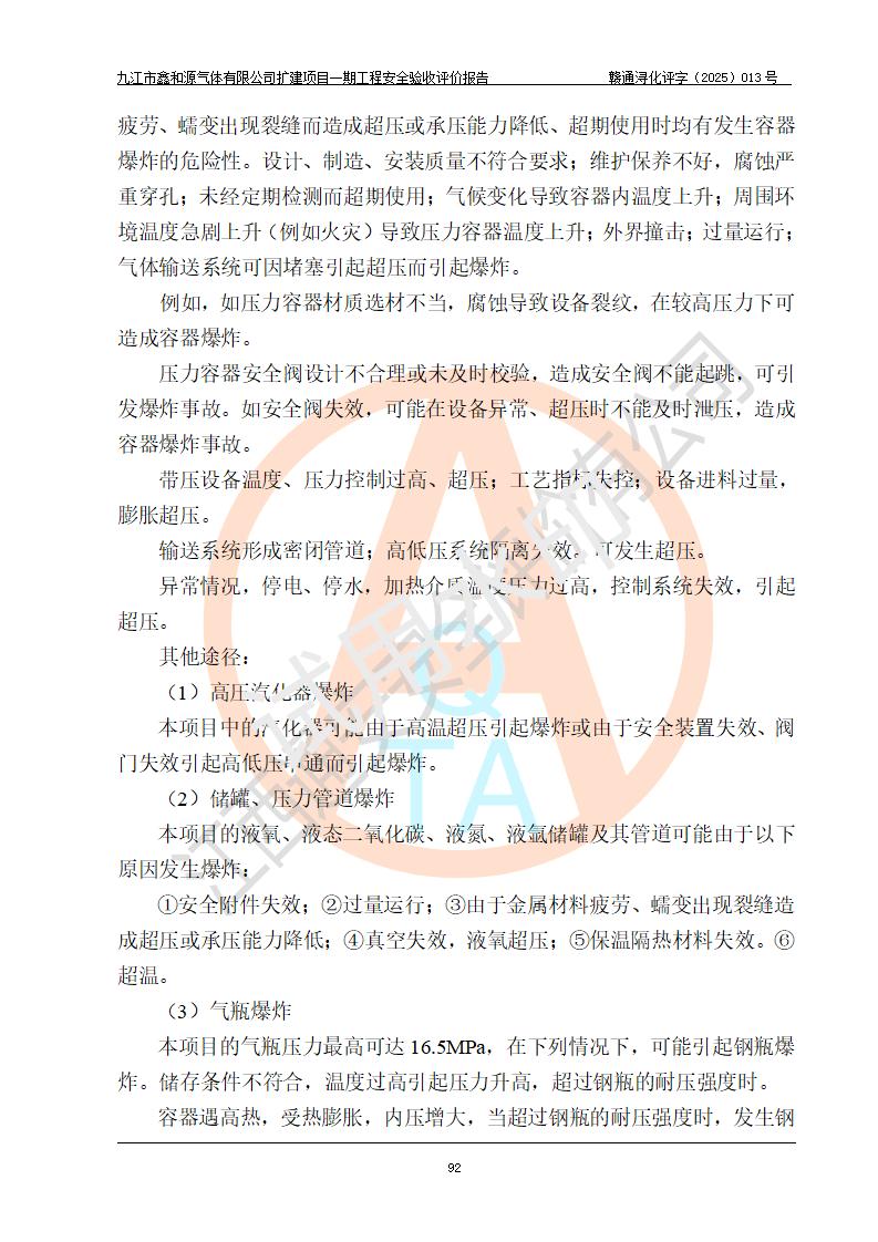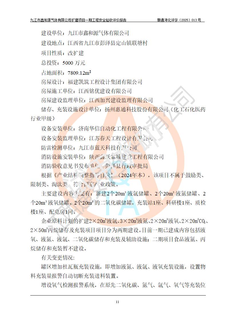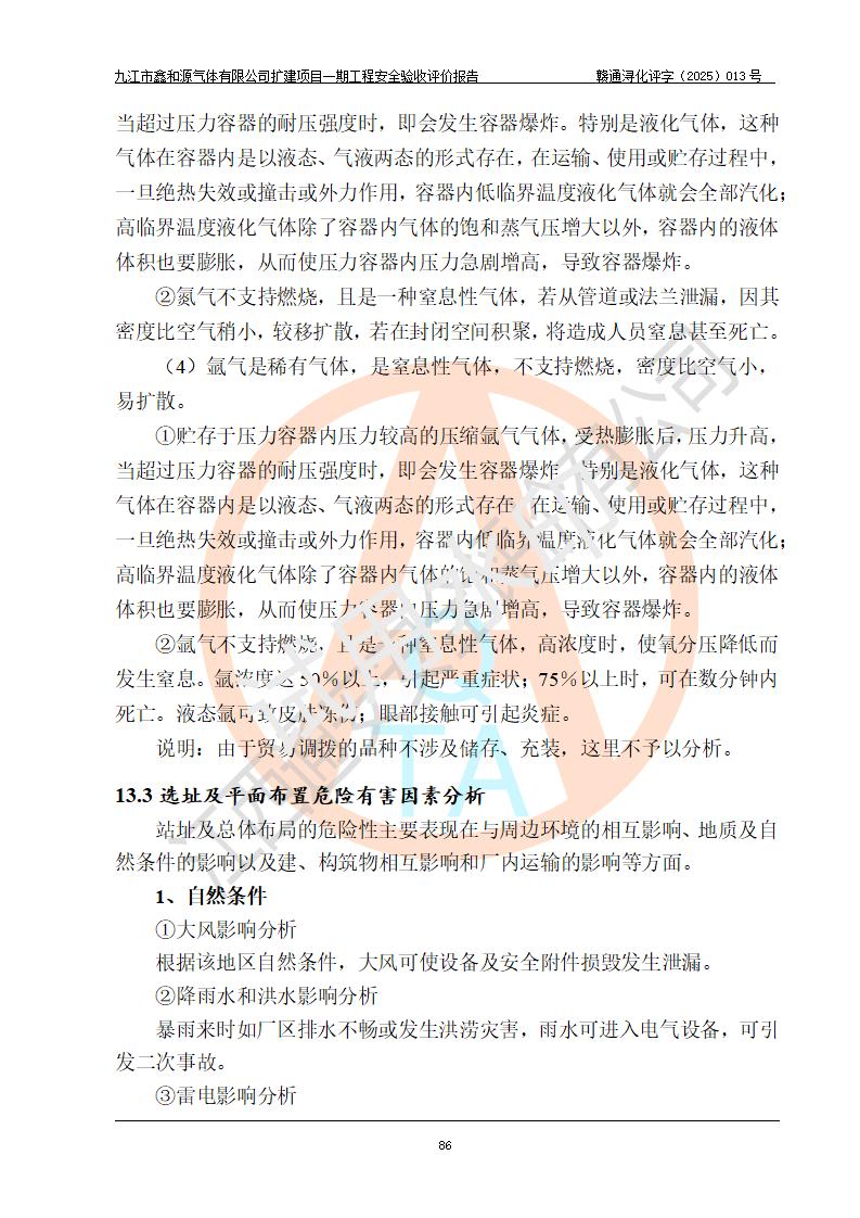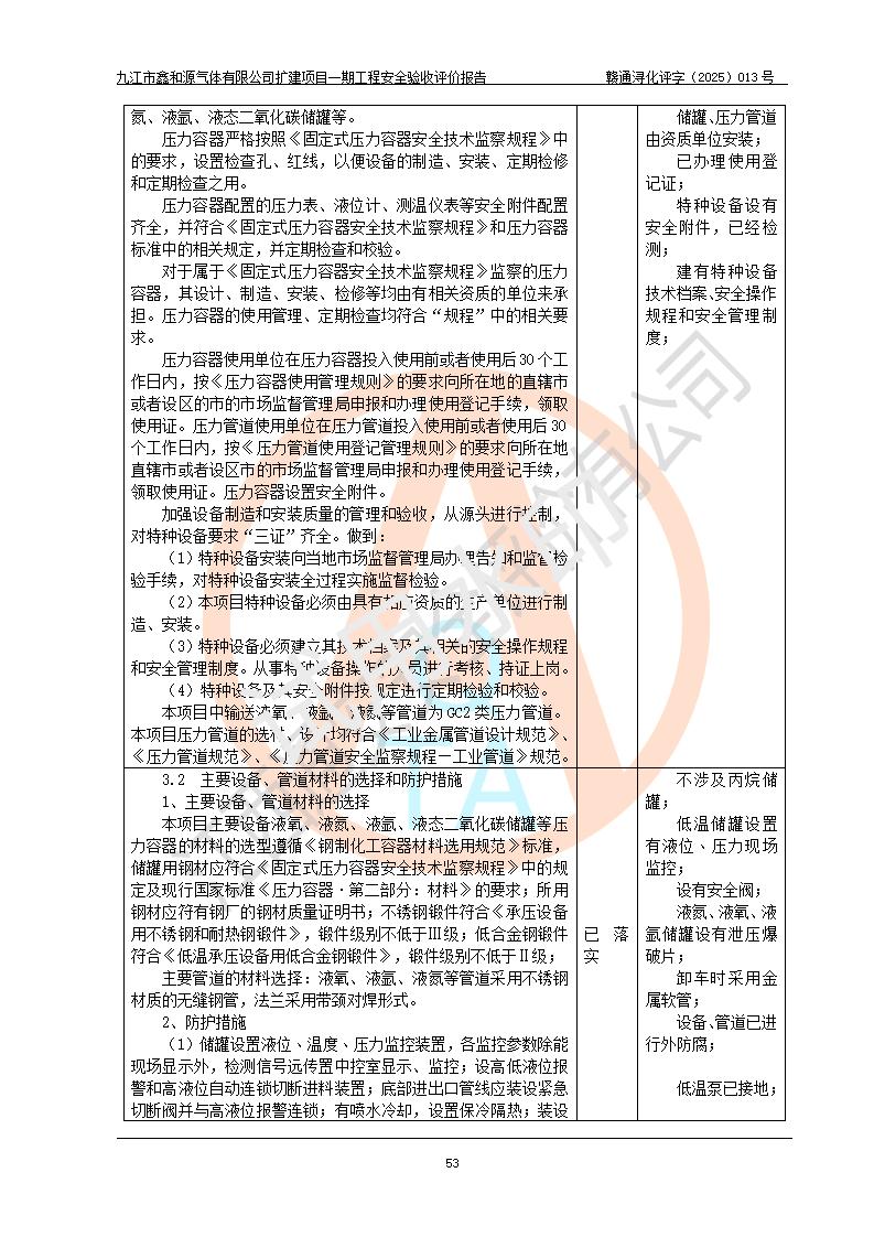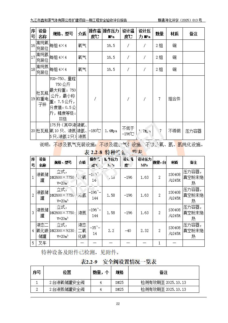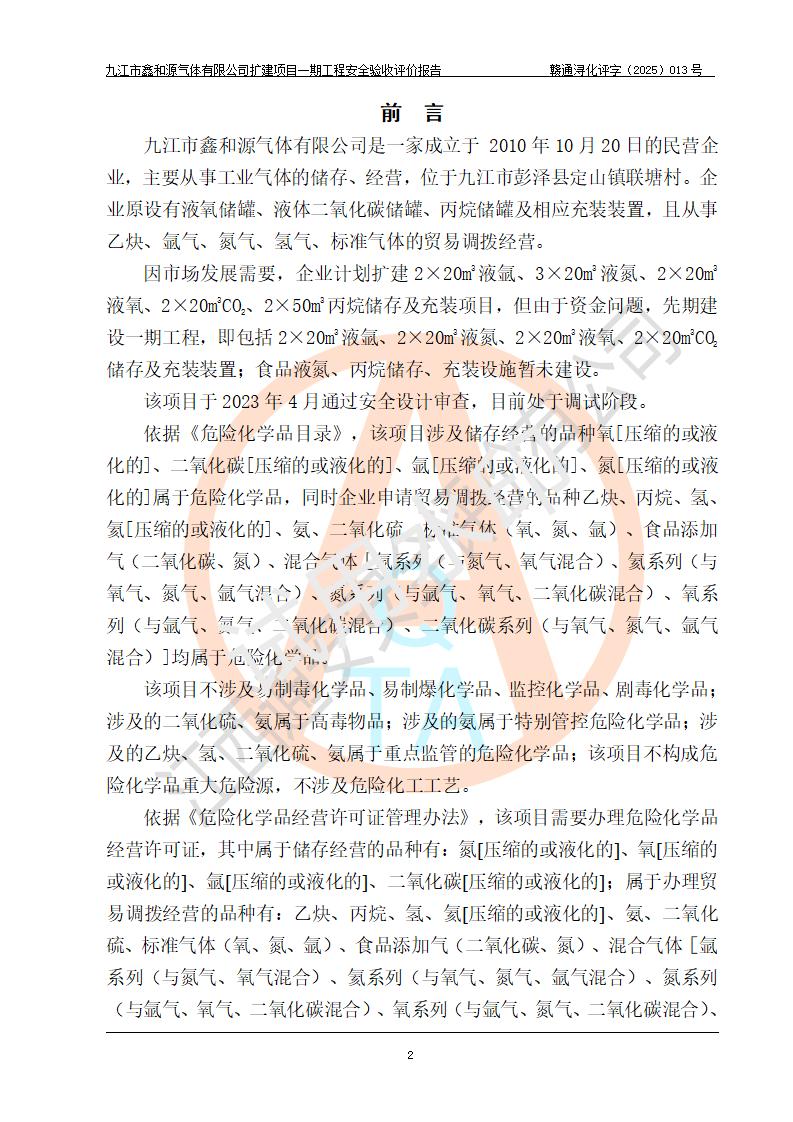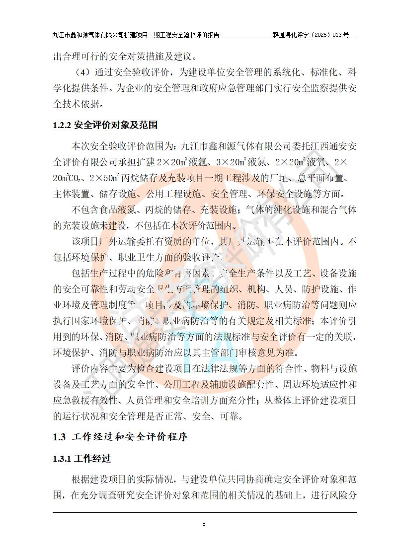評價報告名稱 | 九江市鑫和源氣體有限公司擴(kuò)建2×20m3液氬、3×20m3液氮、2×20m3液氧、2×20m3CO2、2×50m3丙烷儲存及充裝項目一期工程安全驗收評價報告 | |||||