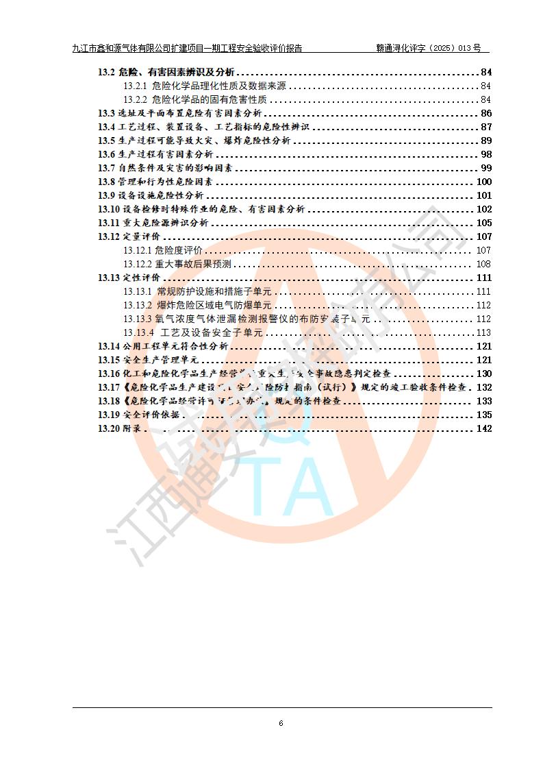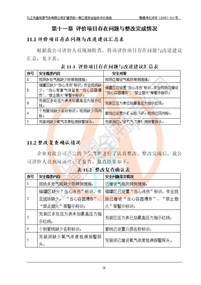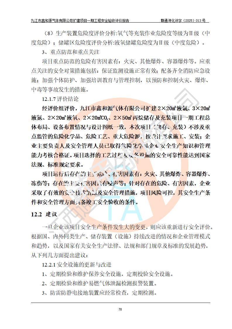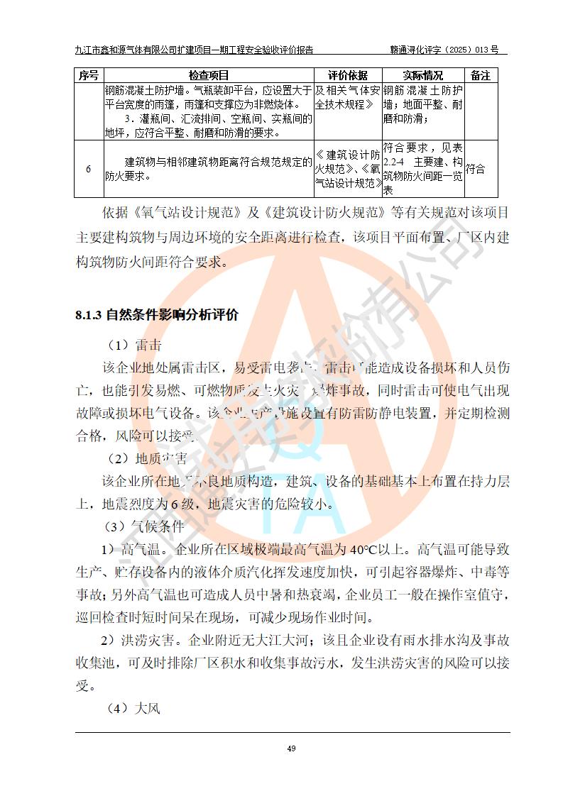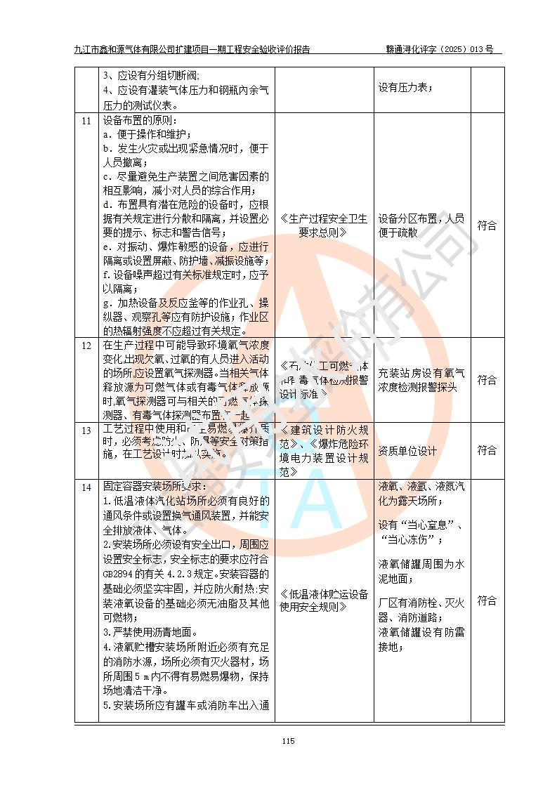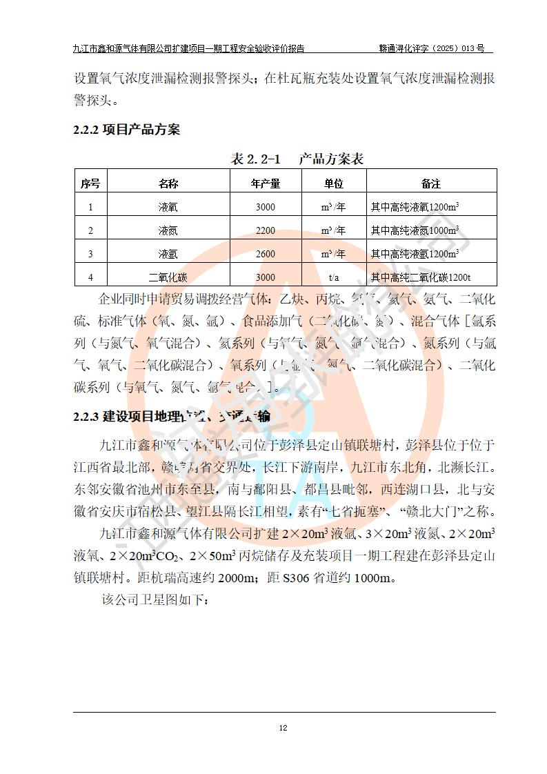 評價報告名稱 | 九江市鑫和源氣體有限公司擴(kuò)建2×20m3液氬、3×20m3液氮、2×20m3液氧、2×20m3CO2、2×50m3丙烷儲存及充裝項目一期工程安全驗收評價報告 | |||||