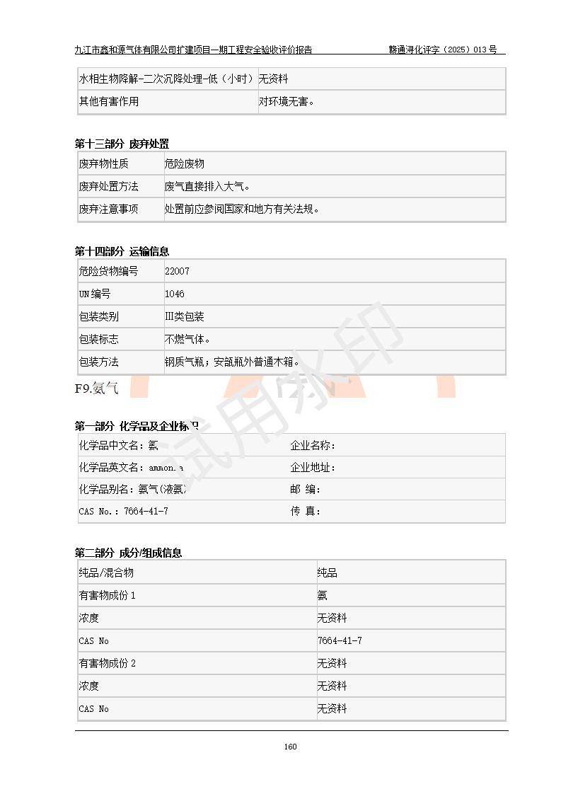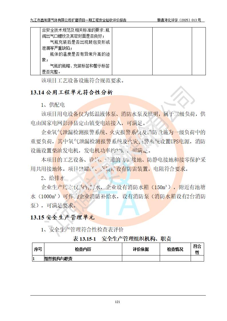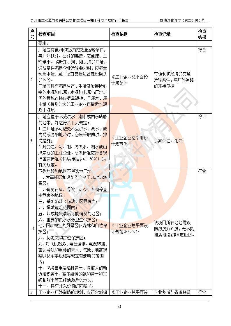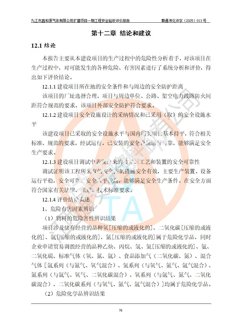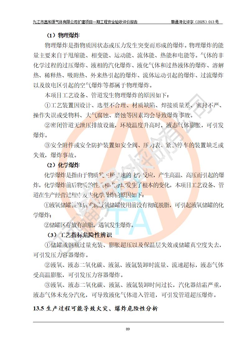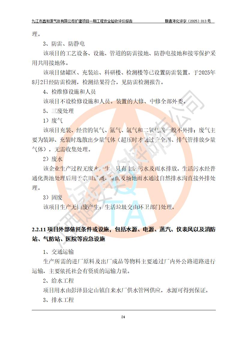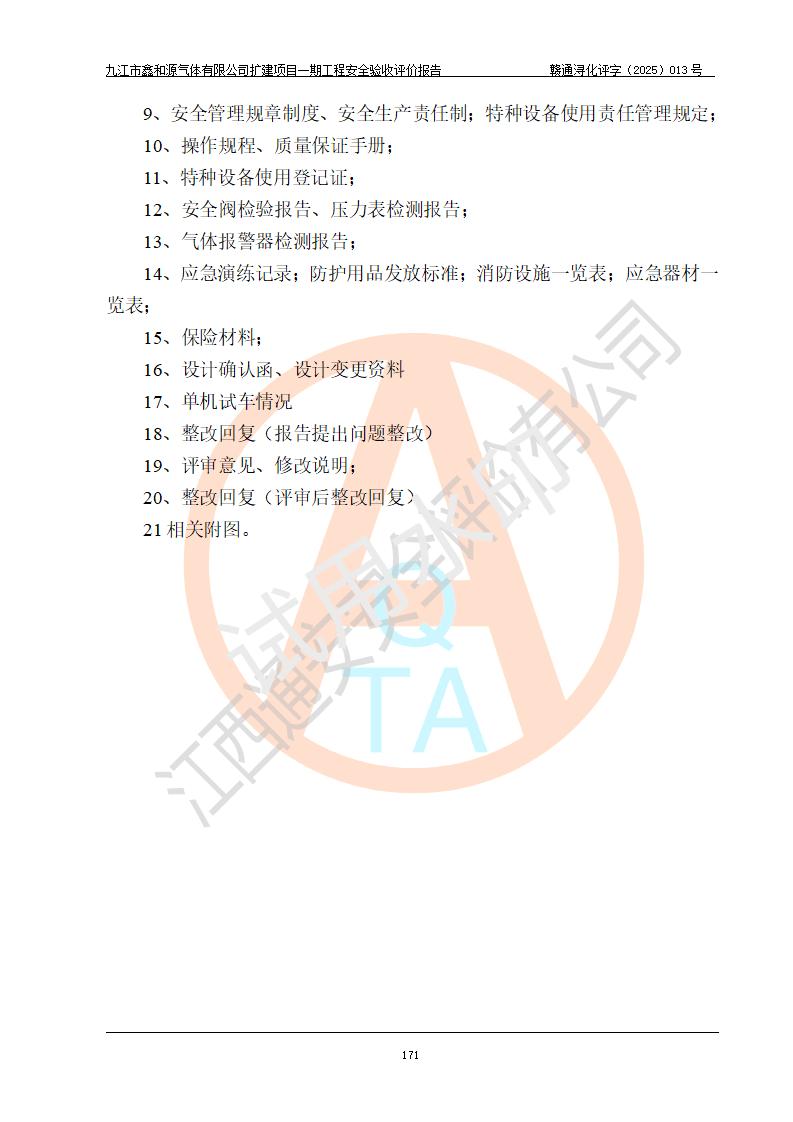 評價報告名稱 | 九江市鑫和源氣體有限公司擴(kuò)建2×20m3液氬、3×20m3液氮、2×20m3液氧、2×20m3CO2、2×50m3丙烷儲存及充裝項目一期工程安全驗收評價報告 | |||||