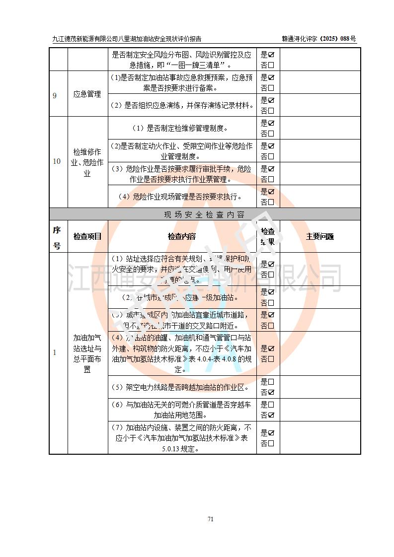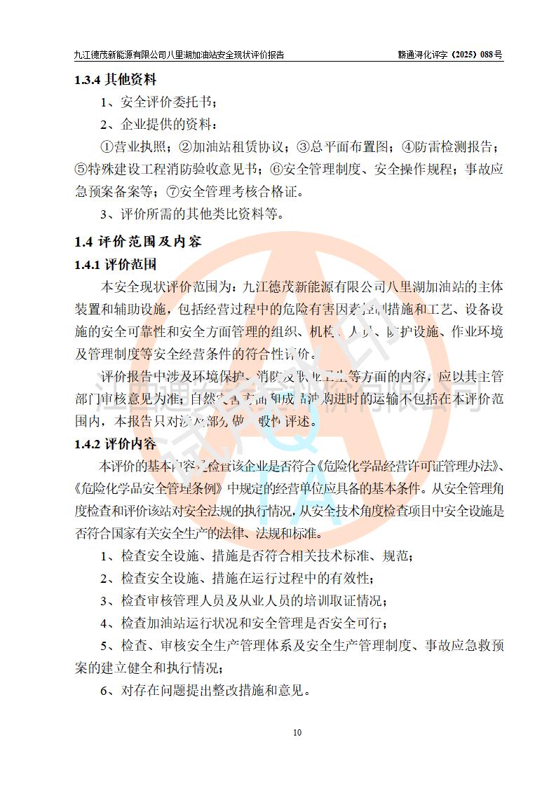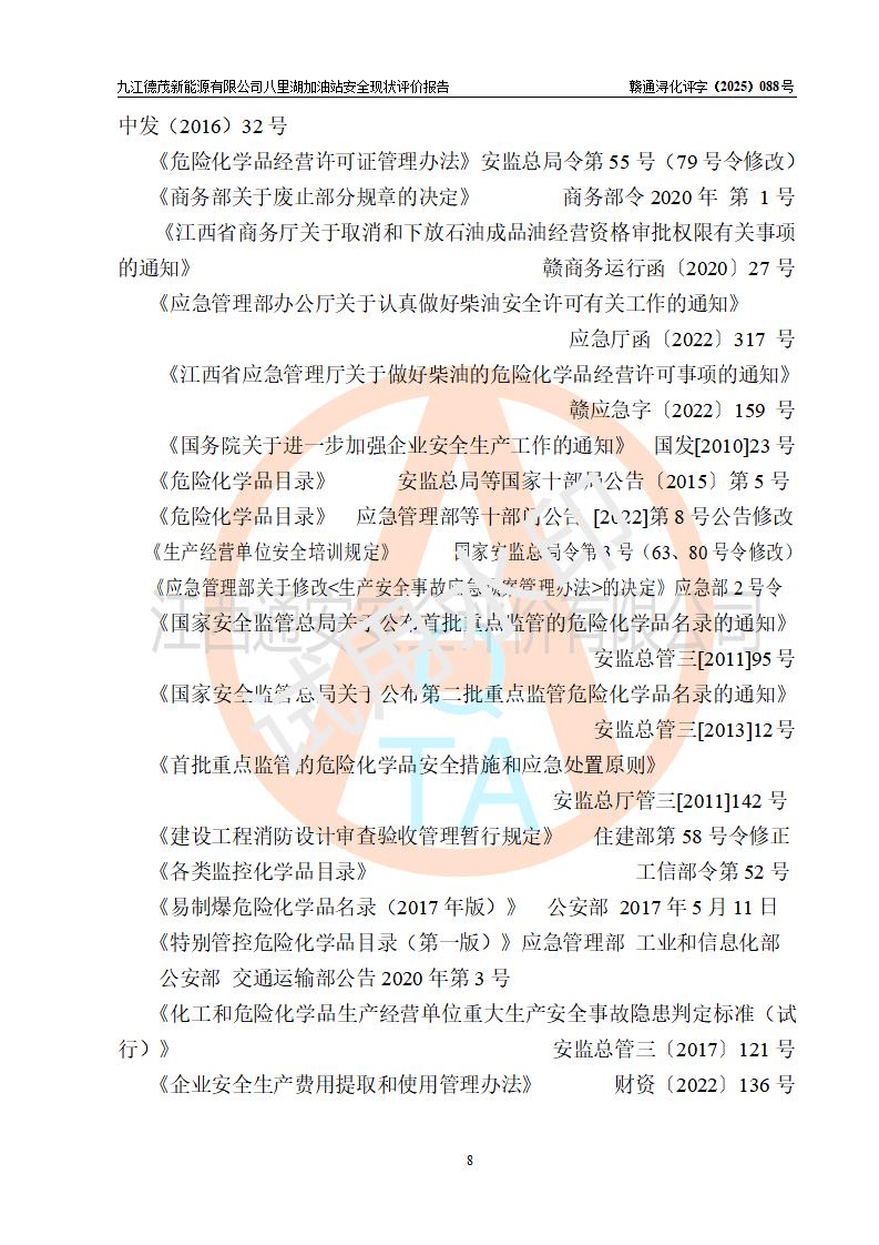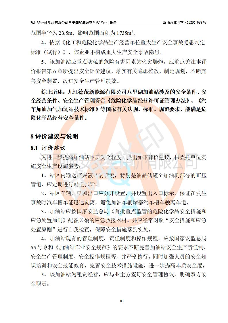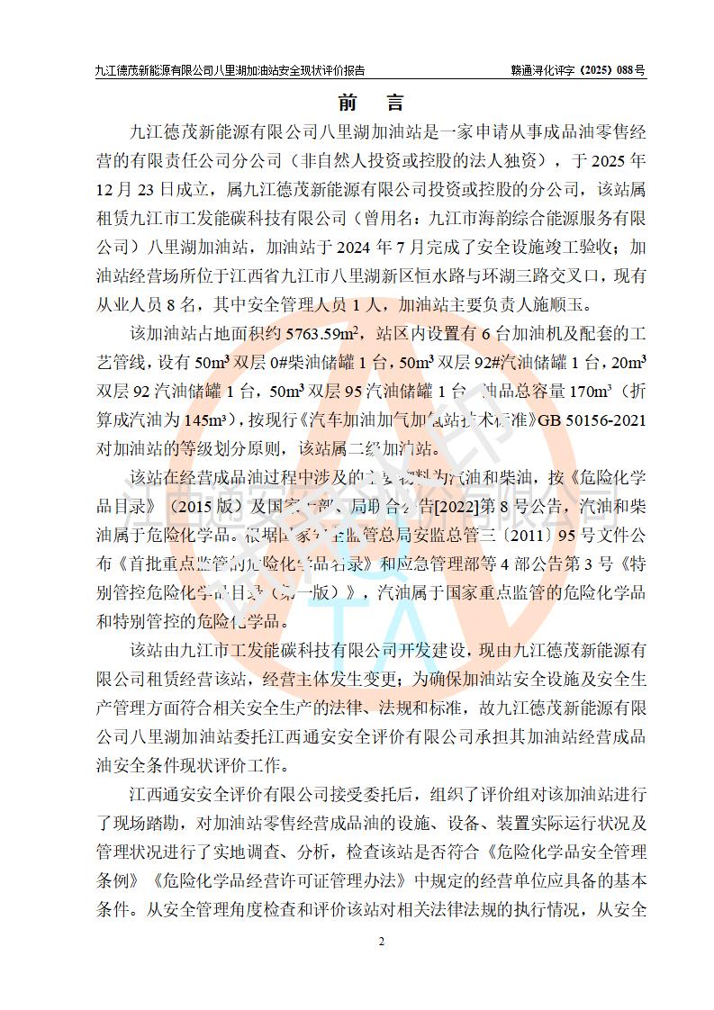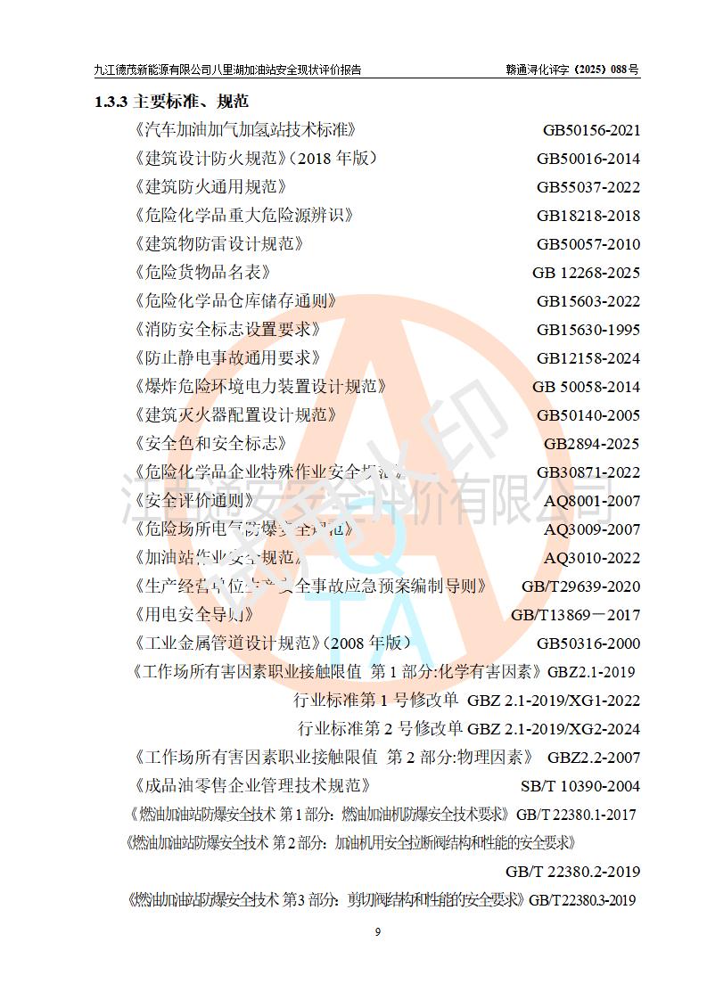 評價(jià)報(bào)告名稱 | 九江德茂新能源有限公司八里湖加油站安全現(xiàn)狀評價(jià)報(bào)告 | |||