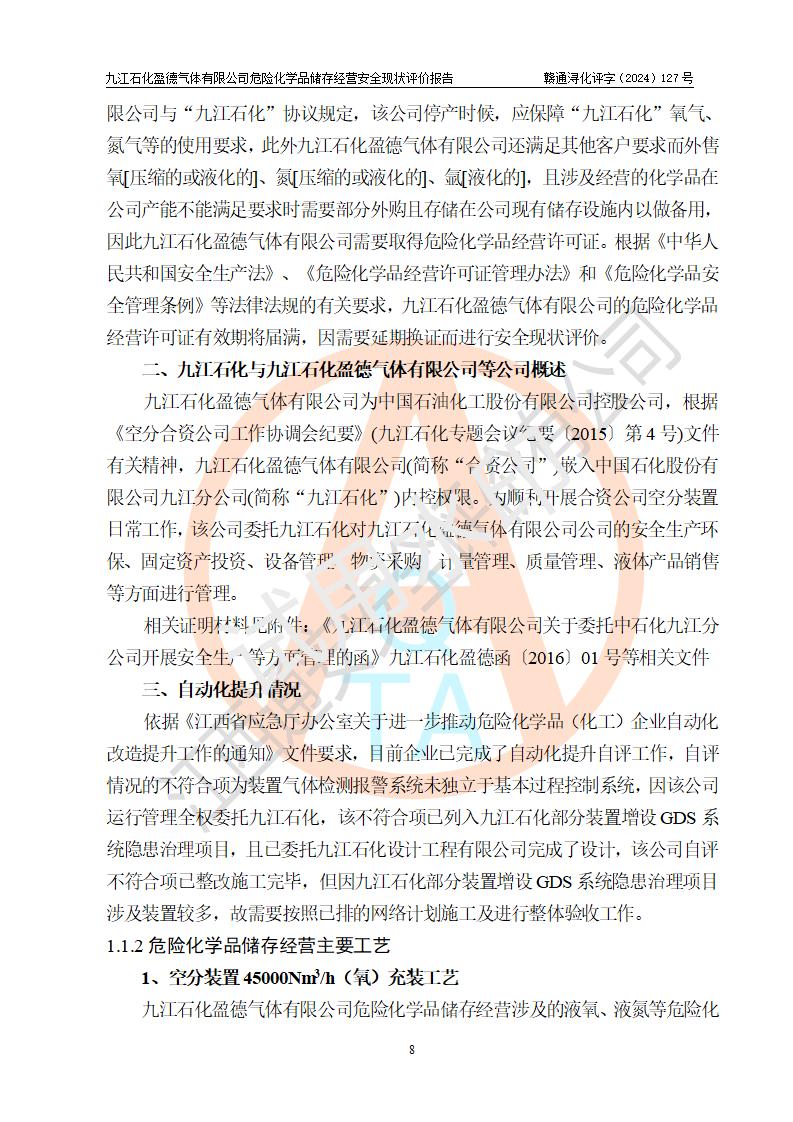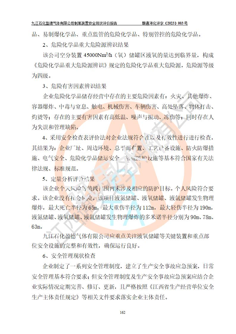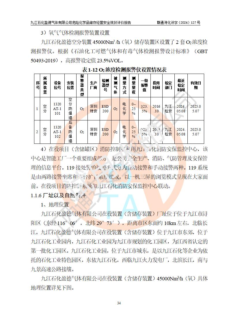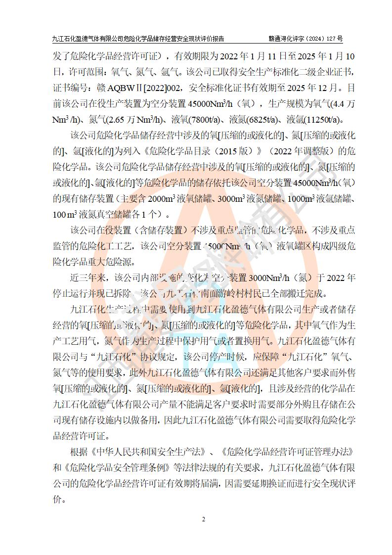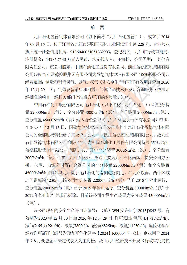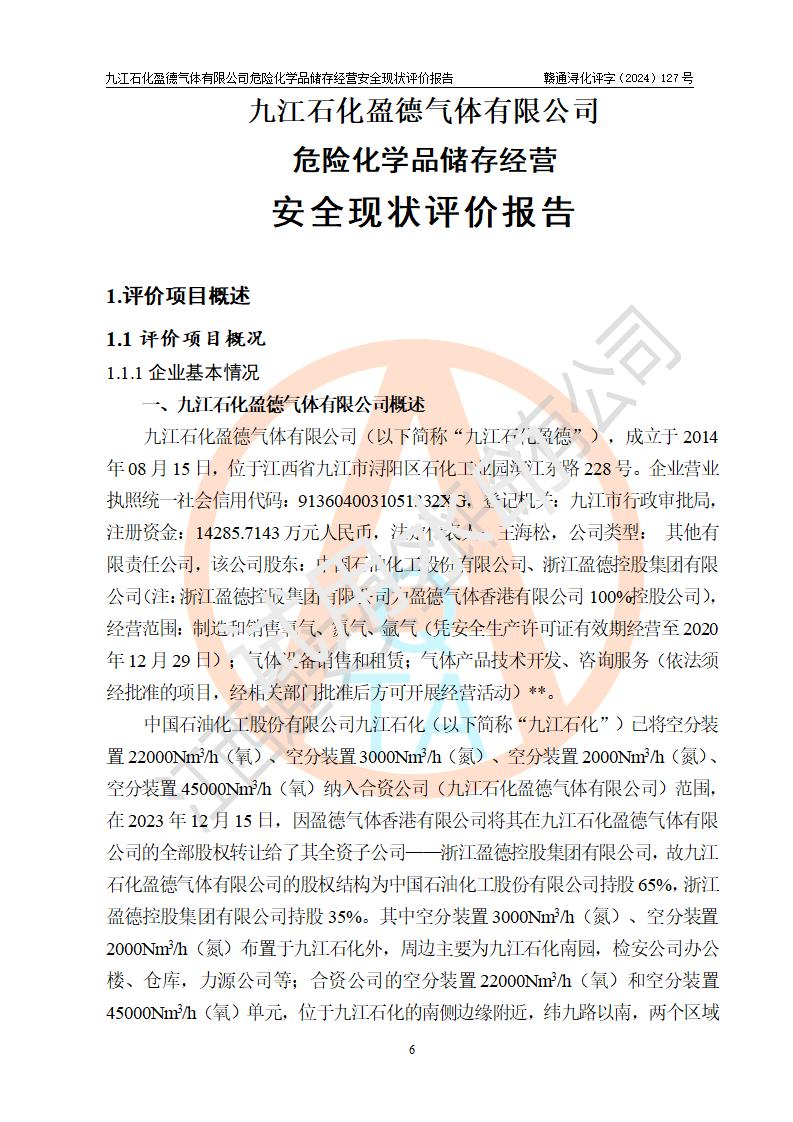 評價報告名稱 | 九江石化盈德氣體有限公司危險化學品儲存經(jīng)營安全現(xiàn)狀評價報告 | |||