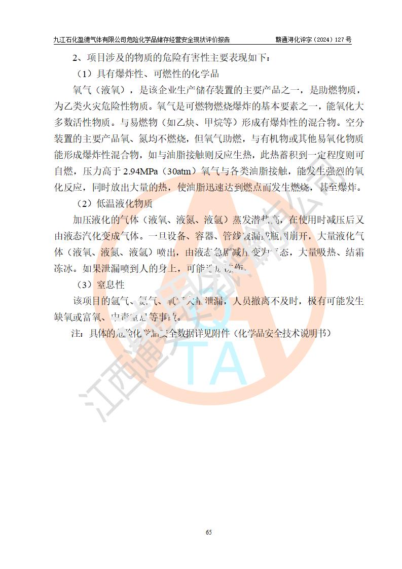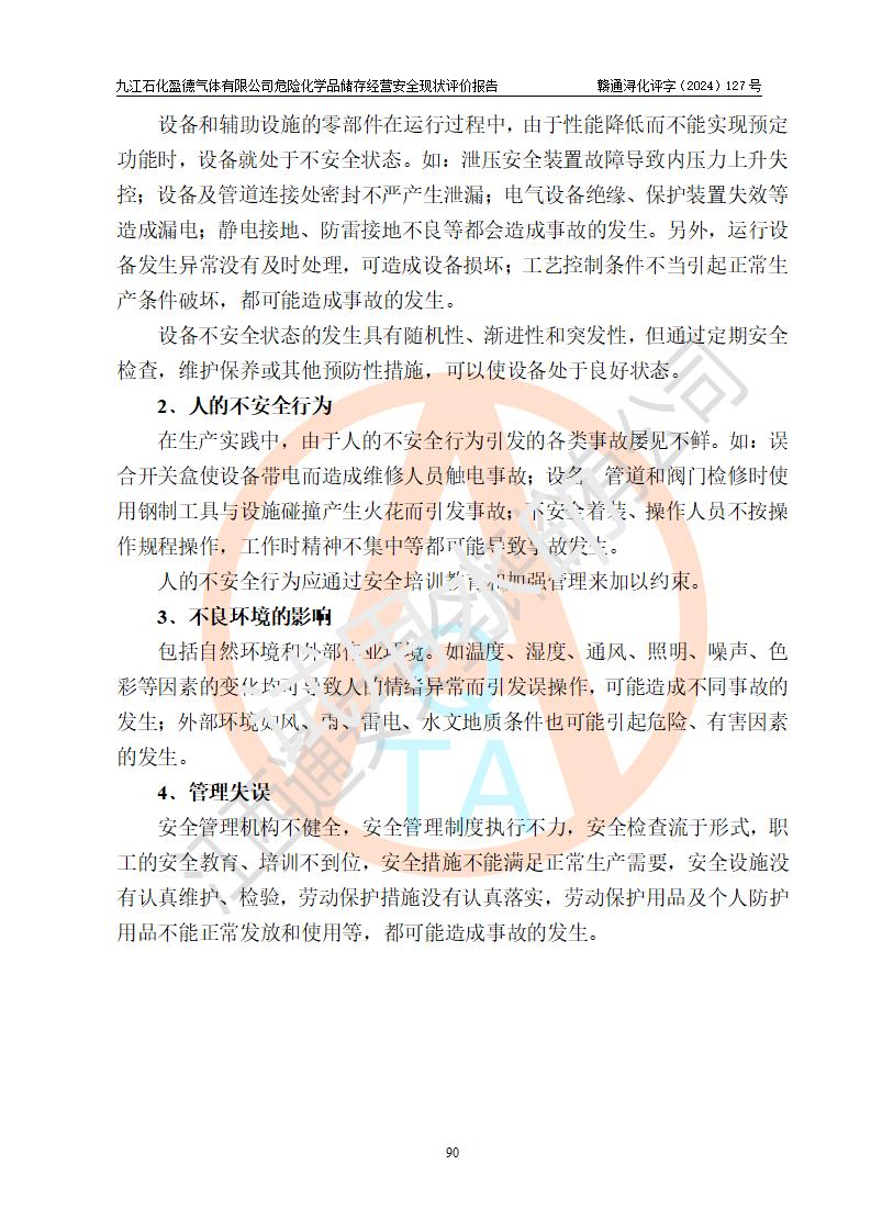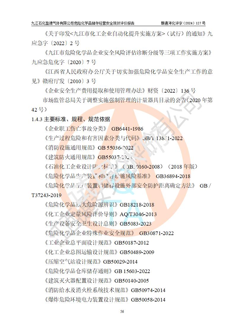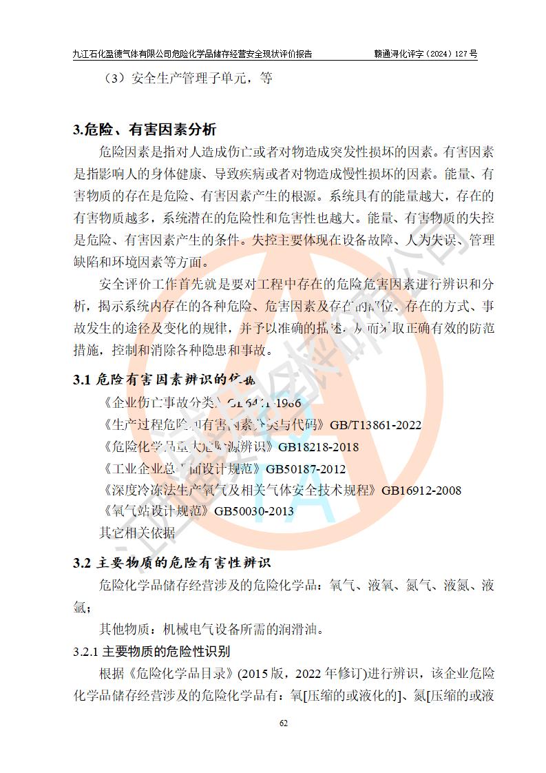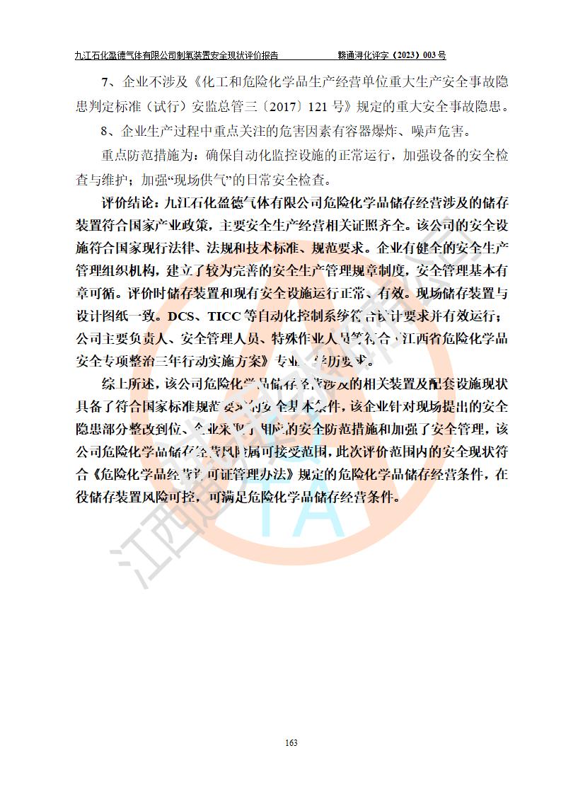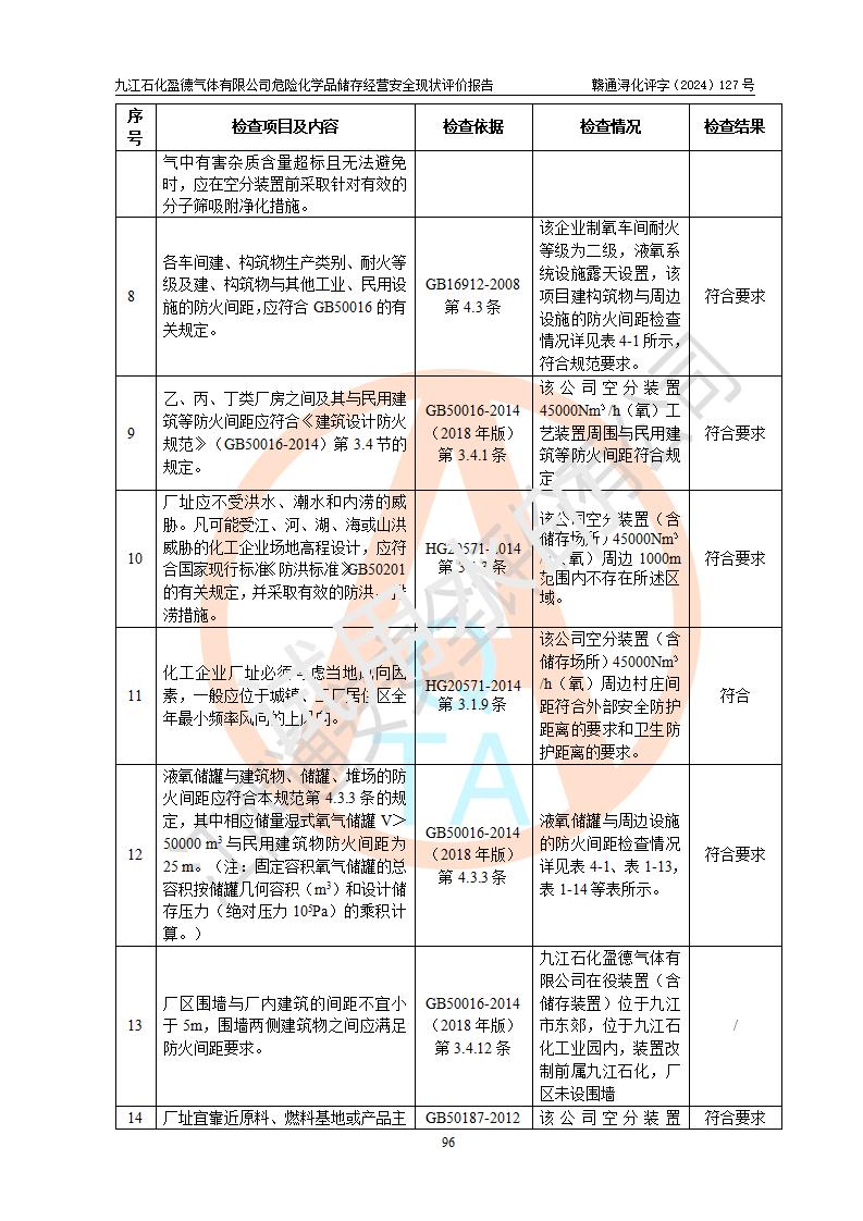 評價報告名稱 | 九江石化盈德氣體有限公司危險化學品儲存經(jīng)營安全現(xiàn)狀評價報告 | |||