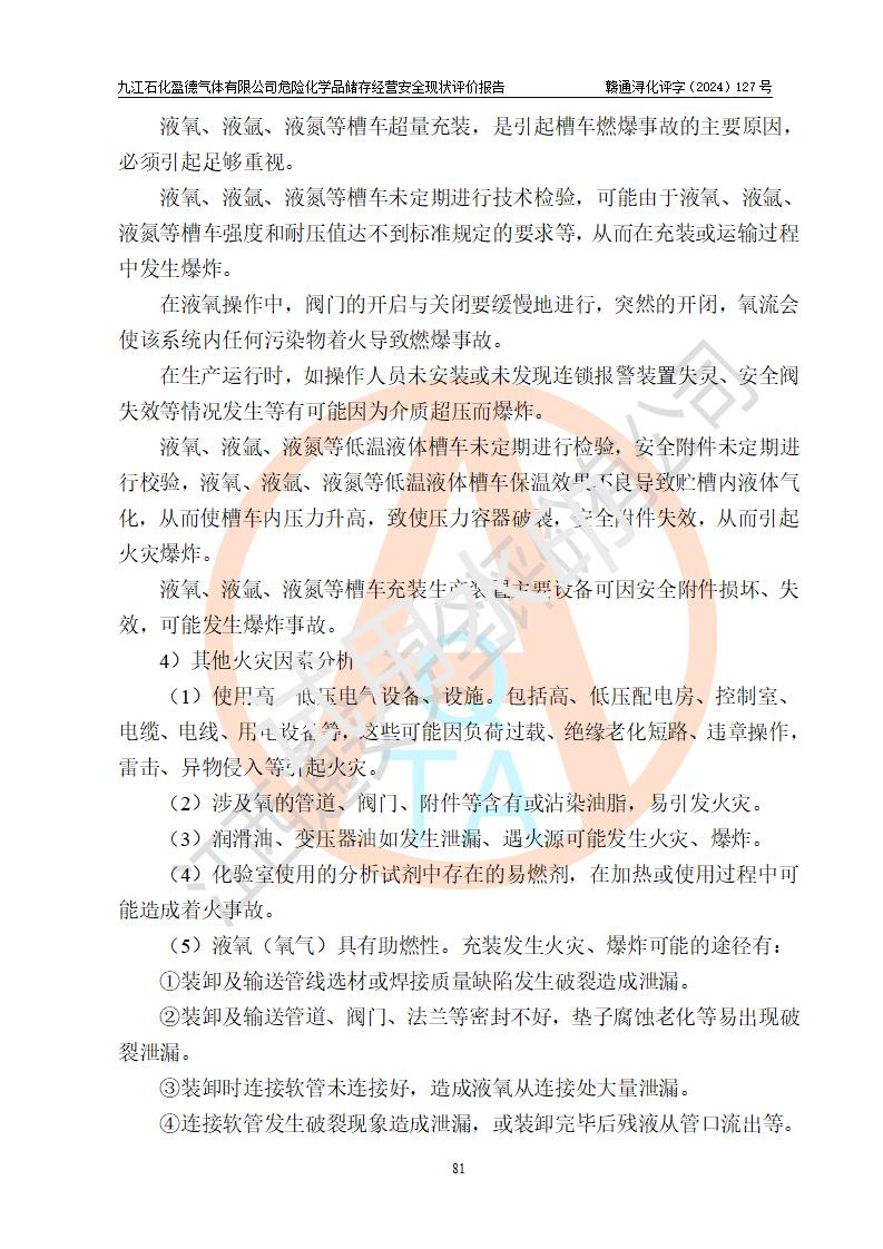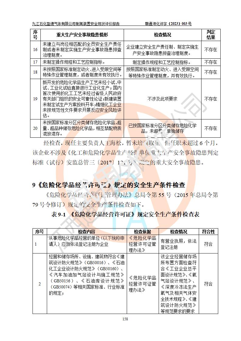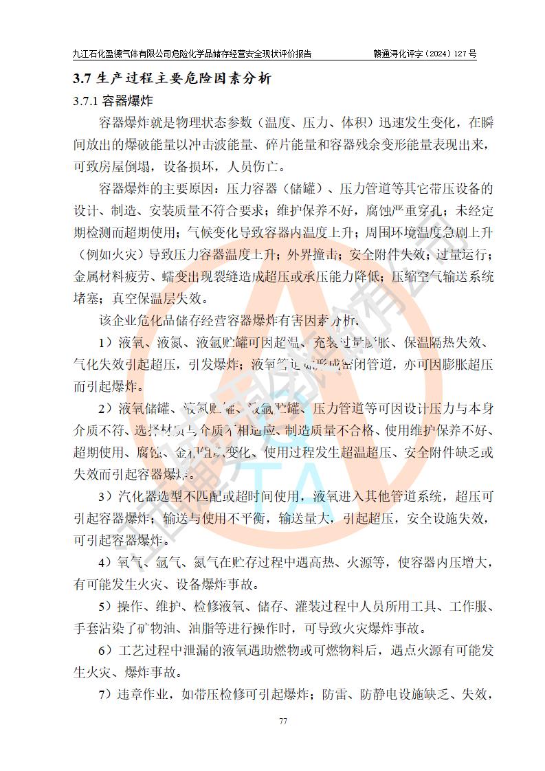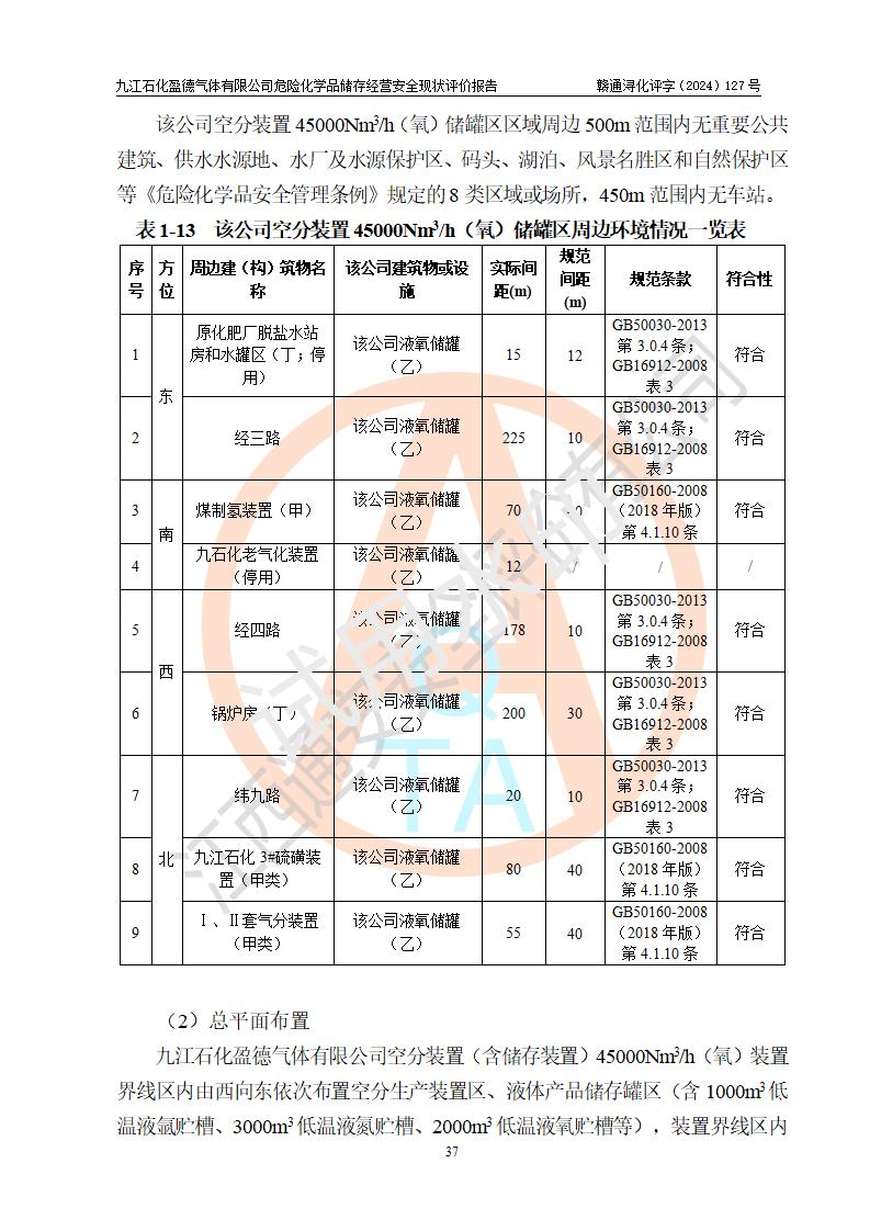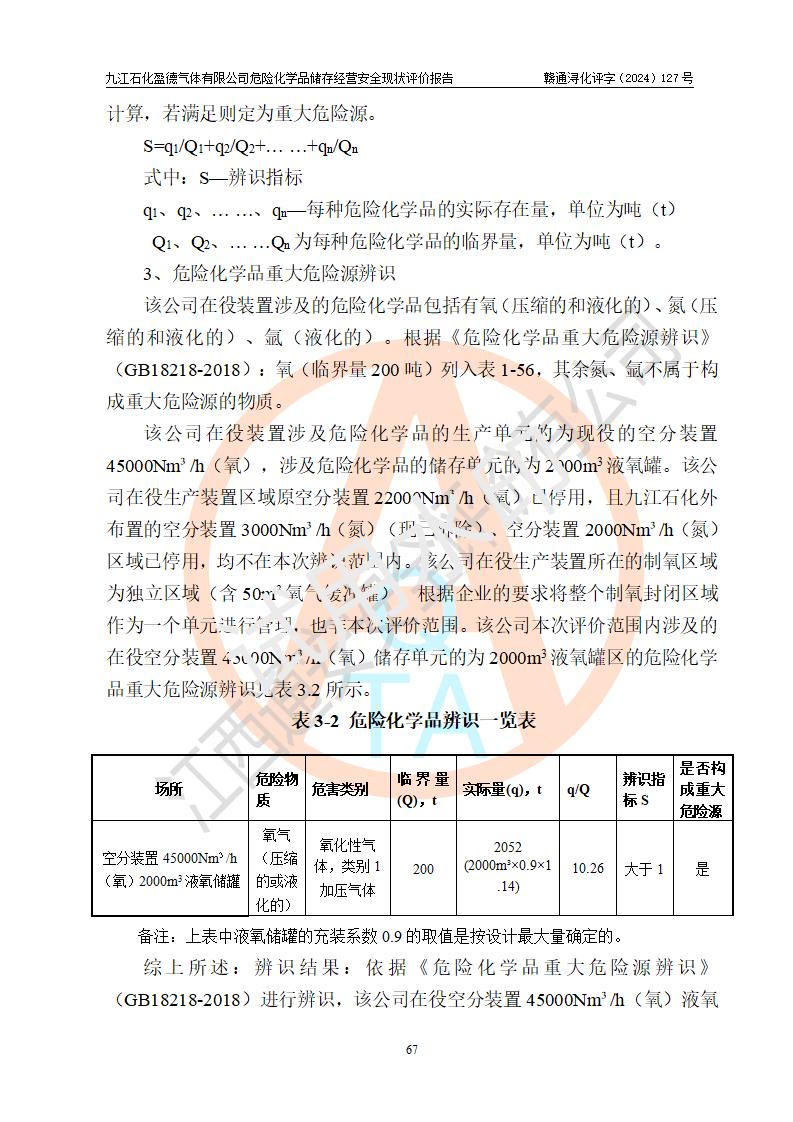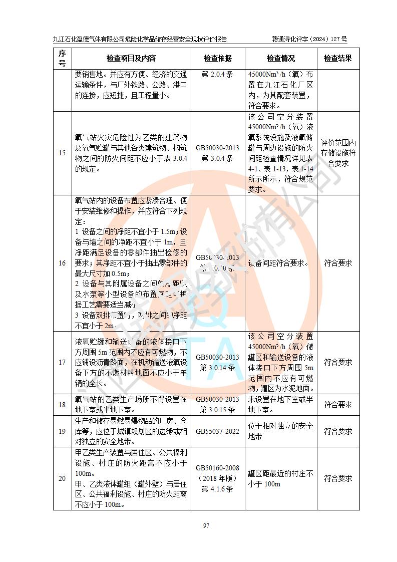 評價報告名稱 | 九江石化盈德氣體有限公司危險化學品儲存經(jīng)營安全現(xiàn)狀評價報告 | |||