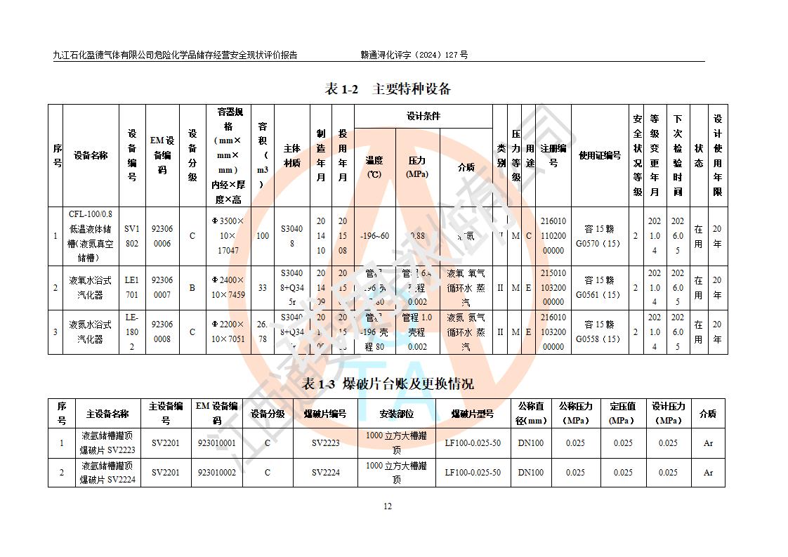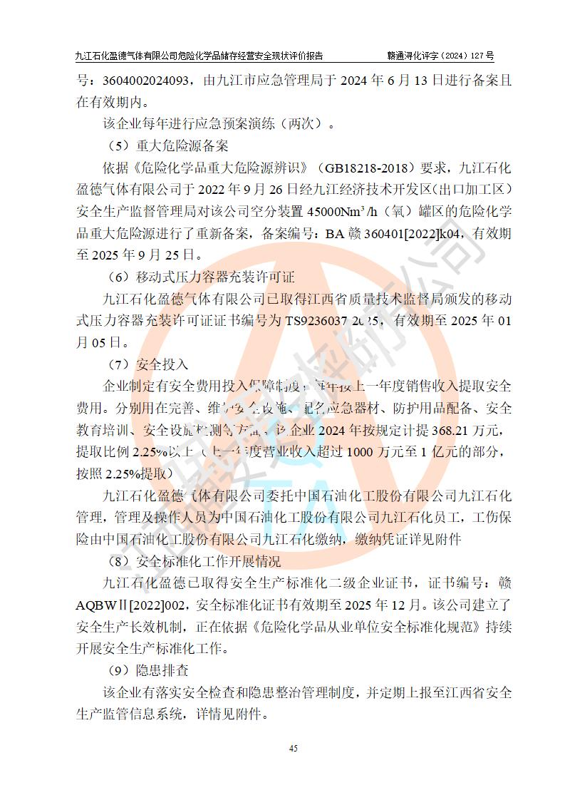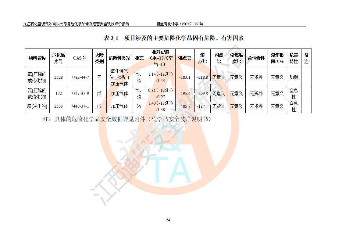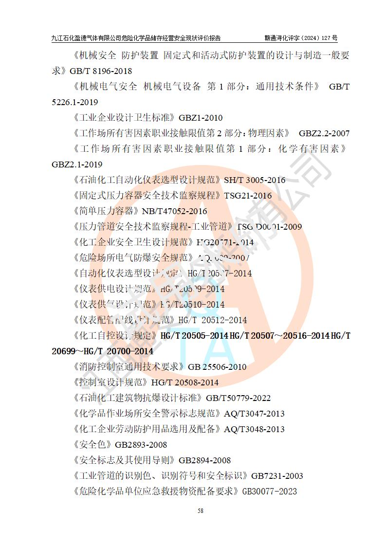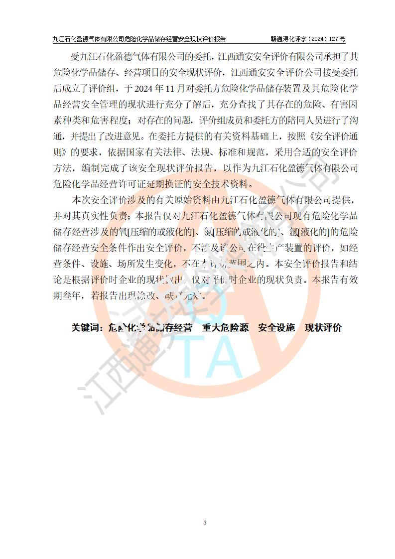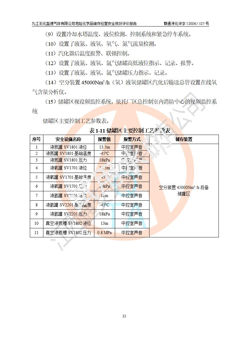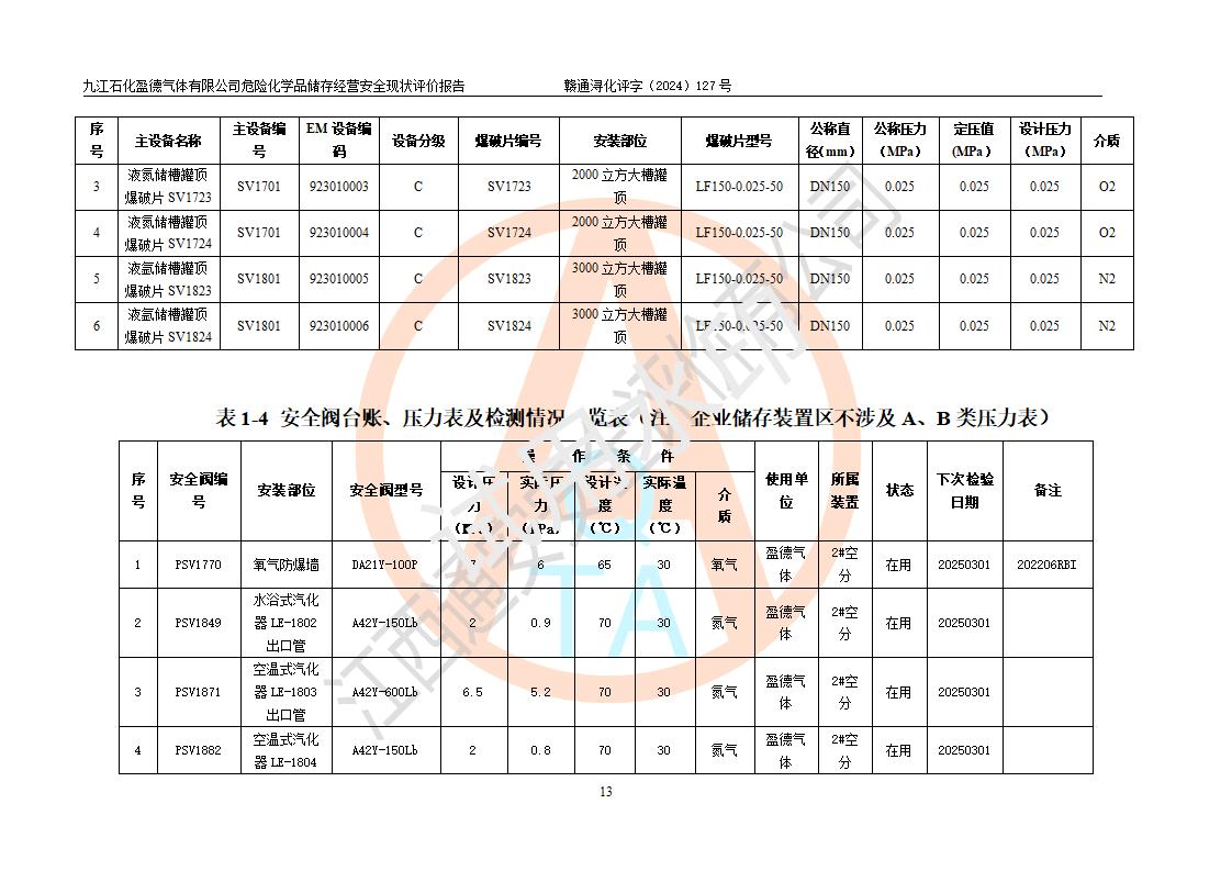評價報告名稱 | 九江石化盈德氣體有限公司危險化學品儲存經(jīng)營安全現(xiàn)狀評價報告 | |||
