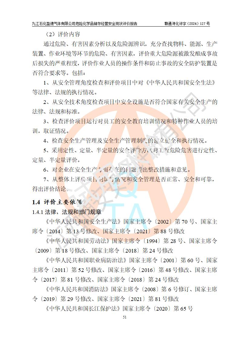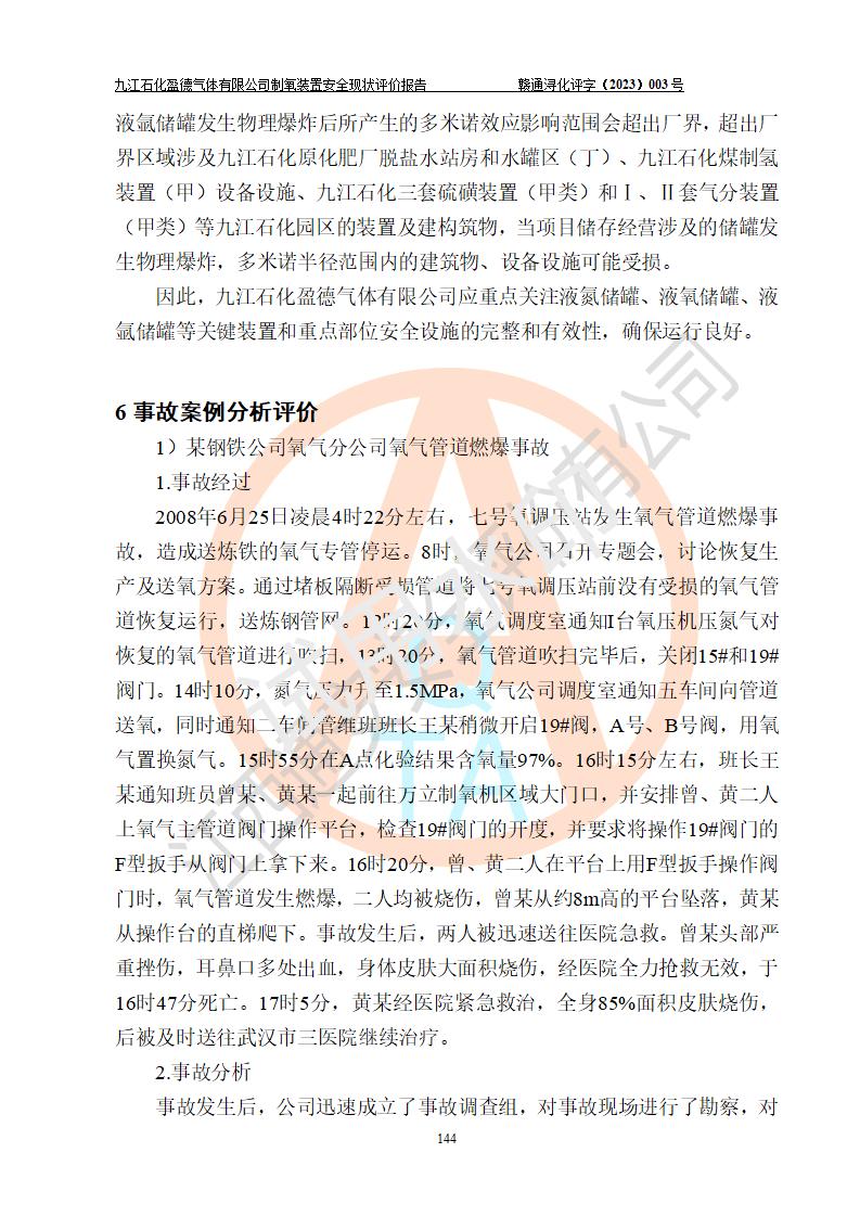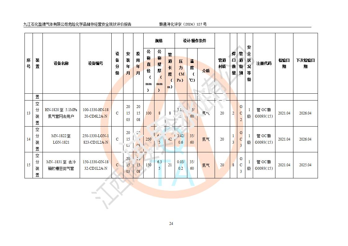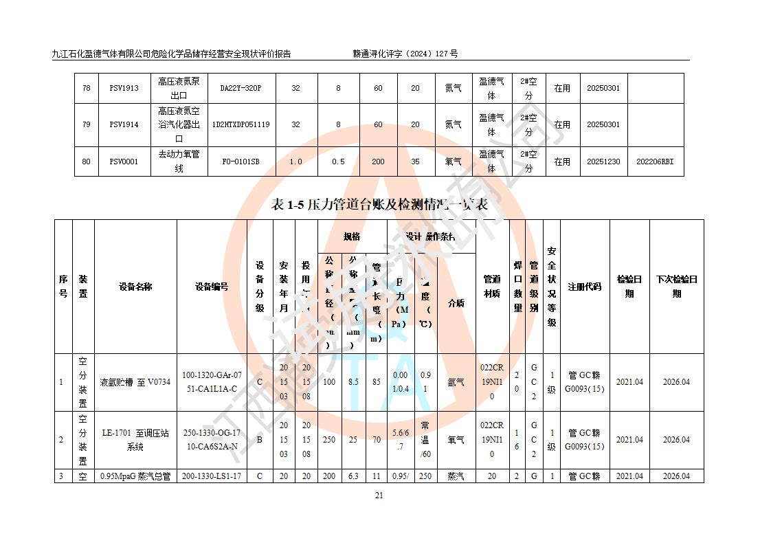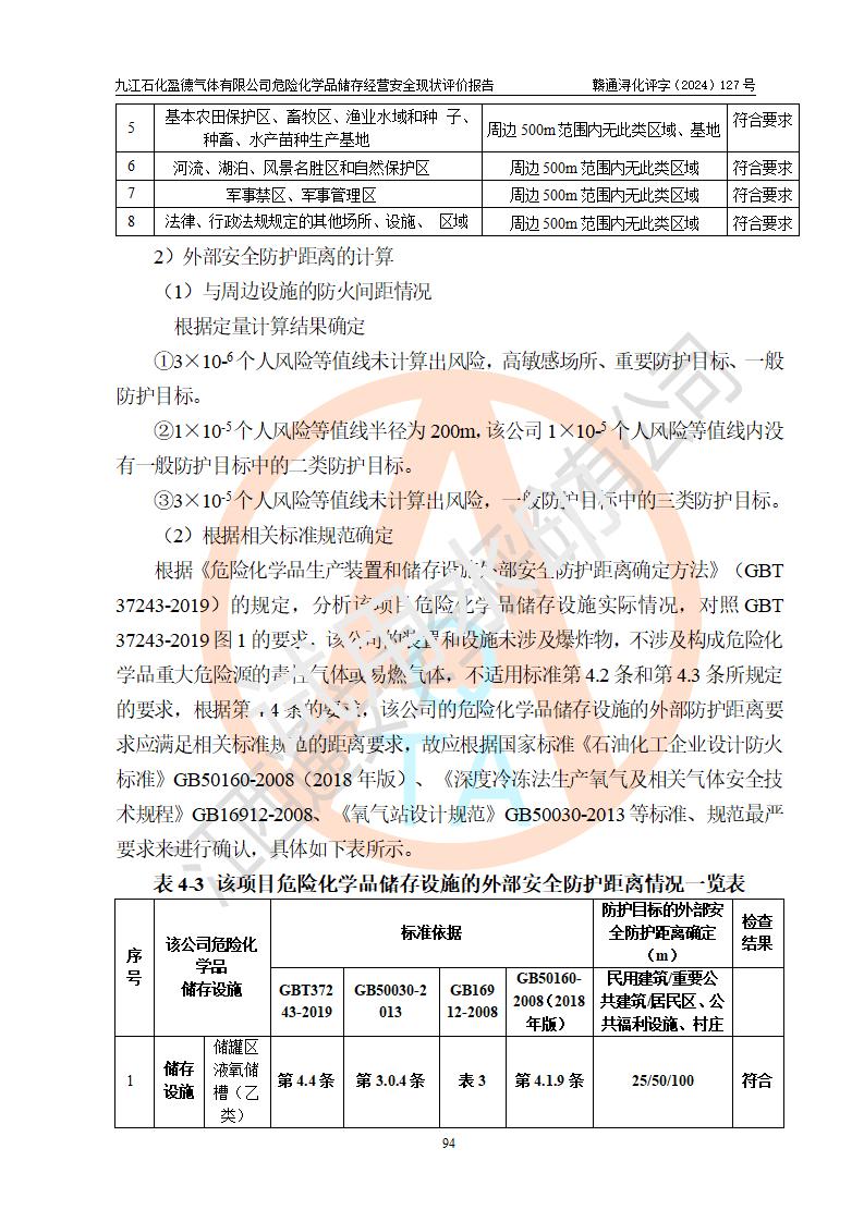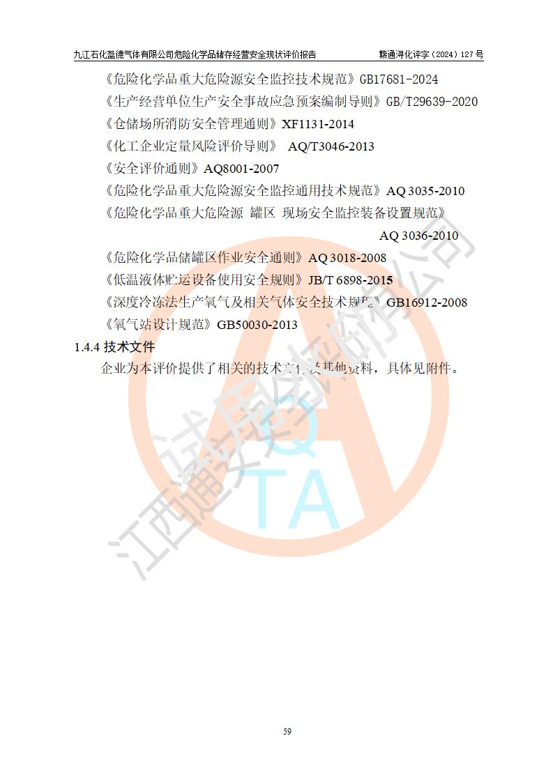 評價報告名稱 | 九江石化盈德氣體有限公司危險化學品儲存經(jīng)營安全現(xiàn)狀評價報告 | |||