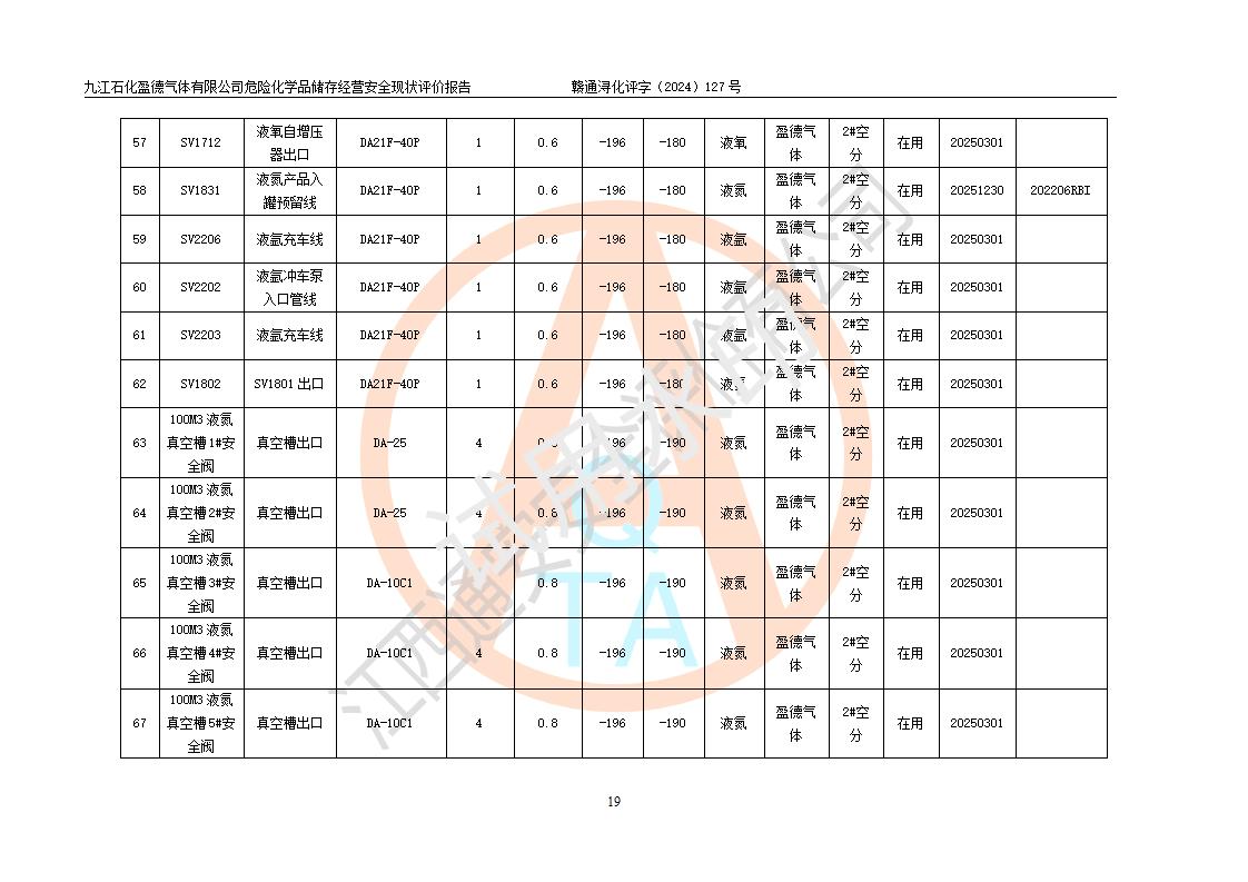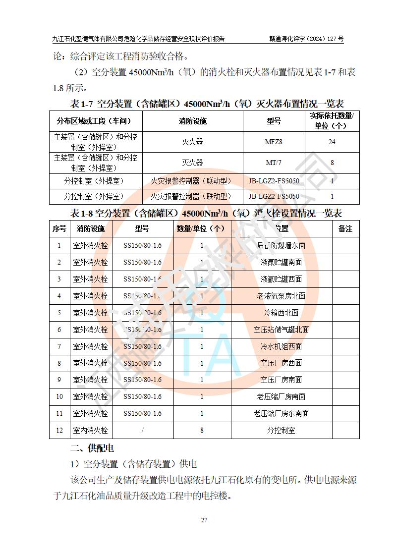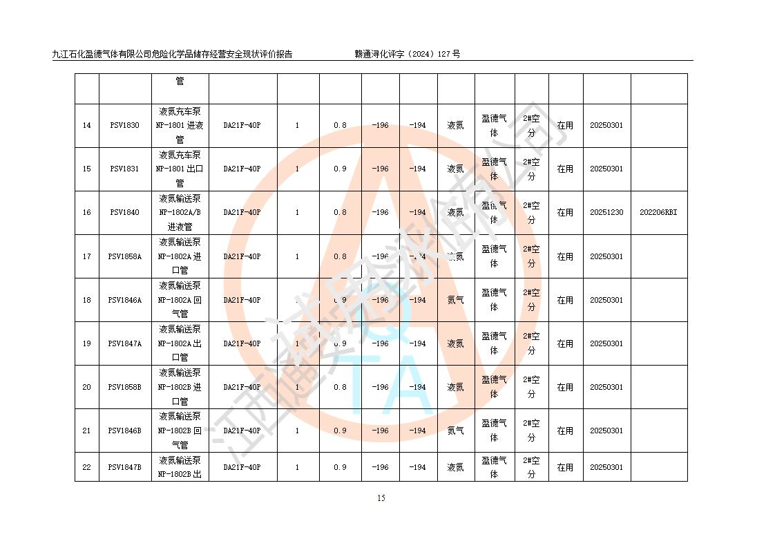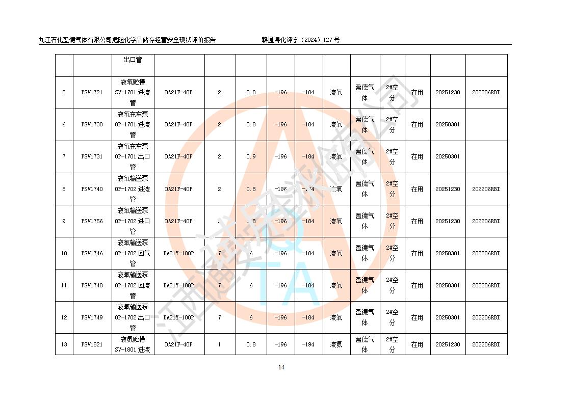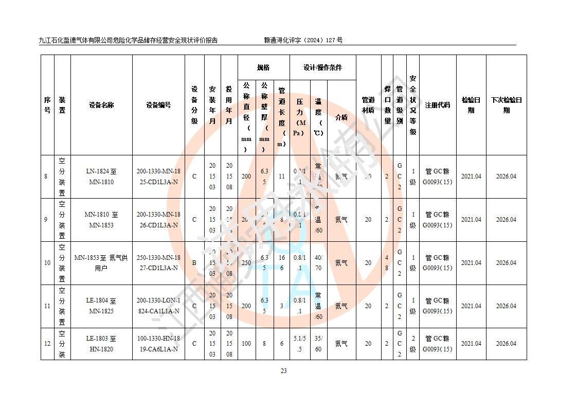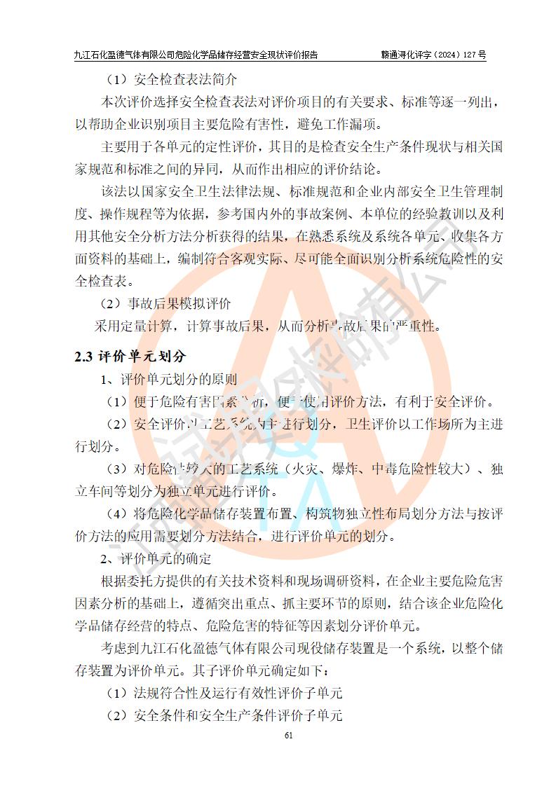 評價報告名稱 | 九江石化盈德氣體有限公司危險化學品儲存經(jīng)營安全現(xiàn)狀評價報告 | |||