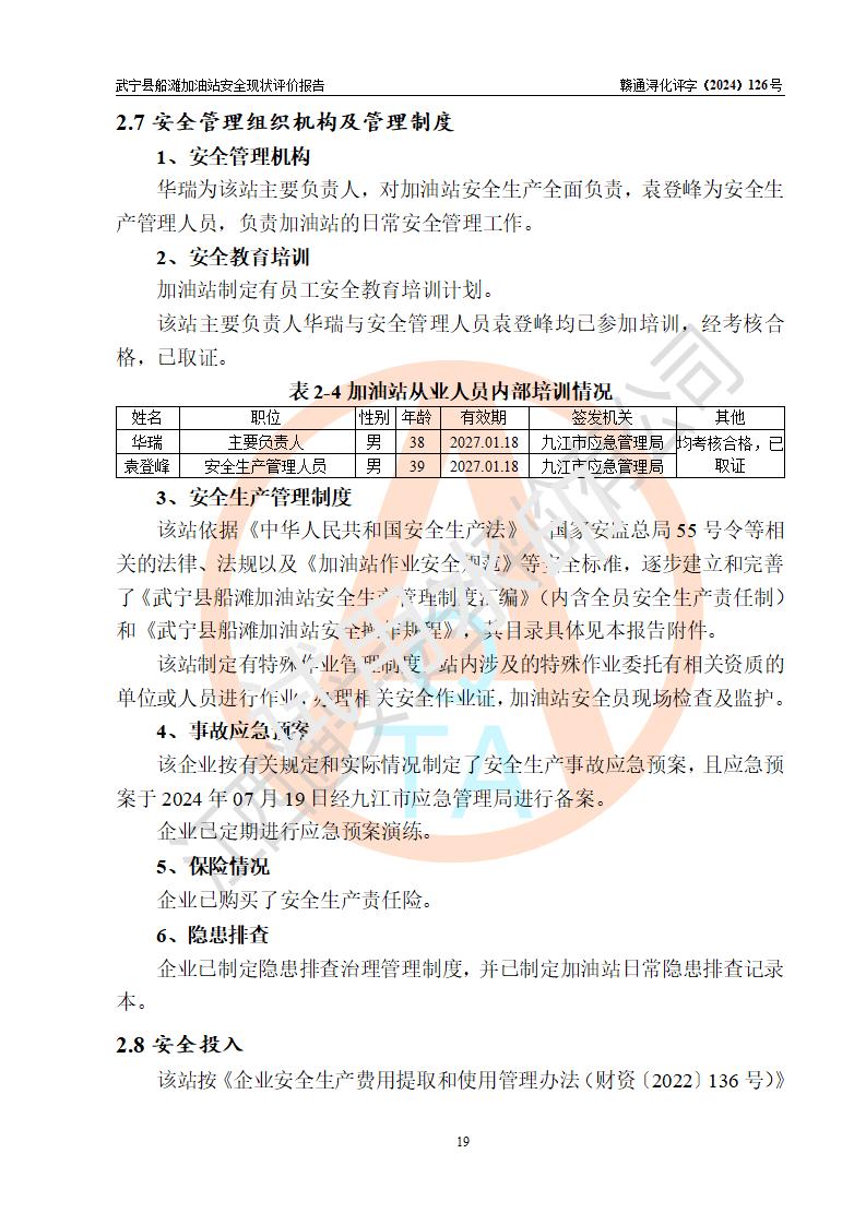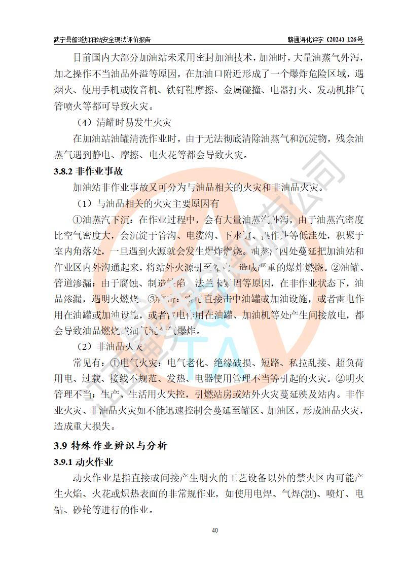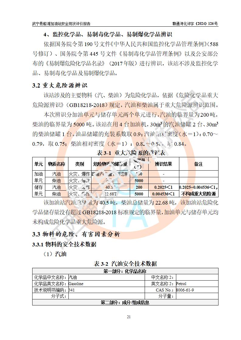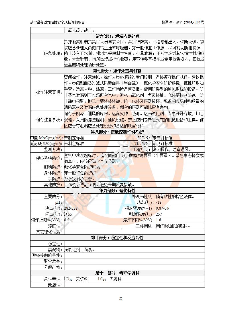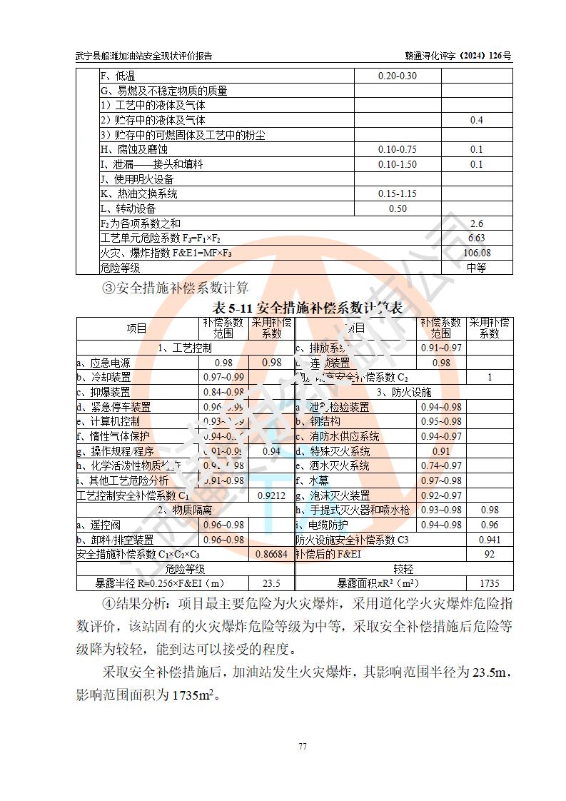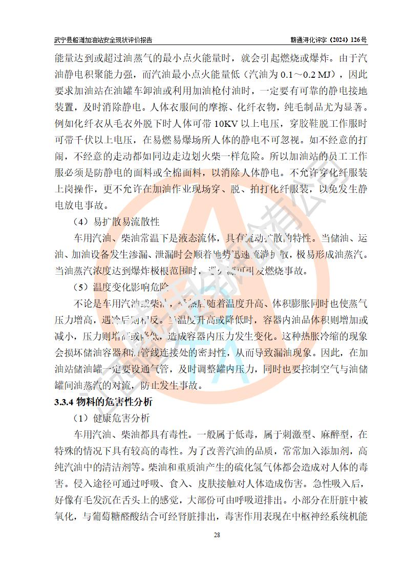 評(píng)價(jià)結(jié)論 | 武寧縣船灘加油站涉及的安全條件、安全經(jīng)營(yíng)條件、安全生產(chǎn)管理符合《危險(xiǎn)化學(xué)品經(jīng)營(yíng)許可證管理辦法》、《汽車加油加氣加氫站技術(shù)標(biāo)準(zhǔn)》等**有關(guān)法規(guī)、標(biāo)準(zhǔn)、規(guī)范要求,能滿足危險(xiǎn)化學(xué)品經(jīng)營(yíng)安全條件。 | |||