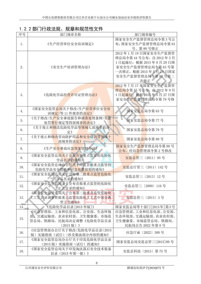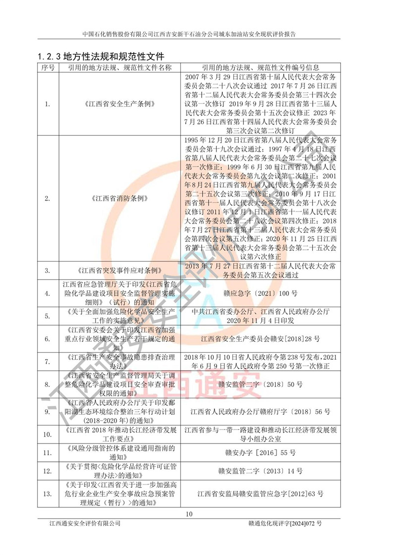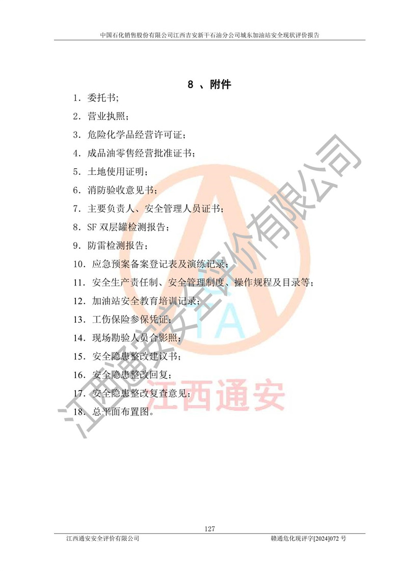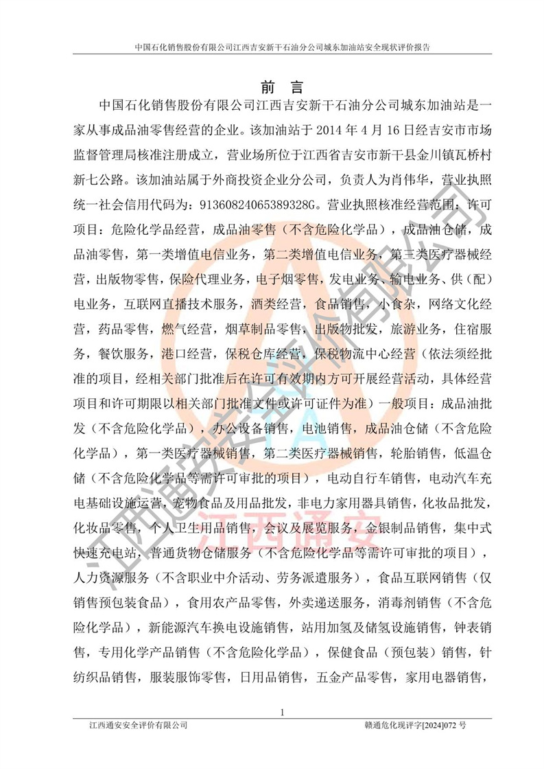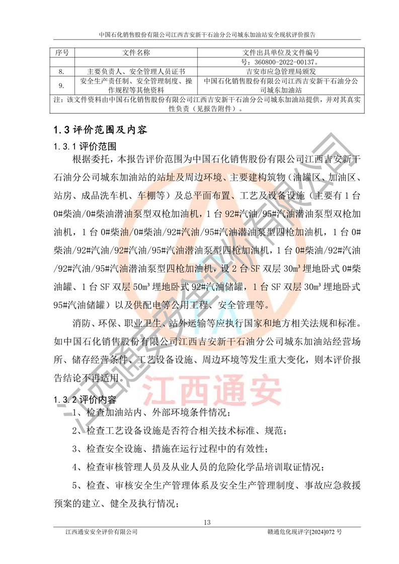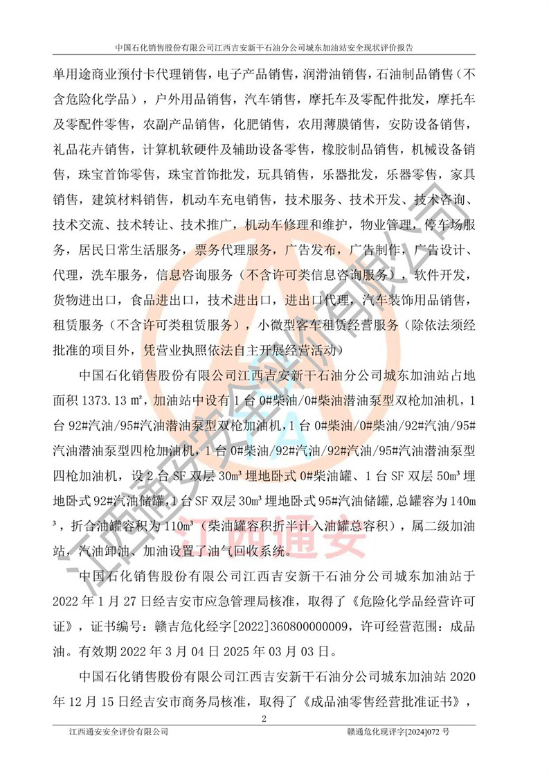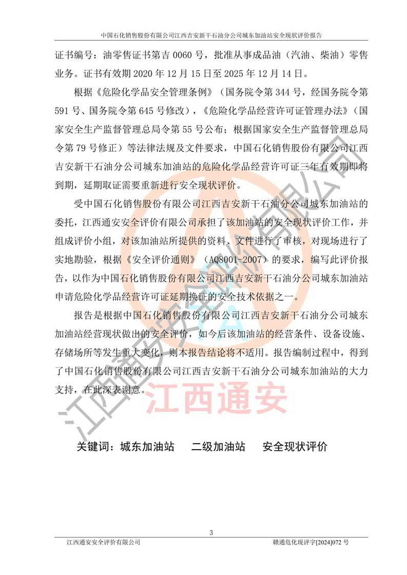 評(píng)價(jià)報(bào)告名稱 | 中國(guó)石化銷售股份有限公司江西吉安新干石油分公司城東加油站安全現(xiàn)狀評(píng)價(jià)報(bào)告 | |||
