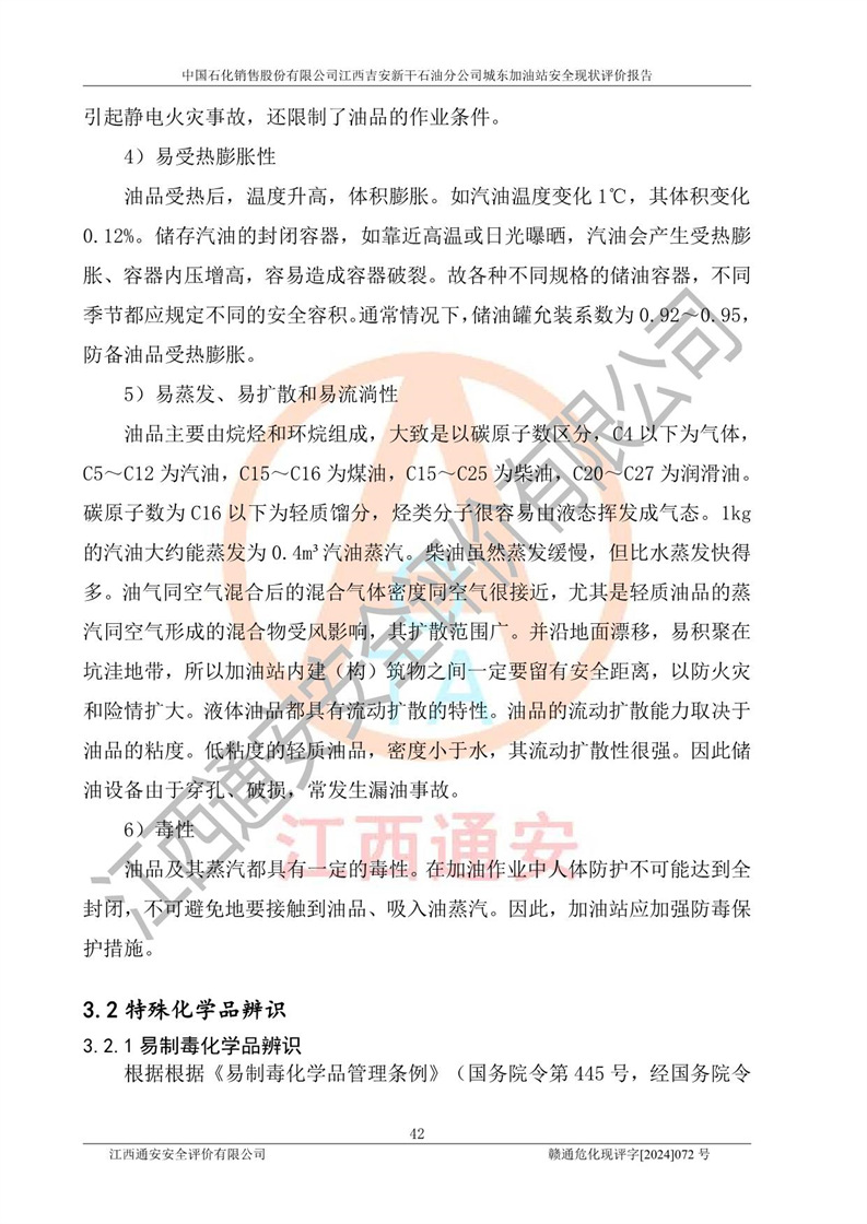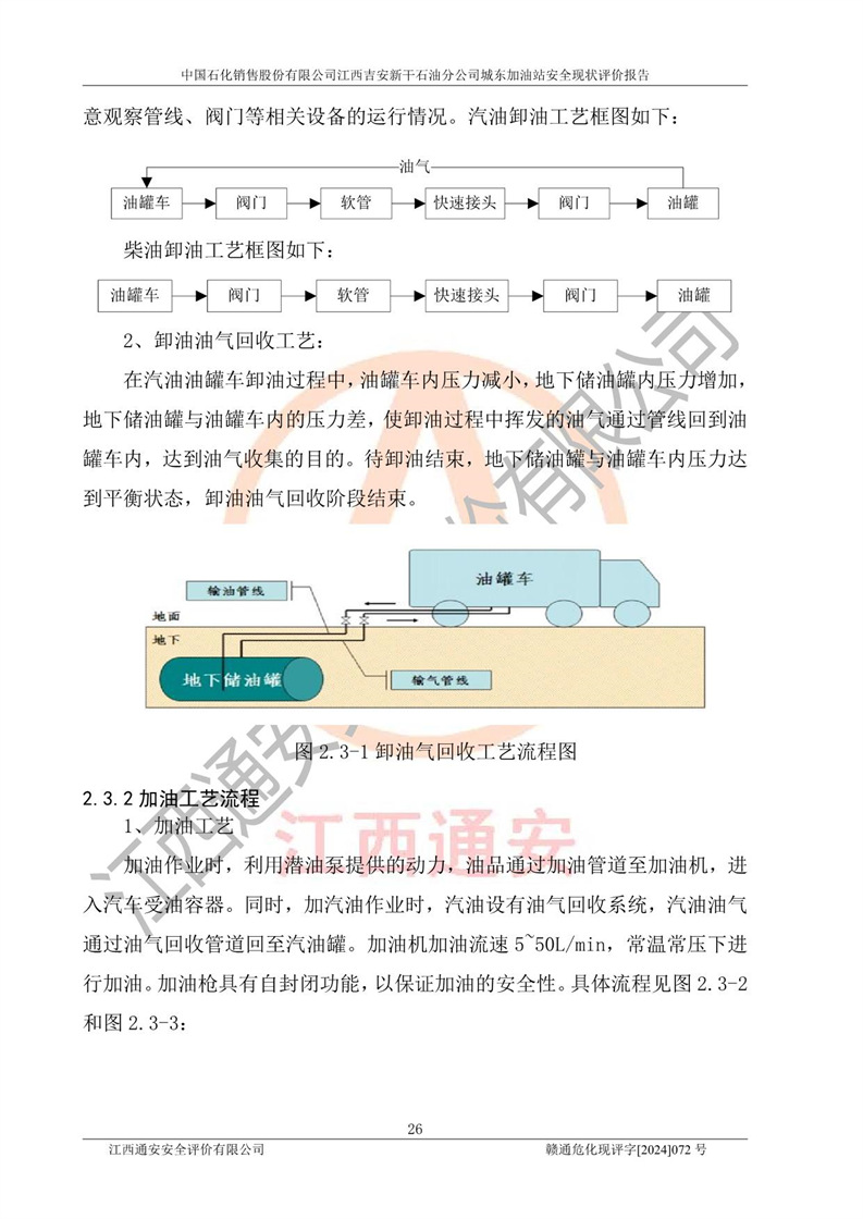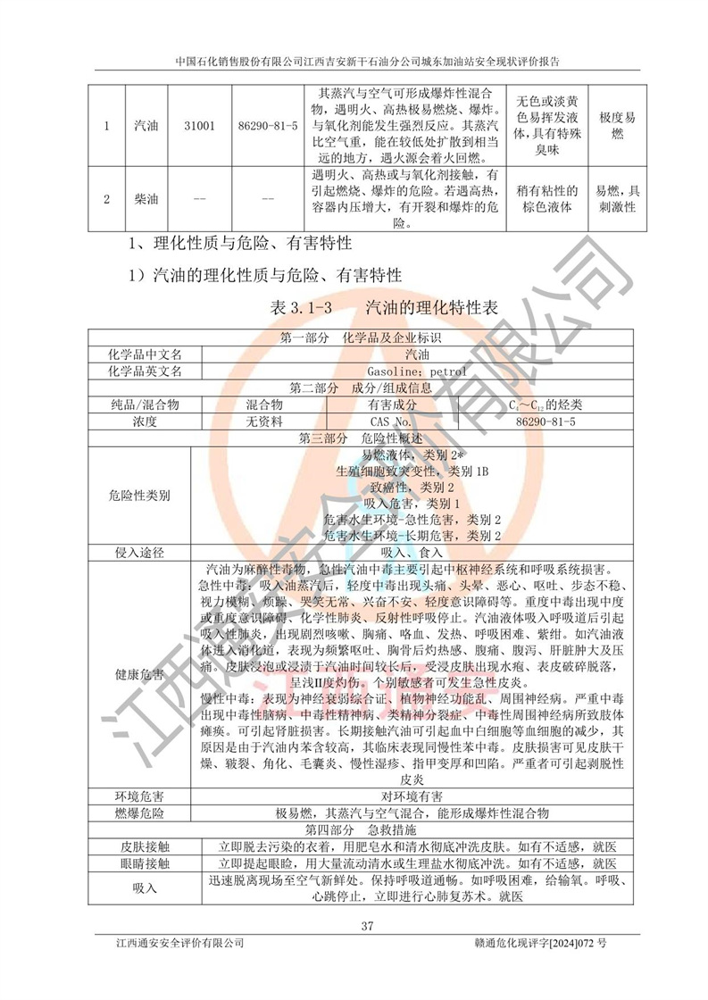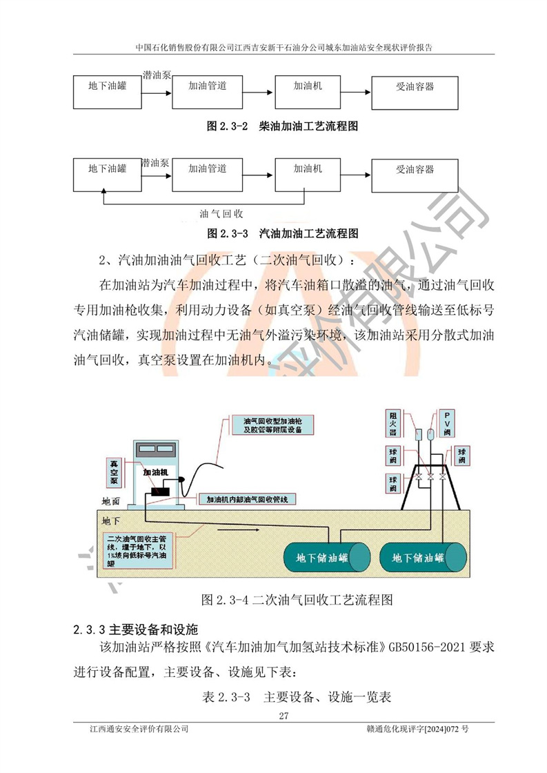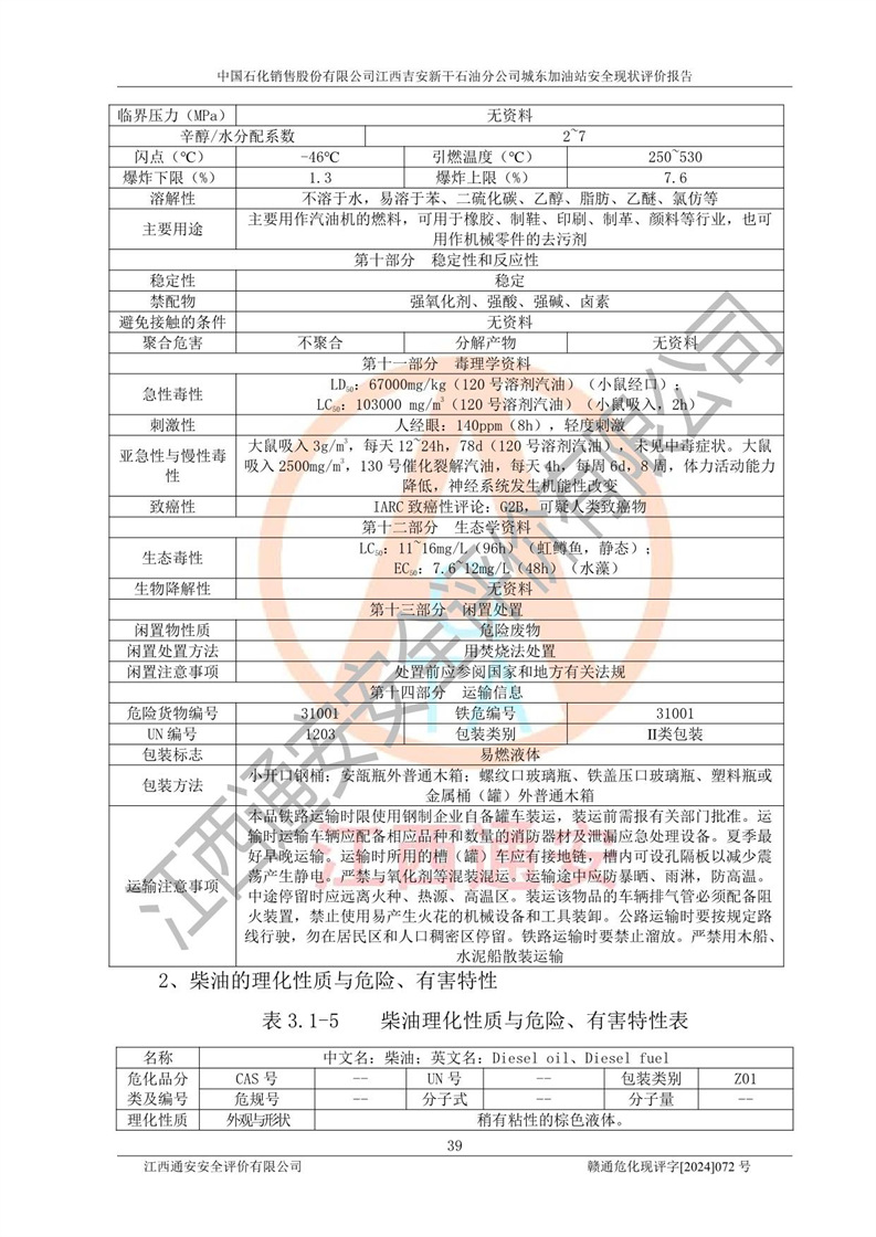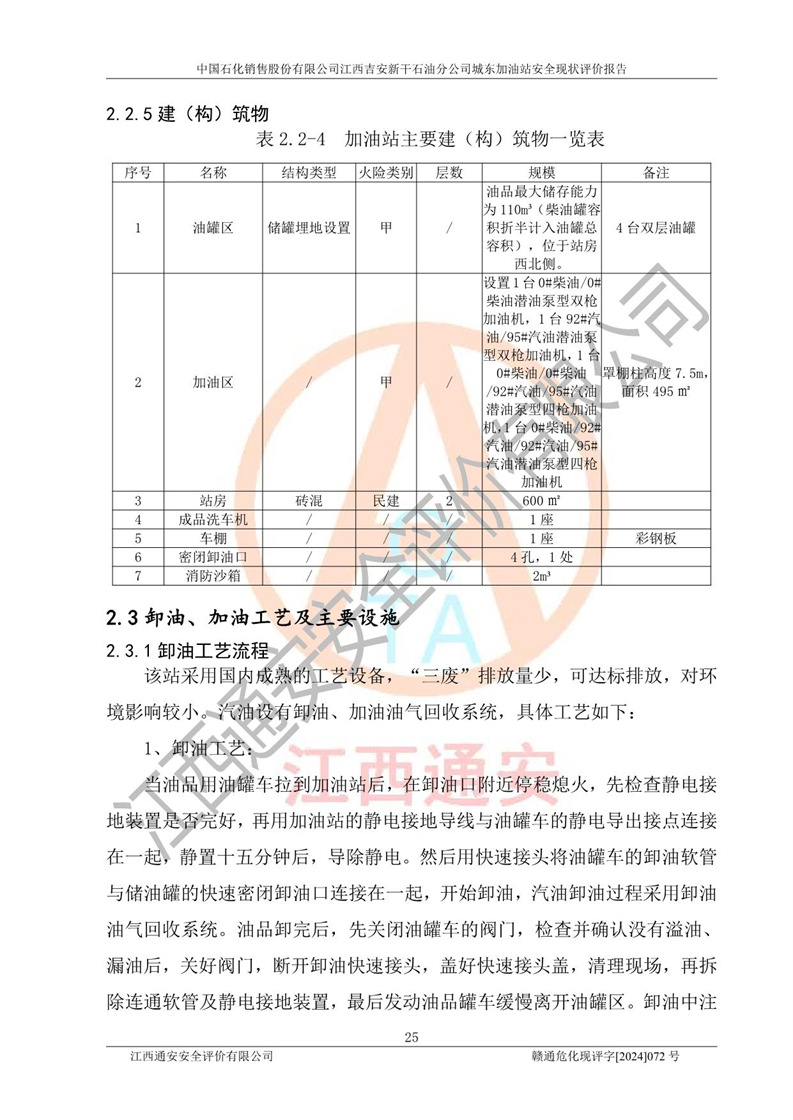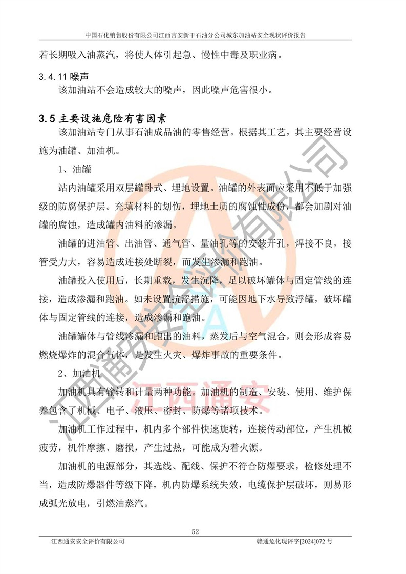 項(xiàng)目簡(jiǎn)介 | 中國(guó)石化銷售股份有限公司江西吉安新干石油分公司城東加油站是一家從事成品油零售經(jīng)營(yíng)的企業(yè)。該加油站于2014年4月16日經(jīng)吉安市市場(chǎng)監(jiān)督管理局核準(zhǔn)注冊(cè)成立,營(yíng)業(yè)場(chǎng)所位于江西省吉安市新干縣金川鎮(zhèn)瓦橋村新七公路。該加油站屬于外商投資企業(yè)分公司,負(fù)責(zé)人為肖偉華,營(yíng)業(yè)執(zhí)照統(tǒng)一社會(huì)信用代碼為:91360824065389328G。營(yíng)業(yè)執(zhí)照核準(zhǔn)經(jīng)營(yíng)范圍:許可項(xiàng)目:危險(xiǎn)化學(xué)品經(jīng)營(yíng),成品油零售(不含危險(xiǎn)化學(xué)品),成品油倉(cāng)儲(chǔ),成品油零售,**類增值電信業(yè)務(wù),第二類增值電信業(yè)務(wù),第三類醫(yī)療器械經(jīng)營(yíng),出版物零售,**代理業(yè)務(wù),***零售,發(fā)電業(yè)務(wù)、輸電業(yè)務(wù)、供(配)電業(yè)務(wù),互聯(lián)網(wǎng)直播技術(shù)服務(wù),酒類經(jīng)營(yíng),食品銷售,小食雜,網(wǎng)絡(luò)文化經(jīng)營(yíng),藥品零售,燃?xì)饨?jīng)營(yíng),煙草制品零售,出版物批發(fā),旅游業(yè)務(wù),住宿服務(wù),餐飲服務(wù),港口經(jīng)營(yíng),保稅倉(cāng)庫(kù)經(jīng)營(yíng),保稅物流中心經(jīng)營(yíng)(依法須經(jīng)批準(zhǔn)的項(xiàng)目,經(jīng)相關(guān)部門批準(zhǔn)后在許可**期內(nèi)方可開展經(jīng)營(yíng)活動(dòng),具體經(jīng)營(yíng)項(xiàng)目和許可期限以相關(guān)部門批準(zhǔn)文件或許可證件為準(zhǔn))一般項(xiàng)目:成品油批發(fā)(不含危險(xiǎn)化學(xué)品),辦公設(shè)備銷售,電池銷售,成品油倉(cāng)儲(chǔ)(不含危險(xiǎn)化學(xué)品),**類醫(yī)療器械銷售,第二類醫(yī)療器械銷售,輪胎銷售,低溫倉(cāng)儲(chǔ)(不含危險(xiǎn)化學(xué)品等需許可審批的項(xiàng)目),電動(dòng)自行車銷售,電動(dòng)汽車充電基礎(chǔ)設(shè)施運(yùn)營(yíng),寵物食品及用品批發(fā),非電力家用器具銷售,化妝品批發(fā),化妝品零售,個(gè)人衛(wèi)生用品銷售,會(huì)議及展覽服務(wù),金銀制品銷售,集中式**充電站,普通貨物倉(cāng)儲(chǔ)服務(wù)(不含危險(xiǎn)化學(xué)品等需許可審批的項(xiàng)目),人力資源服務(wù)(不含職業(yè)中介活動(dòng)、勞務(wù)派遣服務(wù)),食品互聯(lián)網(wǎng)銷售(僅銷售預(yù)包裝食品),食用農(nóng)產(chǎn)品零售,外賣遞送服務(wù),消毒劑銷售(不含危險(xiǎn)化學(xué)品),新能源汽車換電設(shè)施銷售,站用加氫及儲(chǔ)氫設(shè)施銷售,鐘表銷售,**化學(xué)產(chǎn)品銷售(不含危險(xiǎn)化學(xué)品),保健食品(預(yù)包裝)銷售,針紡織品銷售,服裝服飾零售,日用品銷售,五金產(chǎn)品零售,家用電器銷售,單用途商業(yè)預(yù)付卡代理銷售,電子產(chǎn)品銷售,潤(rùn)滑油銷售,石油制品銷售(不含危險(xiǎn)化學(xué)品),戶外用品銷售,汽車銷售,摩托車及零配件批發(fā),摩托車及零配件零售,農(nóng)副產(chǎn)品銷售,化肥銷售,農(nóng)用薄膜銷售,安防設(shè)備銷售,禮品花卉銷售,計(jì)算機(jī)軟硬件及輔助設(shè)備零售,橡膠制品銷售,機(jī)械設(shè)備銷售,珠寶首飾零售,珠寶首飾批發(fā),玩具銷售,樂(lè)器批發(fā),樂(lè)器零售,家具銷售,建筑材料銷售,機(jī)動(dòng)車充電銷售,技術(shù)服務(wù)、技術(shù)開發(fā)、技術(shù)咨詢、技術(shù)交流、技術(shù)**、技術(shù)推廣,機(jī)動(dòng)車修理和維護(hù),物業(yè)管理,停車場(chǎng)服務(wù),居民日常生活服務(wù),票務(wù)代理服務(wù),廣告發(fā)布,廣告制作,廣告設(shè)計(jì)、代理,洗車服務(wù),信息咨詢服務(wù)(不含許可類信息咨詢服務(wù)),軟件開發(fā),貨物進(jìn)出口,食品進(jìn)出口,技術(shù)進(jìn)出口,進(jìn)出口代理,汽車裝飾用品銷售,租賃服務(wù)(不含許可類租賃服務(wù)),小微型客車租賃經(jīng)營(yíng)服務(wù)(除依法須經(jīng)批準(zhǔn)的項(xiàng)目外,憑營(yíng)業(yè)執(zhí)照依法自主開展經(jīng)營(yíng)活動(dòng)) 中國(guó)石化銷售股份有限公司江西吉安新干石油分公司城東加油站占地面積1373.13㎡,加油站中設(shè)有1臺(tái)0#柴油/0#柴油潛油泵型雙槍加油機(jī),1臺(tái)92#汽油/95#汽油潛油泵型雙槍加油機(jī),1臺(tái)0#柴油/0#柴油/92#汽油/95#汽油潛油泵型四槍加油機(jī),1臺(tái)0#柴油/92#汽油/92#汽油/95#汽油潛油泵型四槍加油機(jī),設(shè)2臺(tái)SF雙層30m3埋地臥式0#柴油罐、1臺(tái)SF雙層50m3埋地臥式92#汽油儲(chǔ)罐,1臺(tái)SF雙層30m3埋地臥式95#汽油儲(chǔ)罐,總罐容為140m3,折合油罐容積為110m3(柴油罐容積折半計(jì)入油罐總?cè)莘e),屬二級(jí)加油站,汽油卸油、加油設(shè)置了油氣回收系統(tǒng)。 中國(guó)石化銷售股份有限公司江西吉安新干石油分公司城東加油站于2022年1月27日經(jīng)吉安市應(yīng)急管理局核準(zhǔn),取得了《危險(xiǎn)化學(xué)品經(jīng)營(yíng)許可證》,證書編號(hào):贛吉?;?jīng)字[2022]360800000009,許可經(jīng)營(yíng)范圍:成品油。**期2022年3月04日2025年03月03日。 中國(guó)石化銷售股份有限公司江西吉安新干石油分公司城東加油站2020年12月15日經(jīng)吉安市商務(wù)局核準(zhǔn),取得了《成品油零售經(jīng)營(yíng)批準(zhǔn)證書》,證書編號(hào):油零售證書第吉0060號(hào),批準(zhǔn)從事