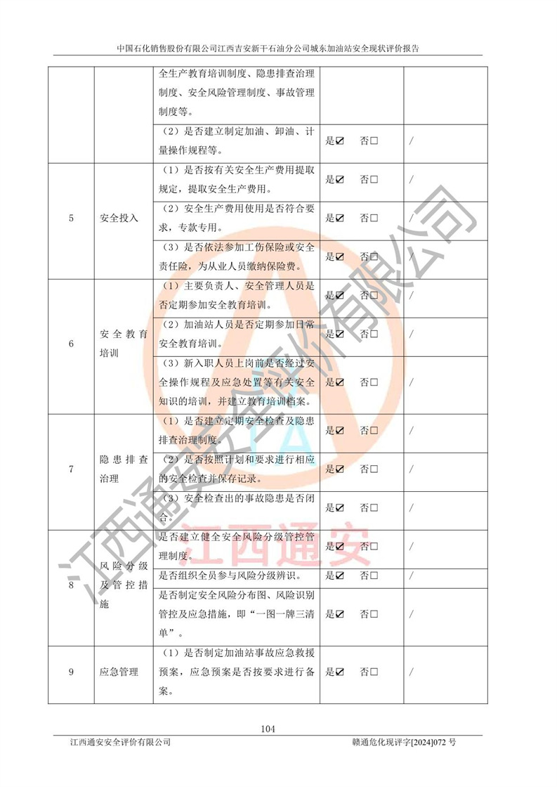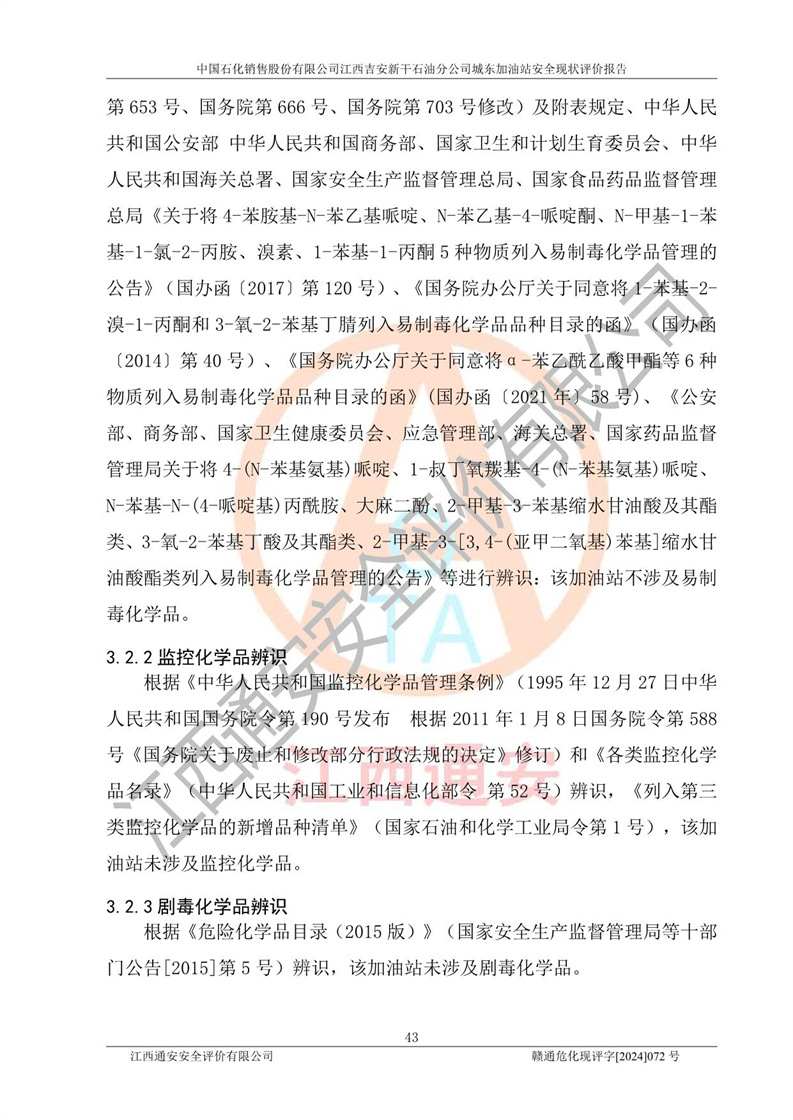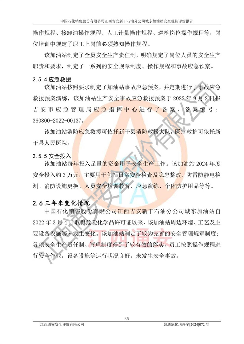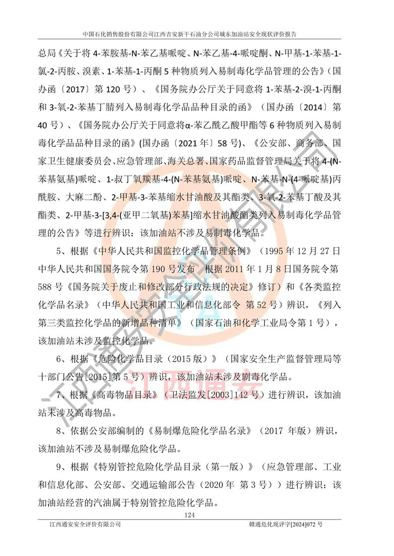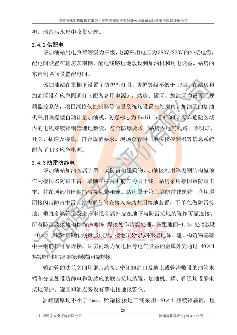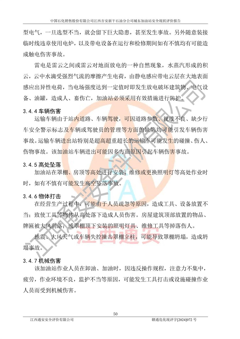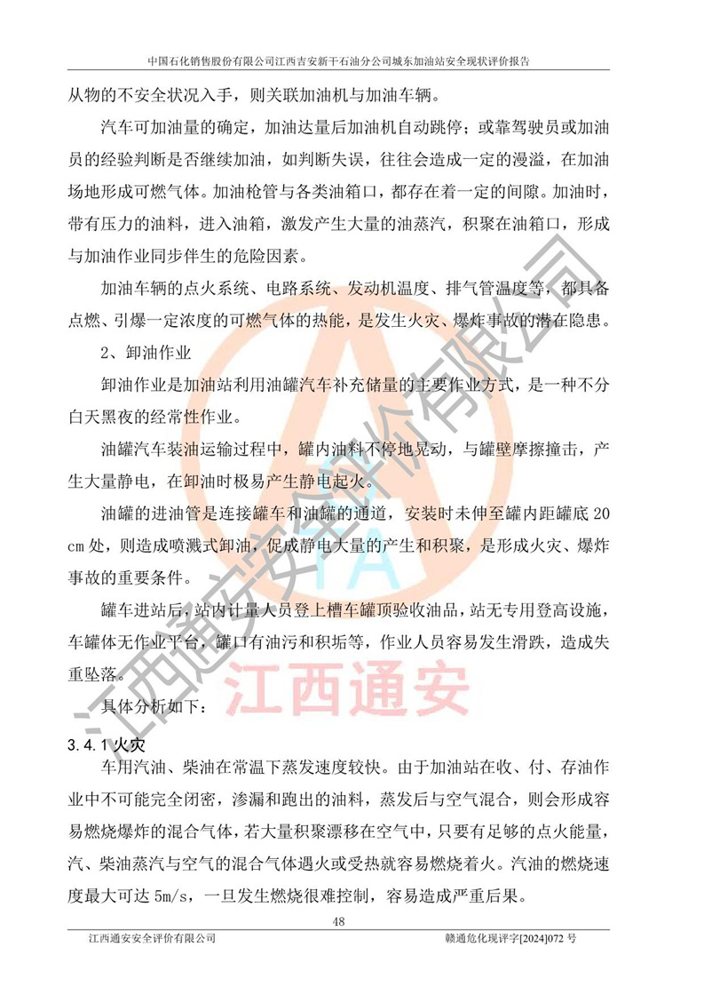 評(píng)價(jià)結(jié)論 | 中國(guó)石化銷售股份有限公司江西吉安新干石油分公司城東加油站符合《汽車加油加氣加氫站技術(shù)標(biāo)準(zhǔn)》GB50156-2021等標(biāo)準(zhǔn)規(guī)范的要求,安全風(fēng)險(xiǎn)可控,滿足危險(xiǎn)化學(xué)品經(jīng)營(yíng)的安全條件。 | |||