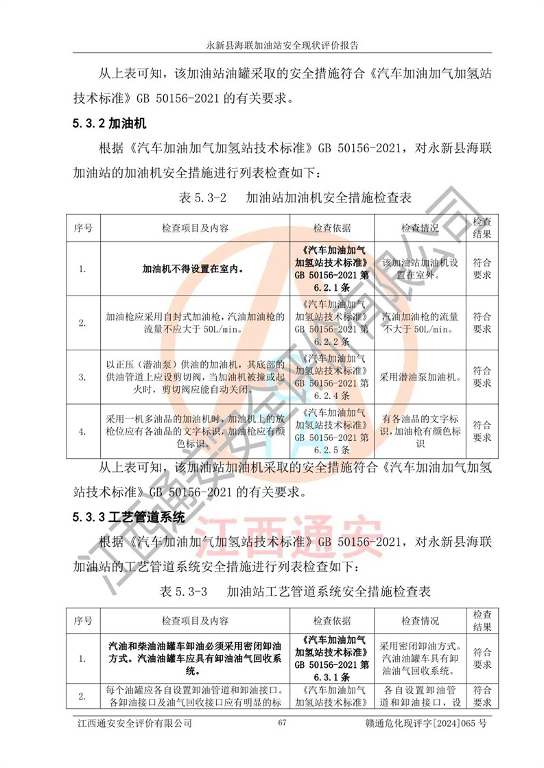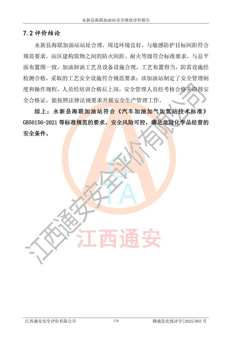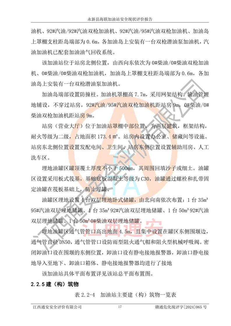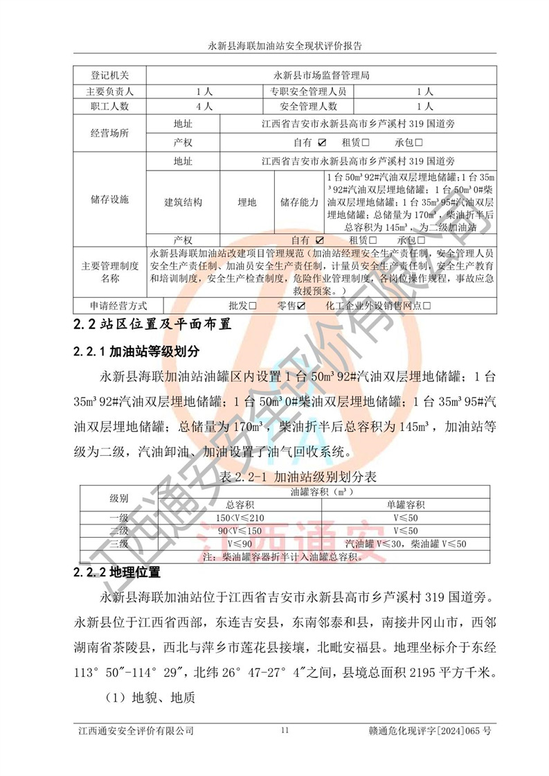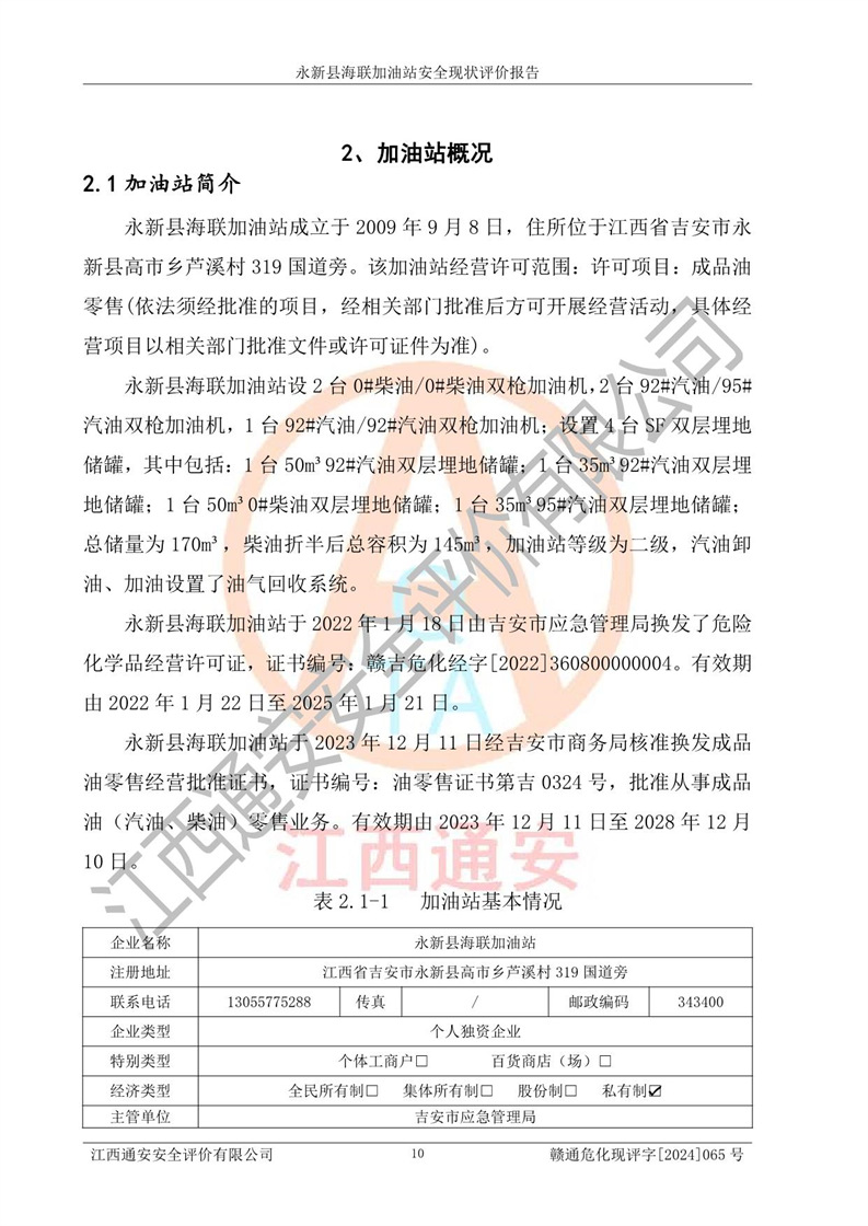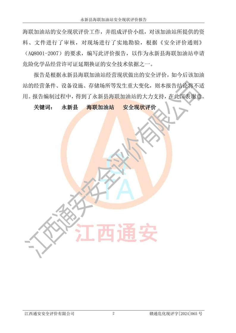 評價報告名稱 | 永新縣海聯(lián)加油站安全現(xiàn)狀評價報告 | |||
