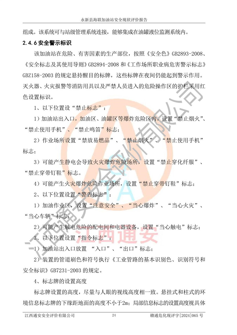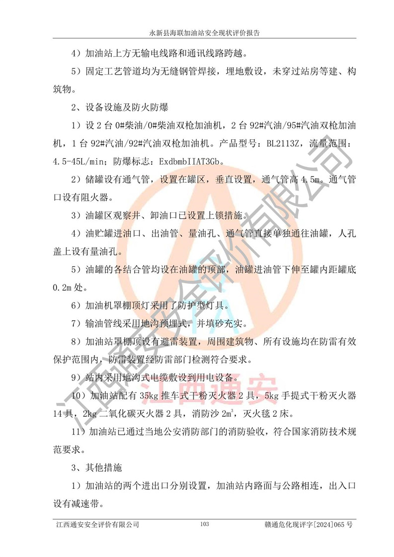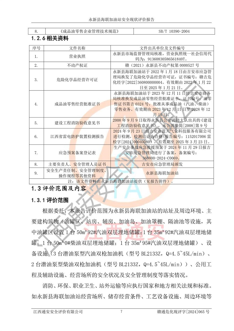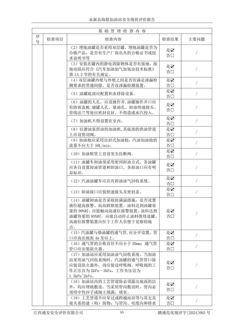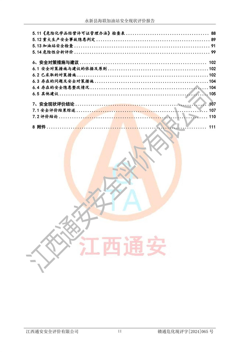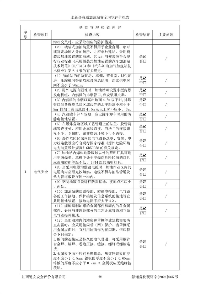評價報告名稱 | 永新縣海聯(lián)加油站安全現(xiàn)狀評價報告 | |||