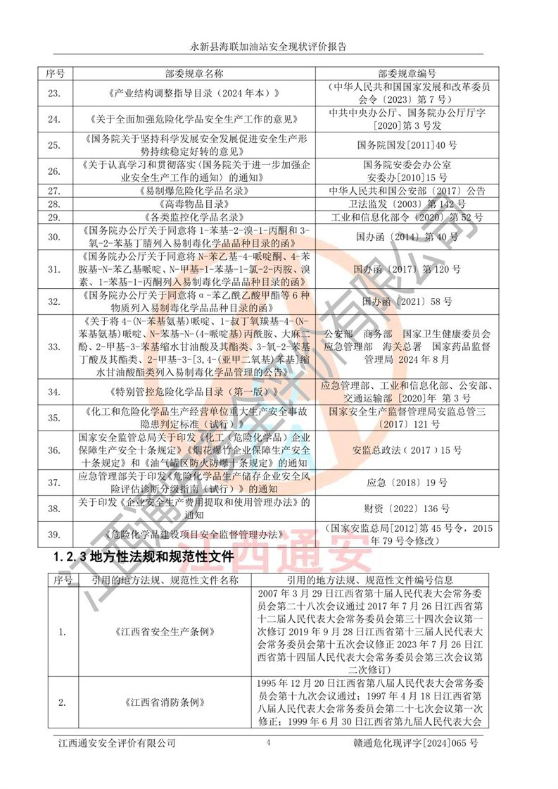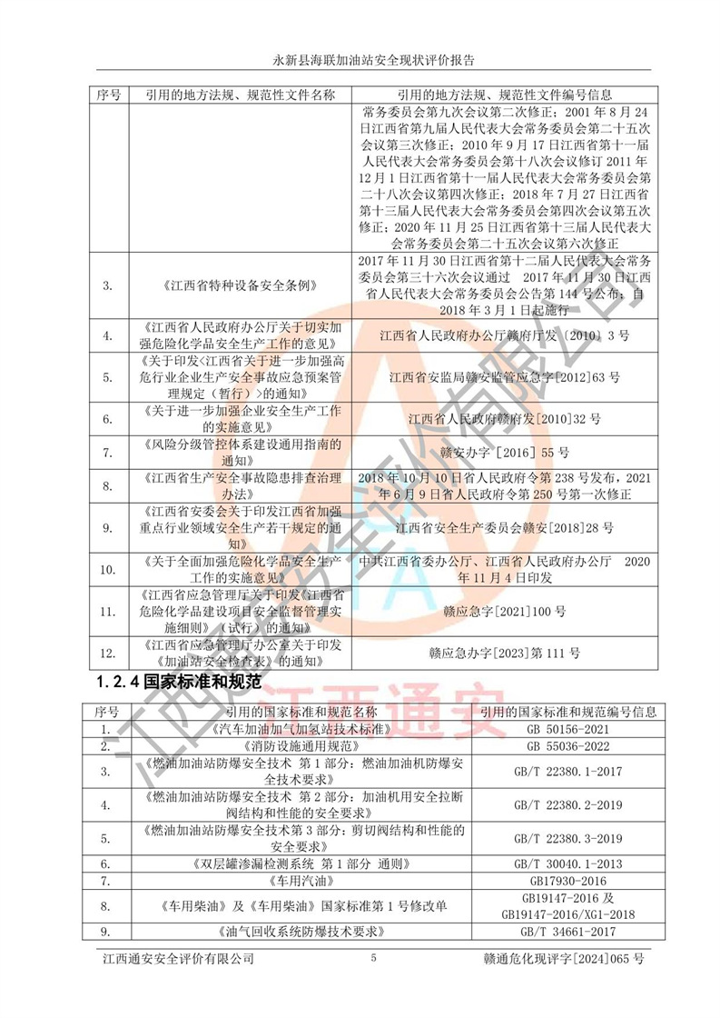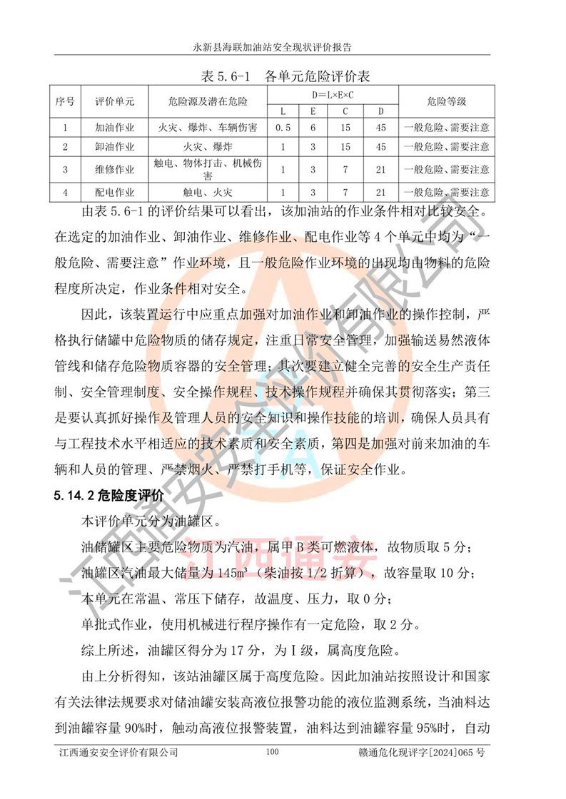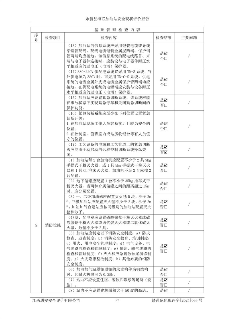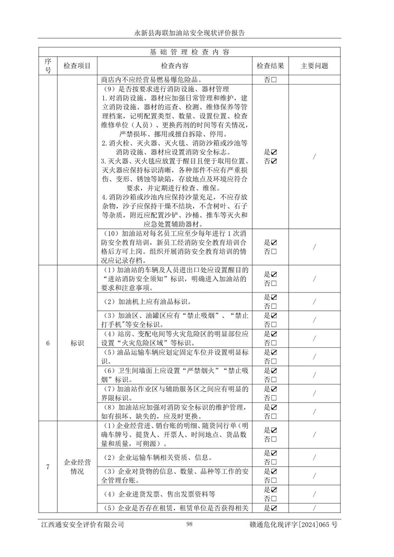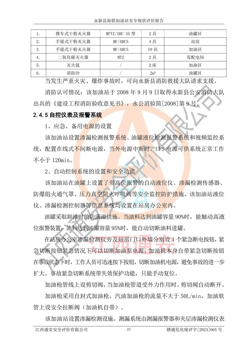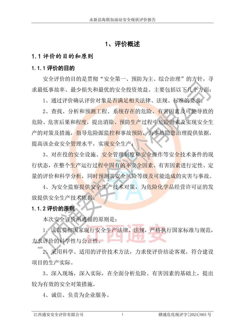 評價報告名稱 | 永新縣海聯(lián)加油站安全現(xiàn)狀評價報告 | |||