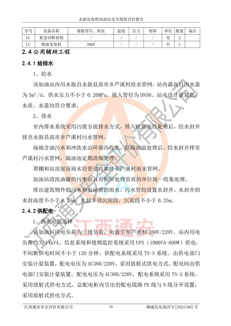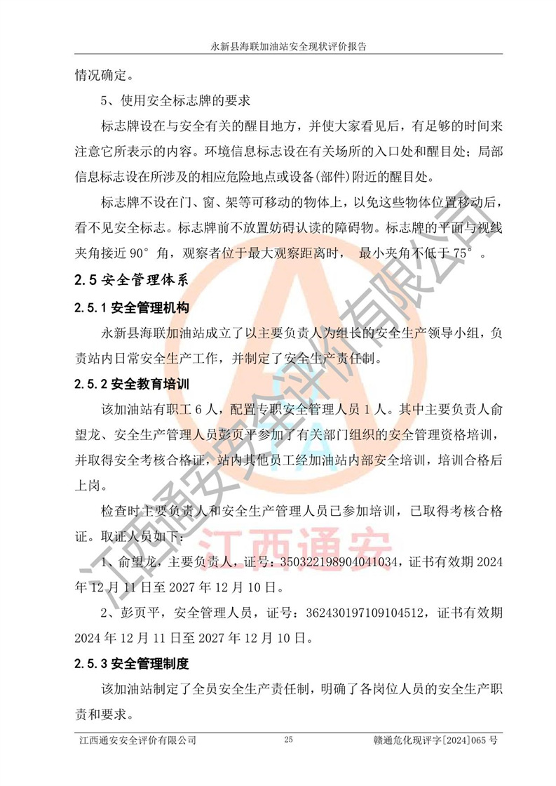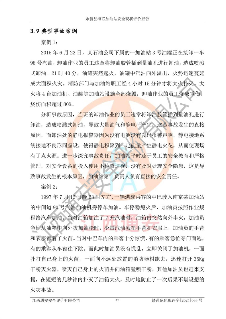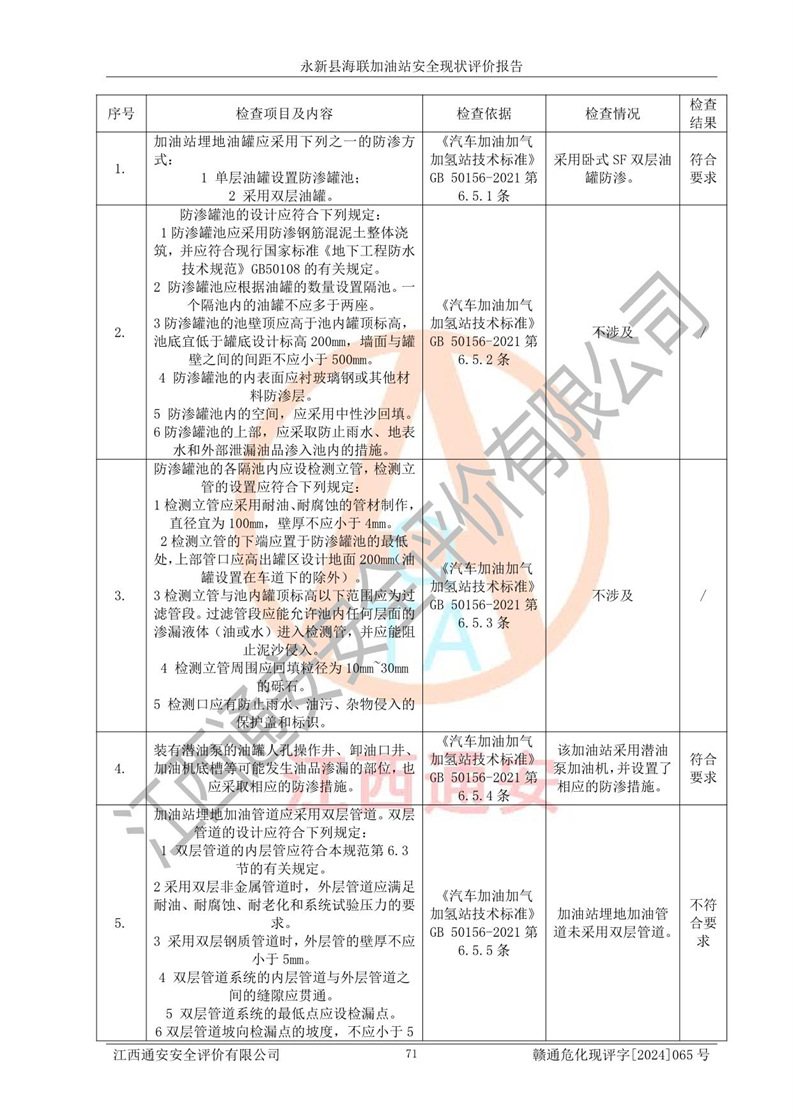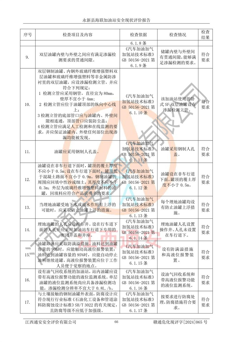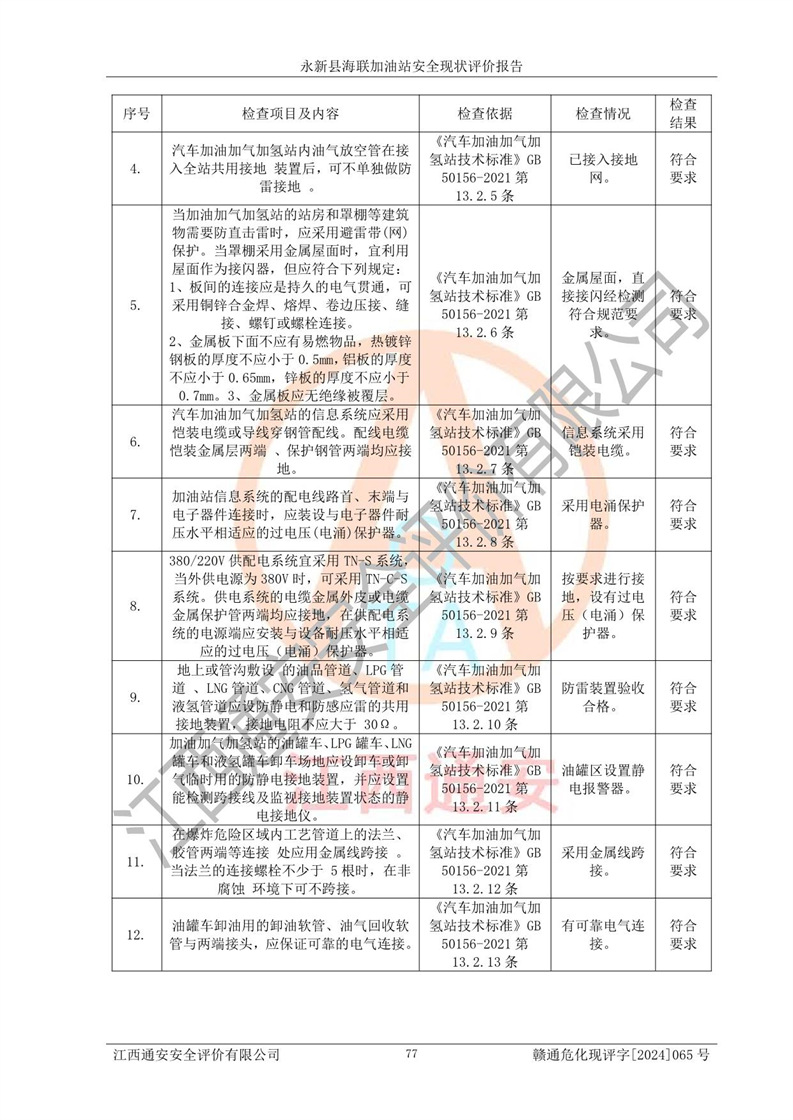 評價報告名稱 | 永新縣海聯(lián)加油站安全現(xiàn)狀評價報告 | |||