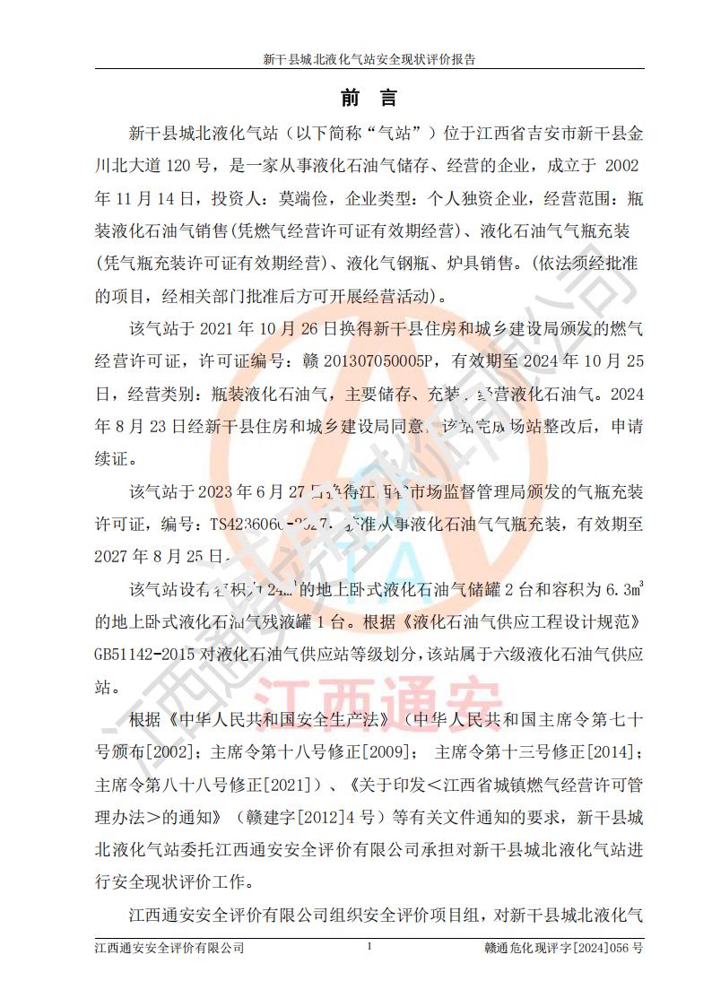 項(xiàng)目名稱 | 新干縣城北液化氣站安全現(xiàn)狀評(píng)價(jià)報(bào)告 | ||||