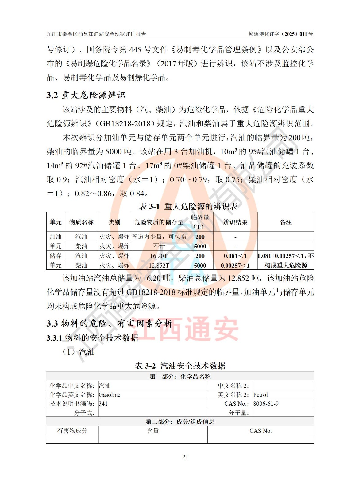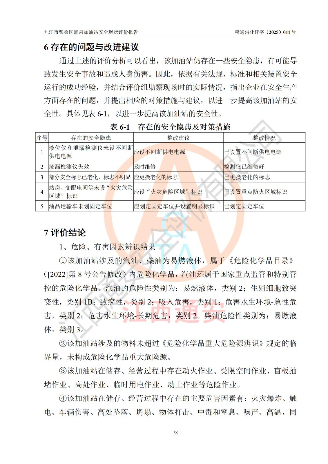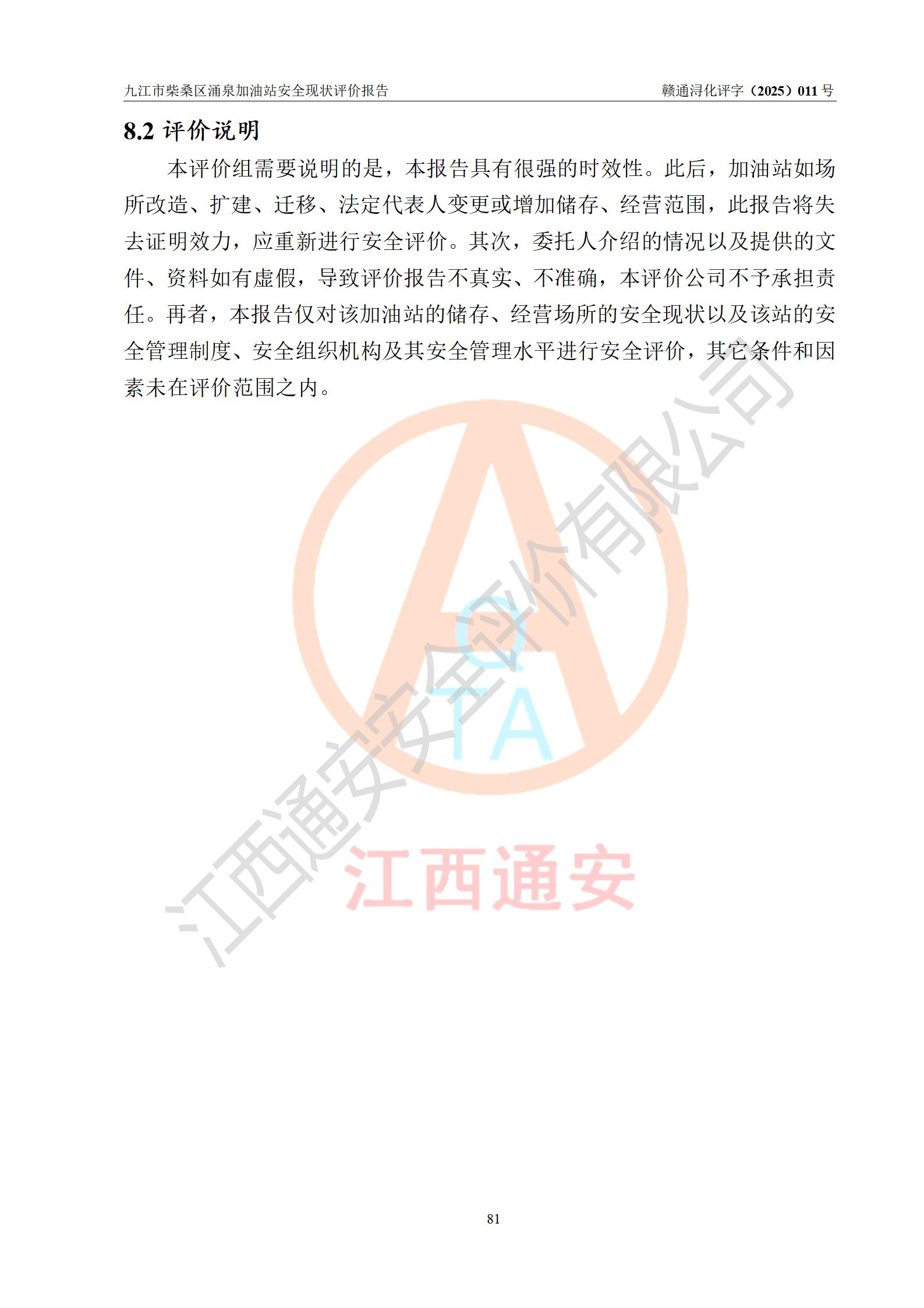 評(píng)價(jià)報(bào)告名稱 | 九江市柴桑區(qū)涌泉加油站安全現(xiàn)狀評(píng)價(jià)報(bào)告 | |||