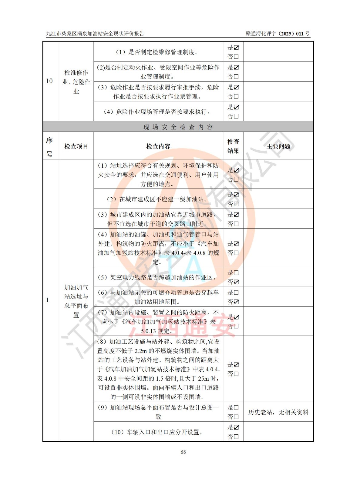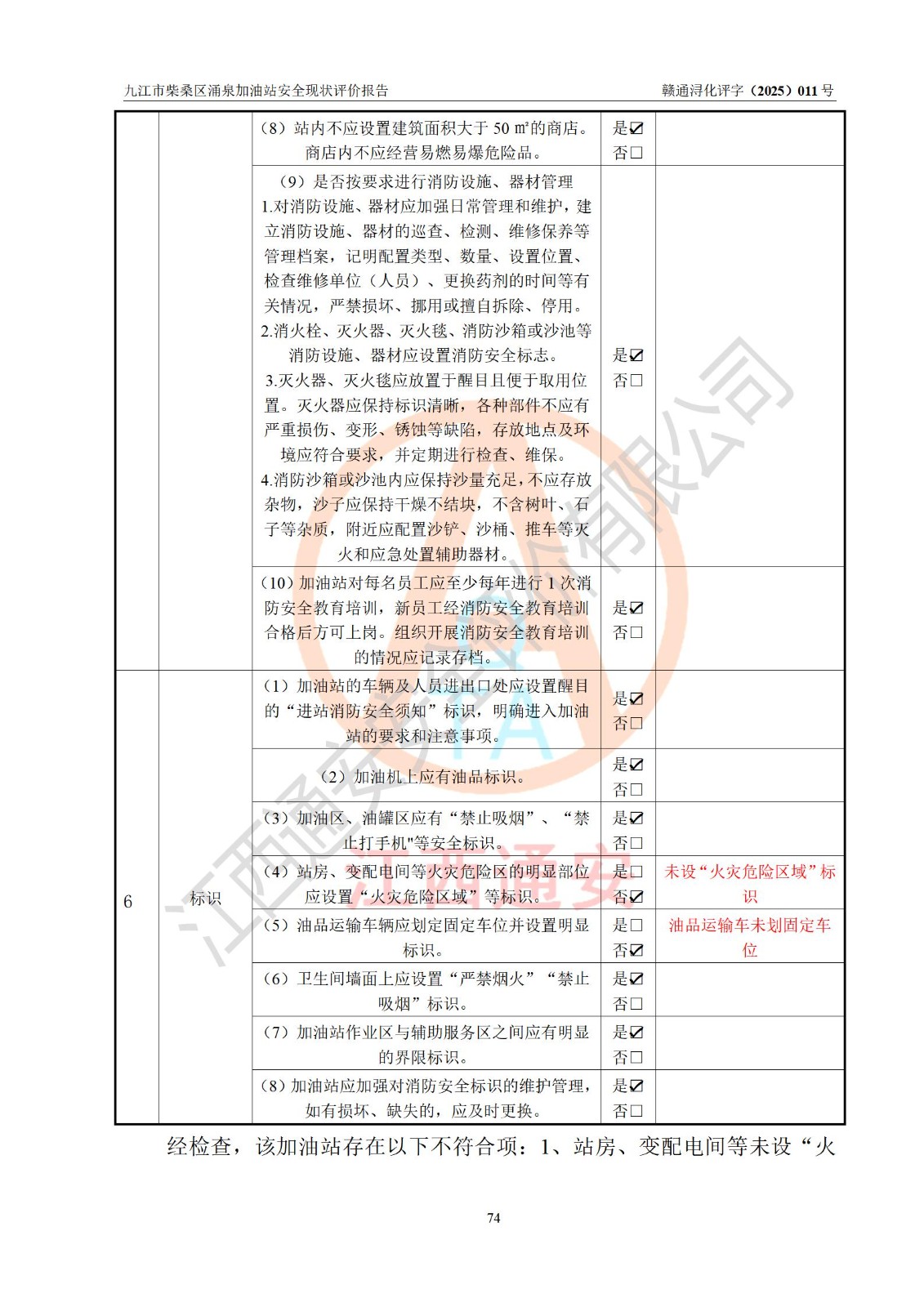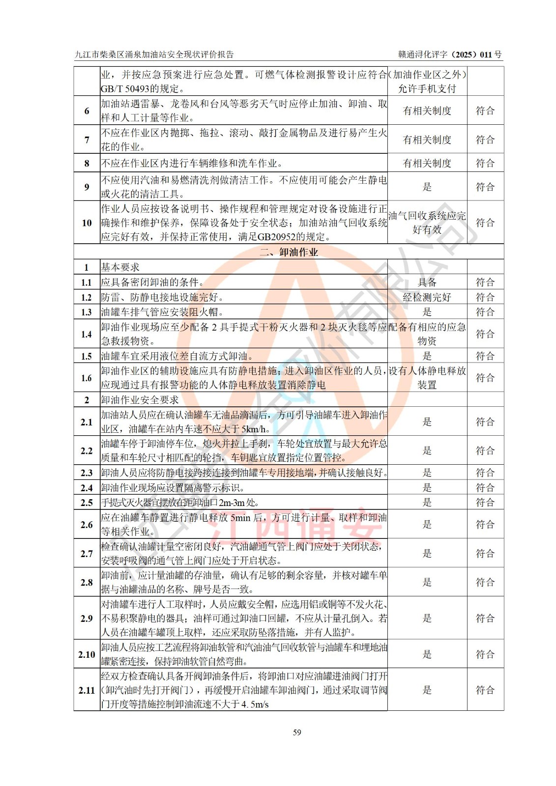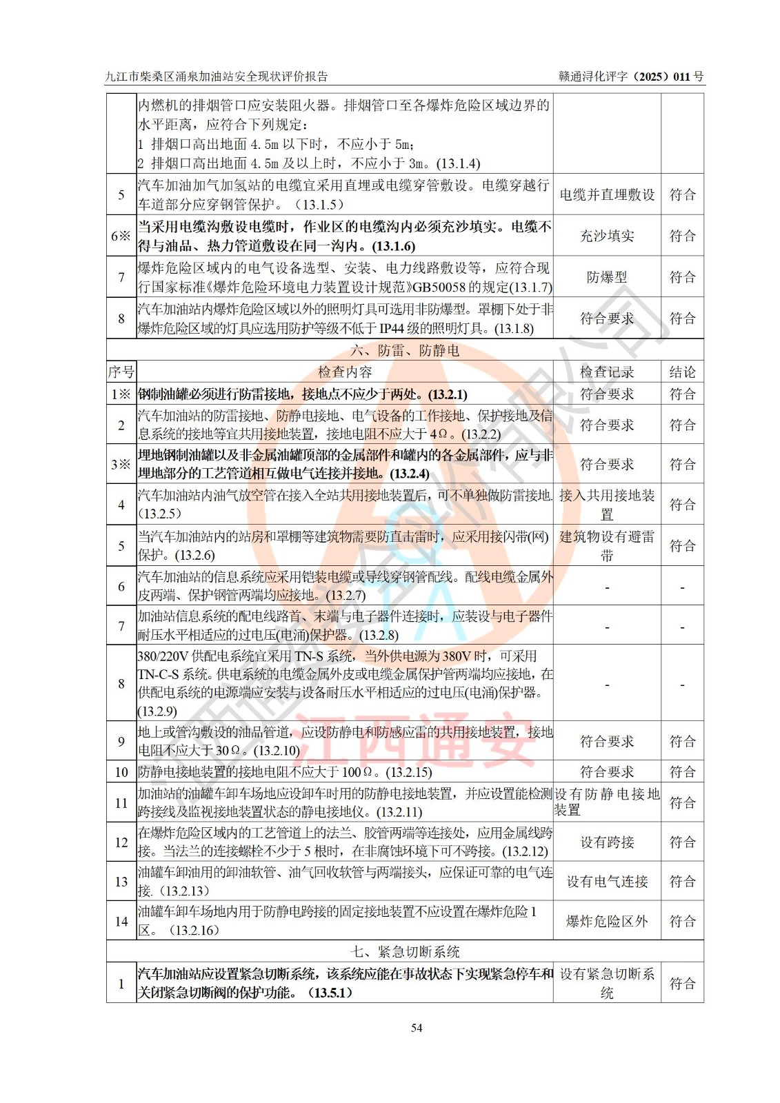 評(píng)價(jià)結(jié)論 | 九江市柴桑區(qū)涌泉加油站涉及的安全條件、安全經(jīng)營(yíng)條件、安全生產(chǎn)管理符合《危險(xiǎn)化學(xué)品經(jīng)營(yíng)許可證管理辦法》、《汽車加油加氣加氫站技術(shù)標(biāo)準(zhǔn)》等**有關(guān)法規(guī)、標(biāo)準(zhǔn)、規(guī)范要求,能滿足危險(xiǎn)化學(xué)品經(jīng)營(yíng)安全條件。 | |||