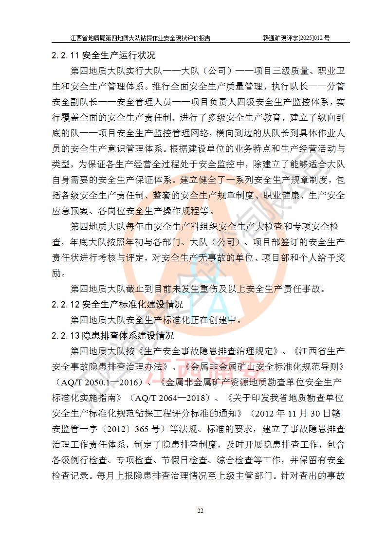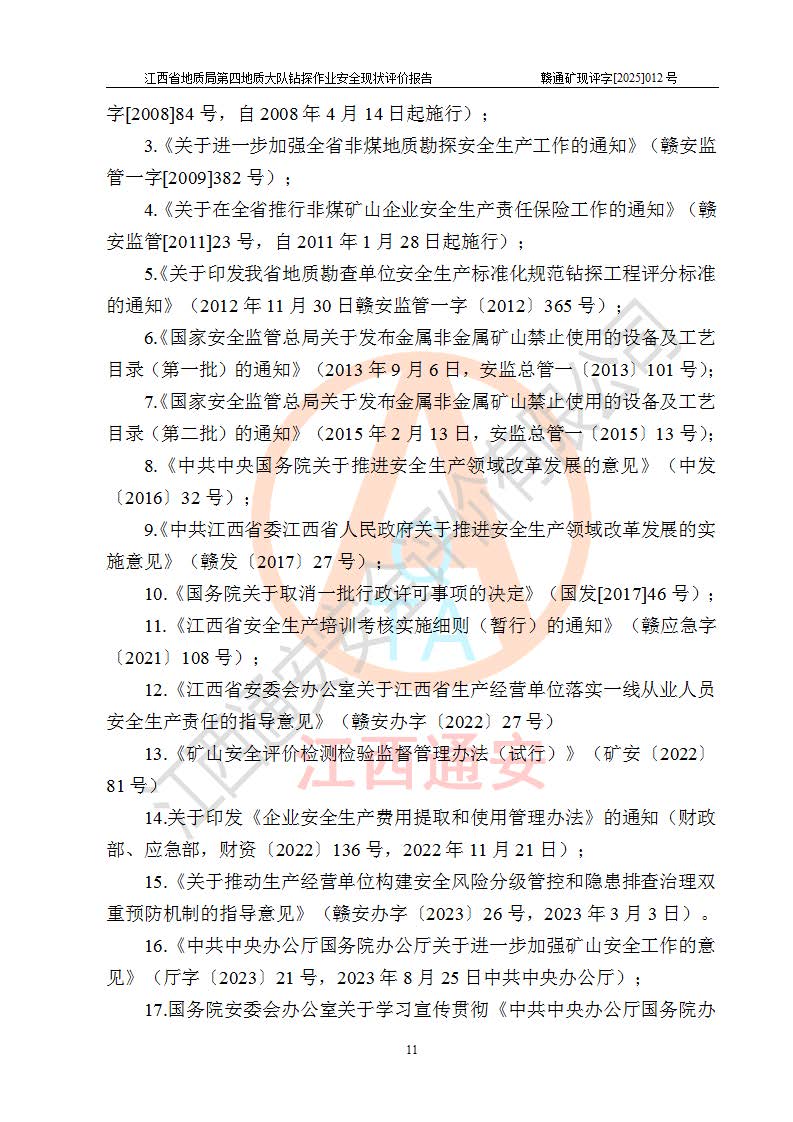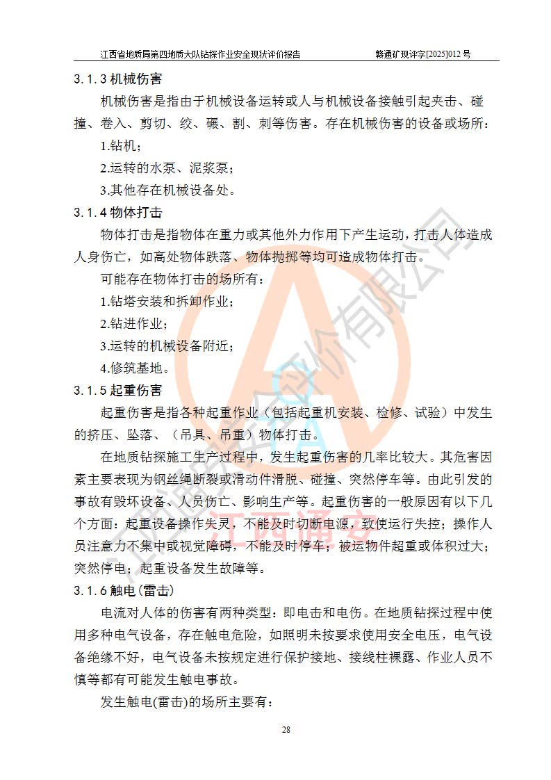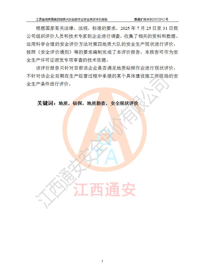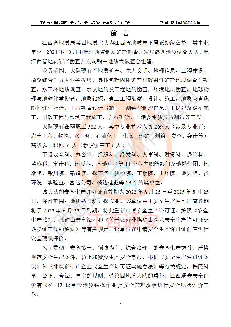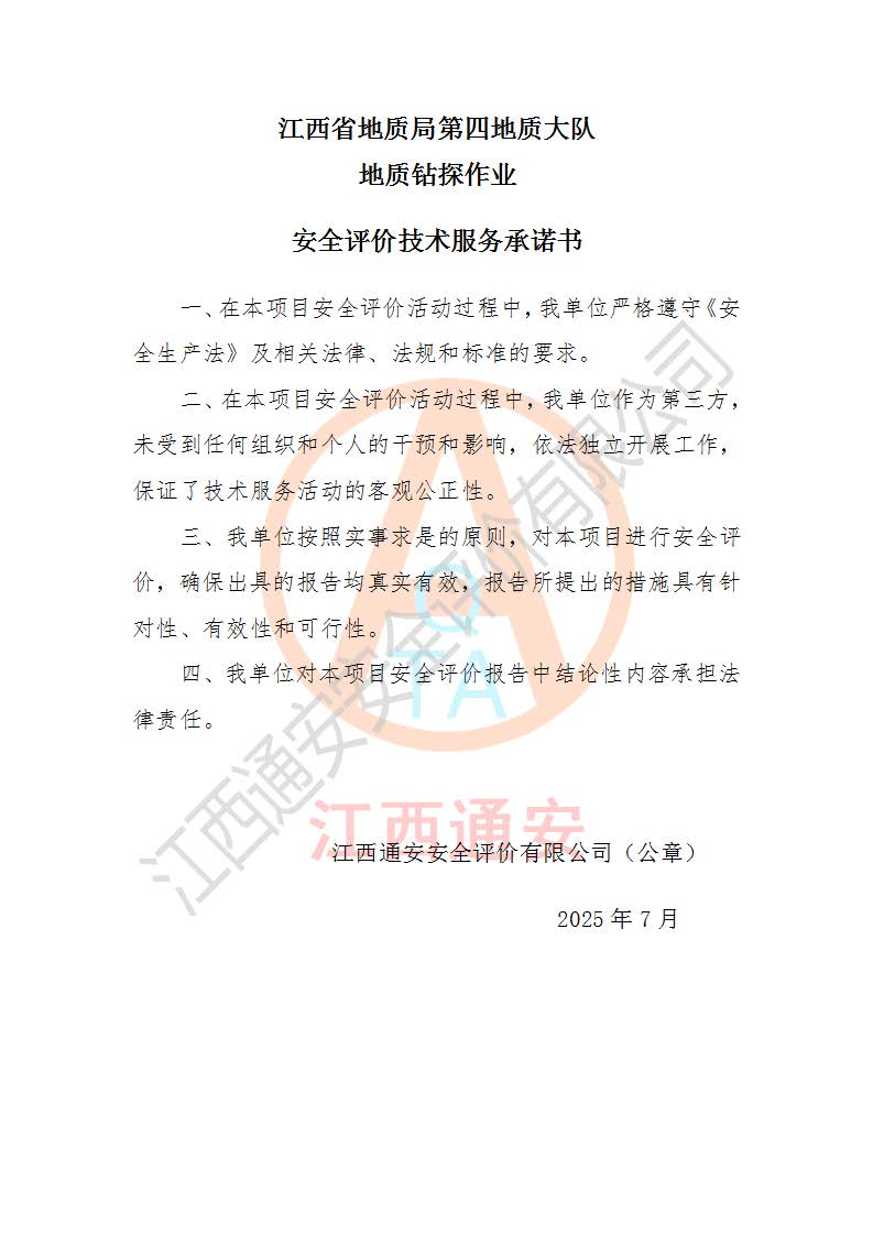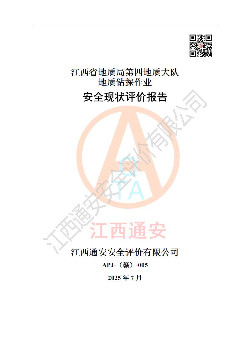 報告名稱 | 江西省地質(zhì)局第四地質(zhì)大隊地質(zhì)鉆探作業(yè)安全現(xiàn)狀評價報告 | |||||