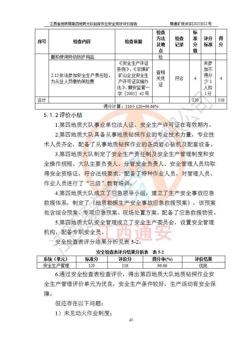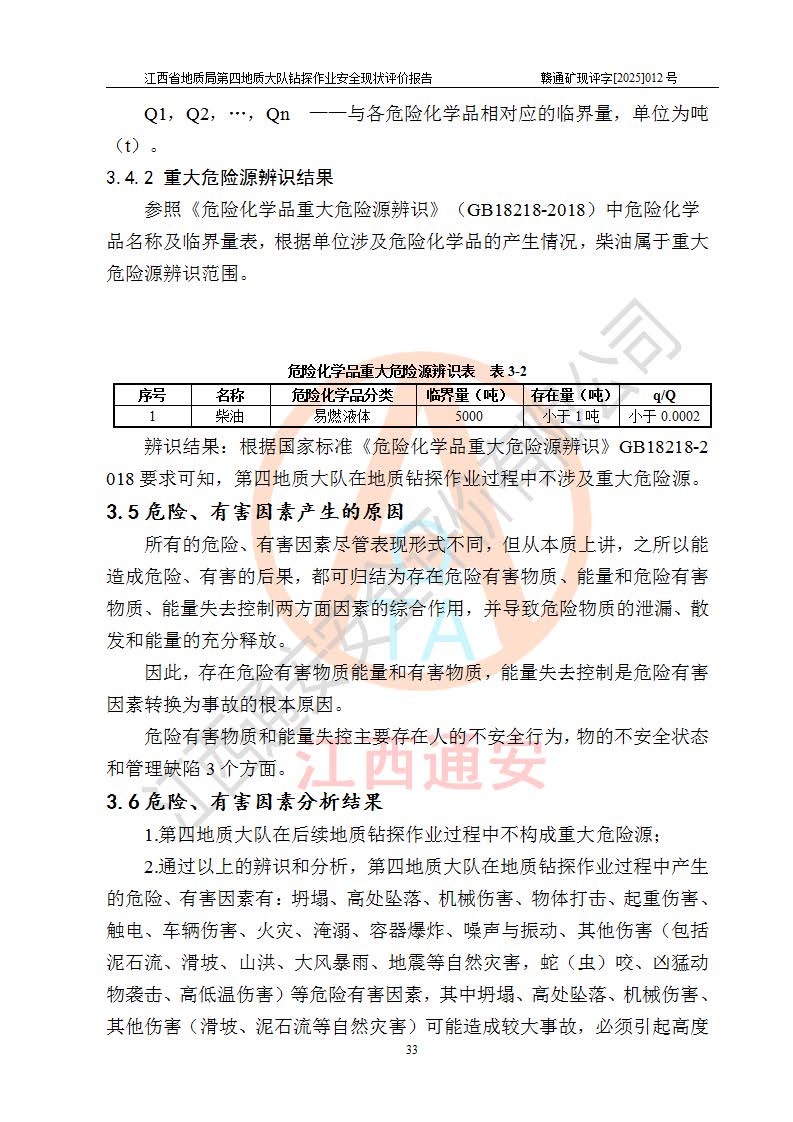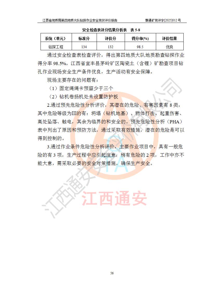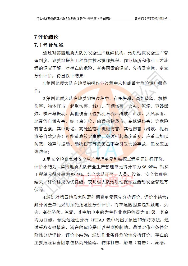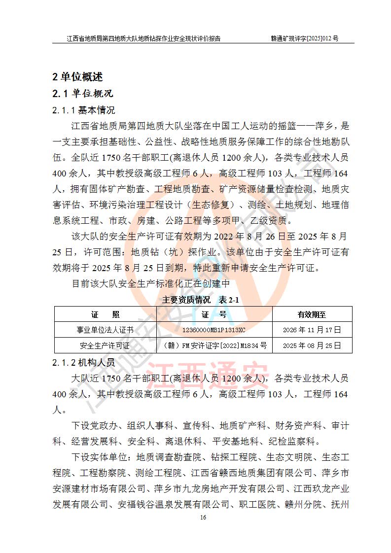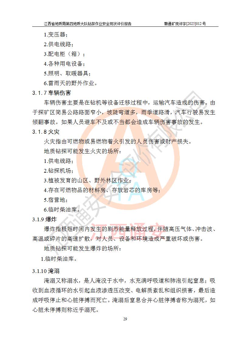 報告名稱 | 江西省地質(zhì)局第四地質(zhì)大隊地質(zhì)鉆探作業(yè)安全現(xiàn)狀評價報告 | |||||